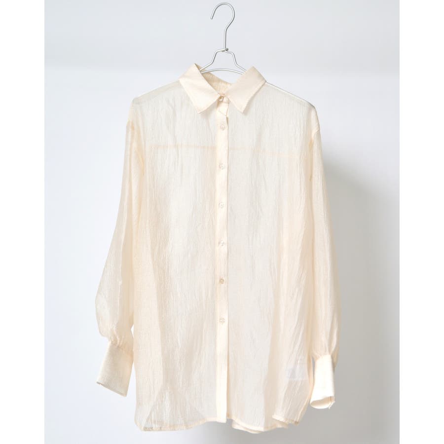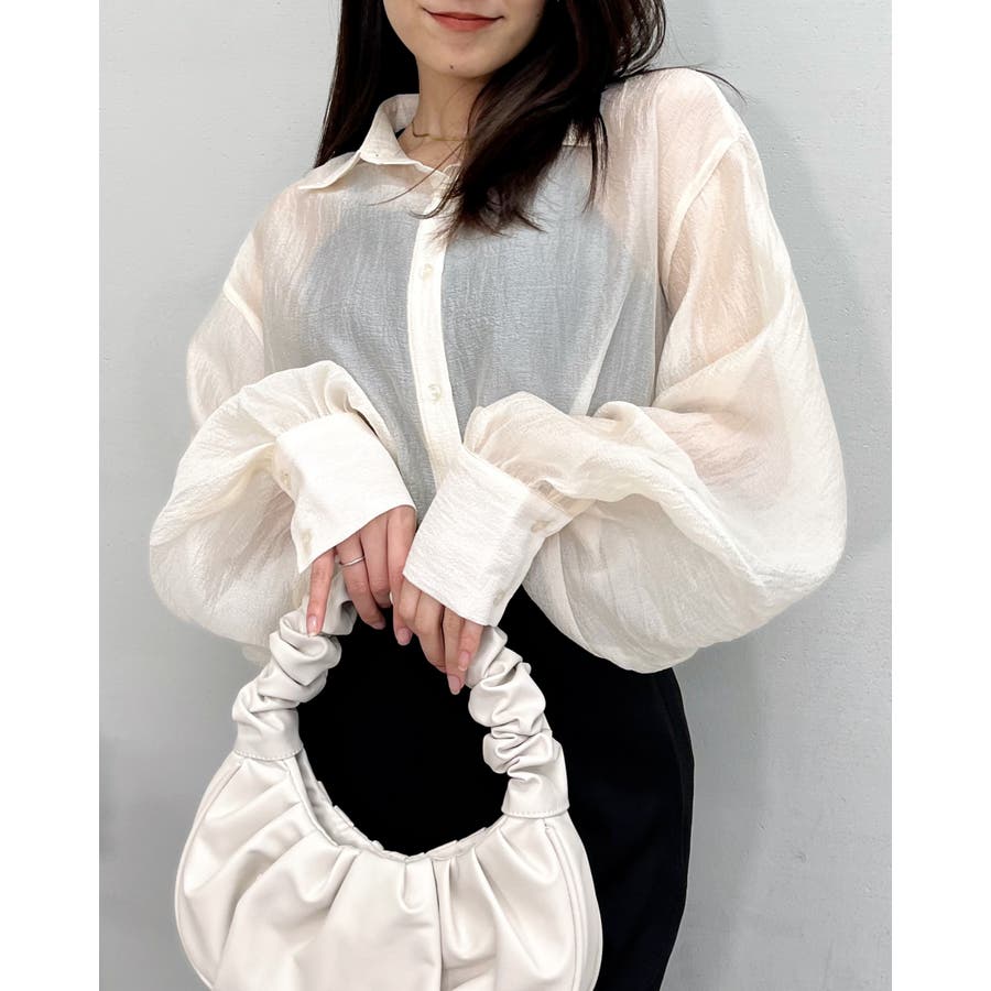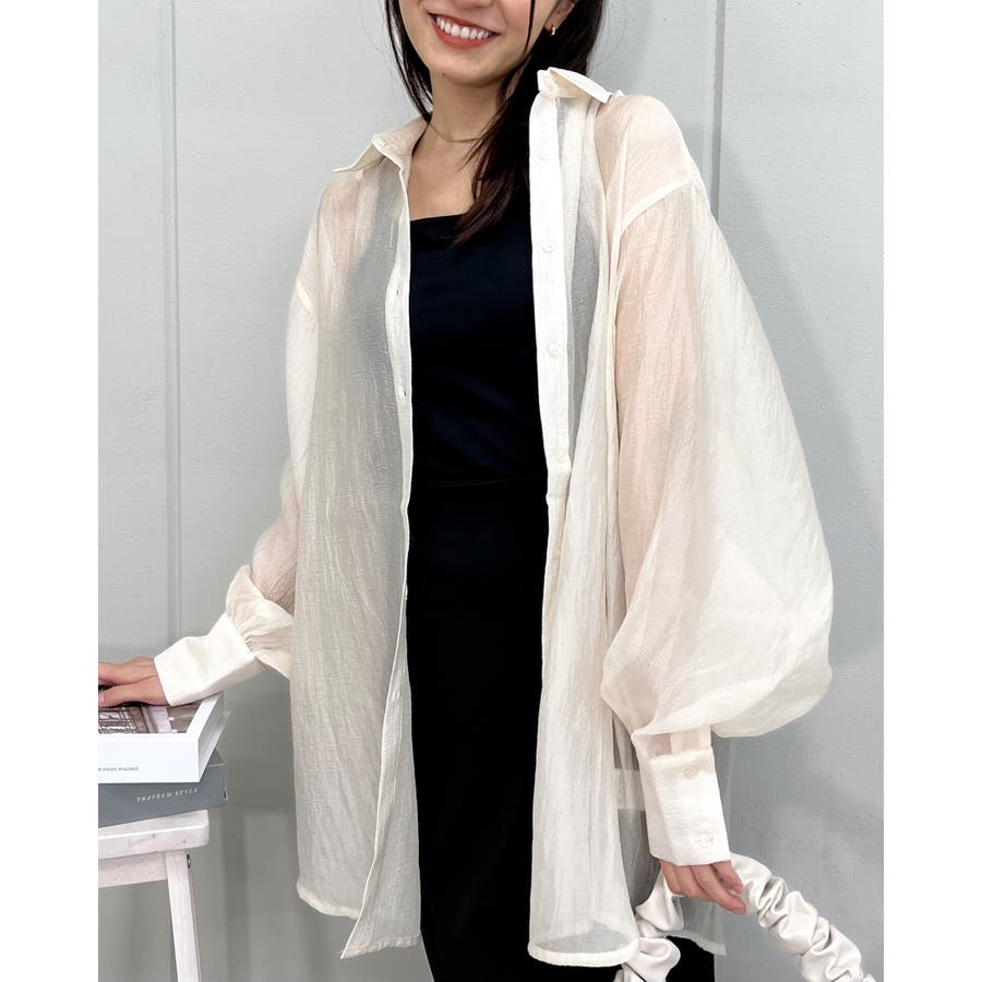 【オフホワイト】ラメワッシャー袖ボリュームオーバーサイズシャツ