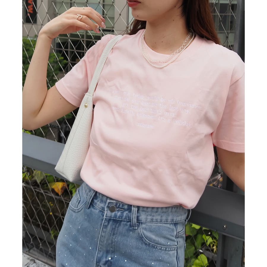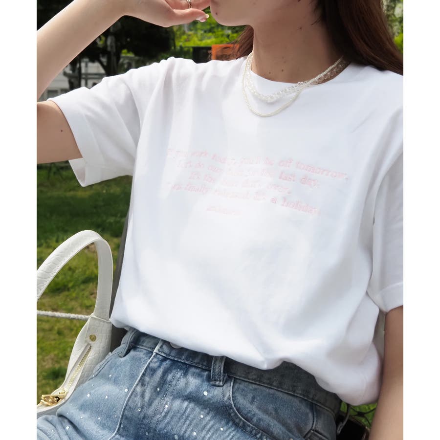 フロント刺繍がポイントになり、シンプルになりすぎずトレンド感のある1枚
