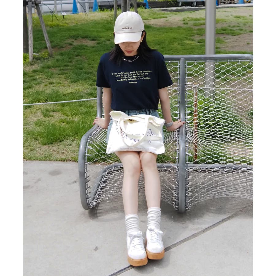 ・大きすぎず小さすぎずなサイズのロゴで、コーデの邪魔をせずにさりげなくポイントになるデザイン