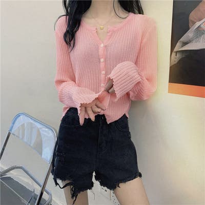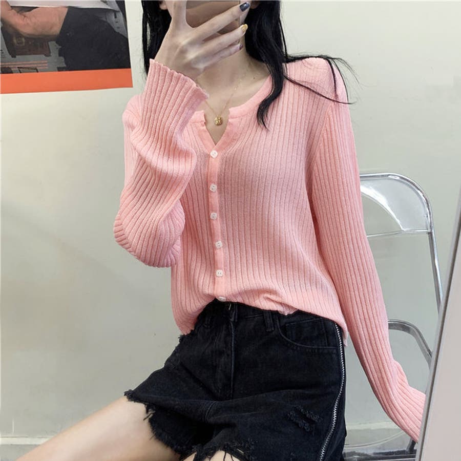 韓国ファッション 韓国 春 夏 夏服 秋 冬 秋服 サマーニット オフィスカジュアル オフィス トップス カーディガン 長袖 ニット Vネック トップス レディース サマーニット セーター 薄手 おしゃれ カジュアル 無地 ゆったり 大人 上品 羽織り