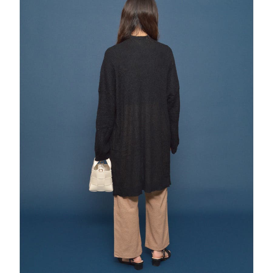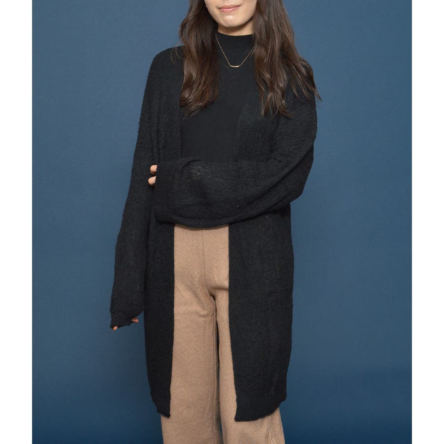 さらっと羽織れるボタンレスで優しい柔らかな風合いが魅力的。
