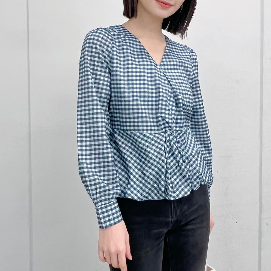韓国ファッション 韓国 大人 夏服 オフィスカジュアル オフィス 夏服 ブラウス 韓国 トップス セクシー 胸元 夏トップス ギンガムチェック ブラウス オフィス 大人カジュアル