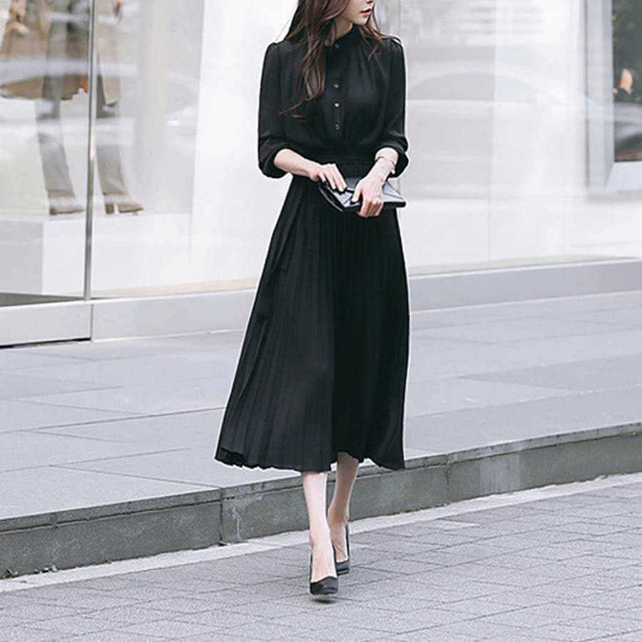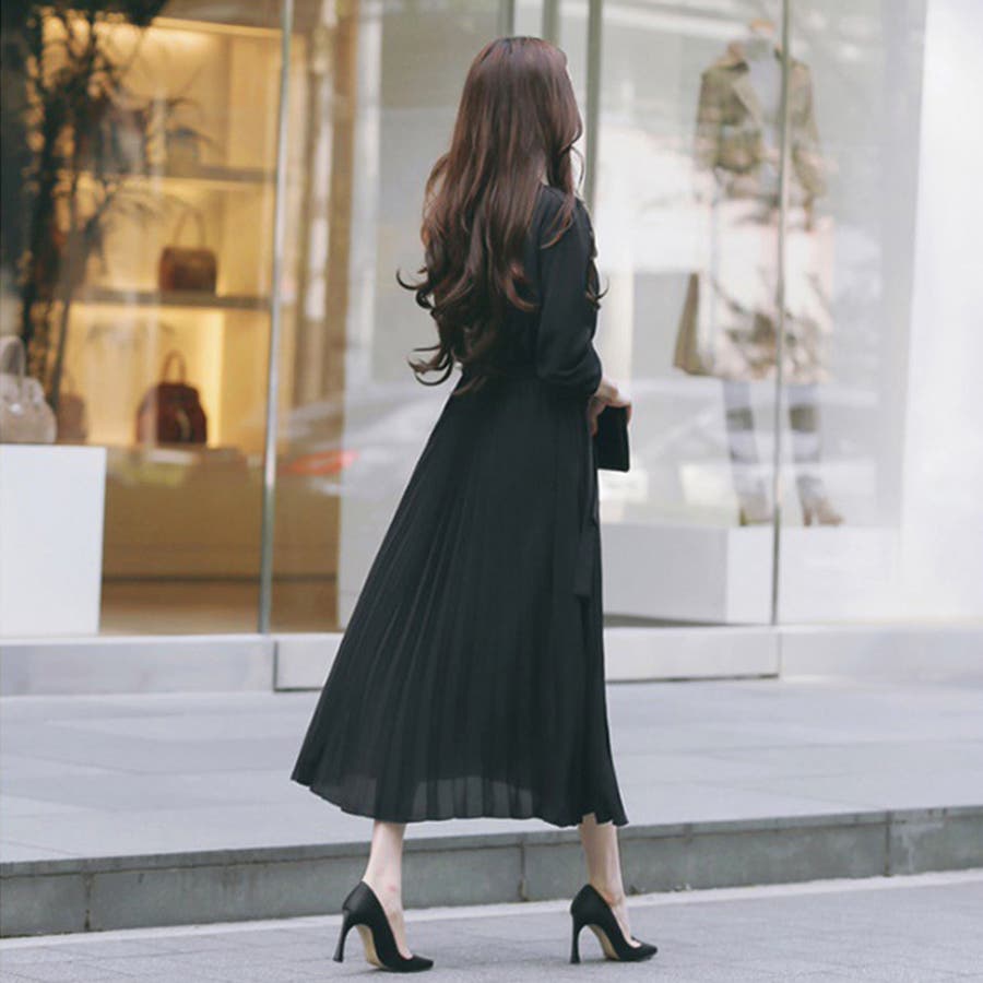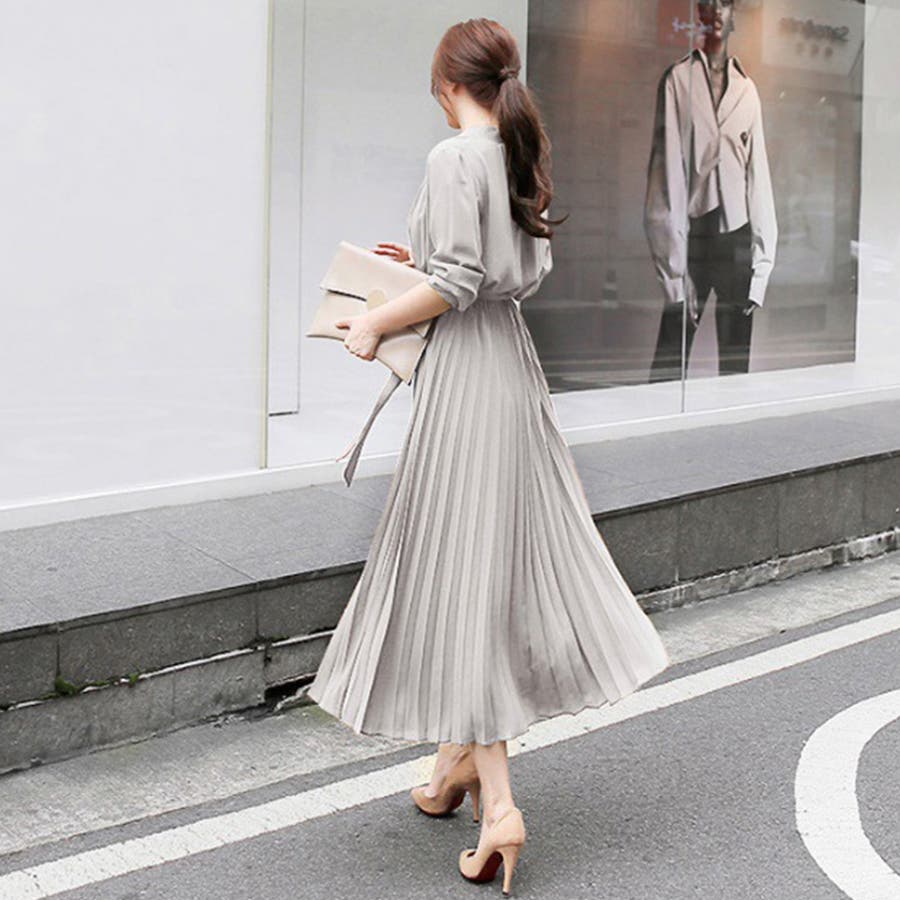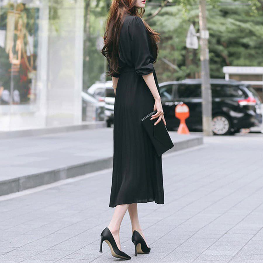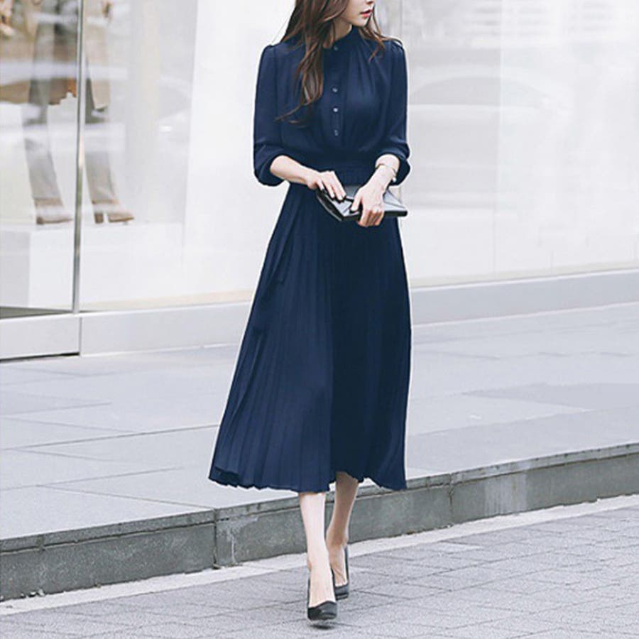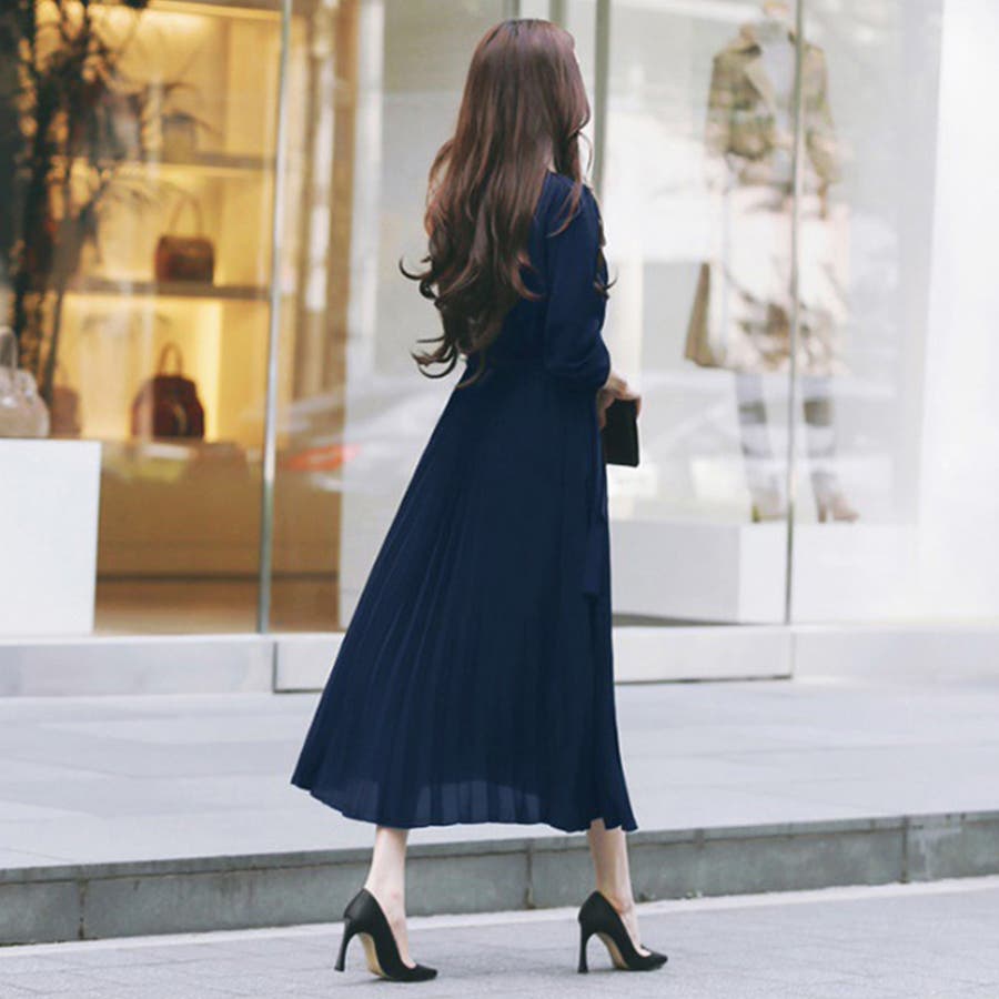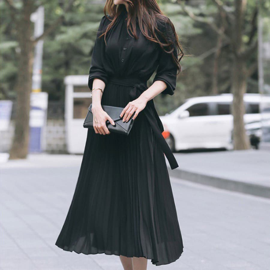 プリーツワンピース ワンピース 結婚式 パーティードレス 韓国ファッション 韓国 セクシー オフィスカジュアル オフィス 大人 ウエストマーク