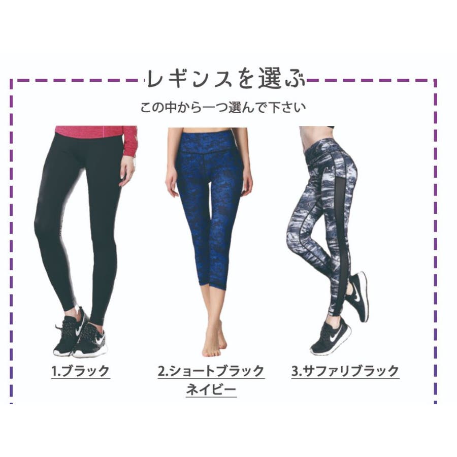 | レギンス | 1.ブラックS / 1.ブラックM / 1.ブラックL / 1.ブラックXL / 2.ショートブラックネイビーS / 2.ショートブラックネイビーM / 2.ショートブラックネイビーL / 2.ショートブラックネイビーXL / 3.サファリブラックS / 3.サファリブラックM / 3.サファリブラックL / 3.サファリブラックXL / 4.ナイトパープルS / 4.ナイトパープルM / 4.ナイトパープルL / 4.ナイトパープルXL / 5.ショートアッシュS / 5.ショートアッシュM / 5.ショートアッシュL / 5.ショートアッシュXL |