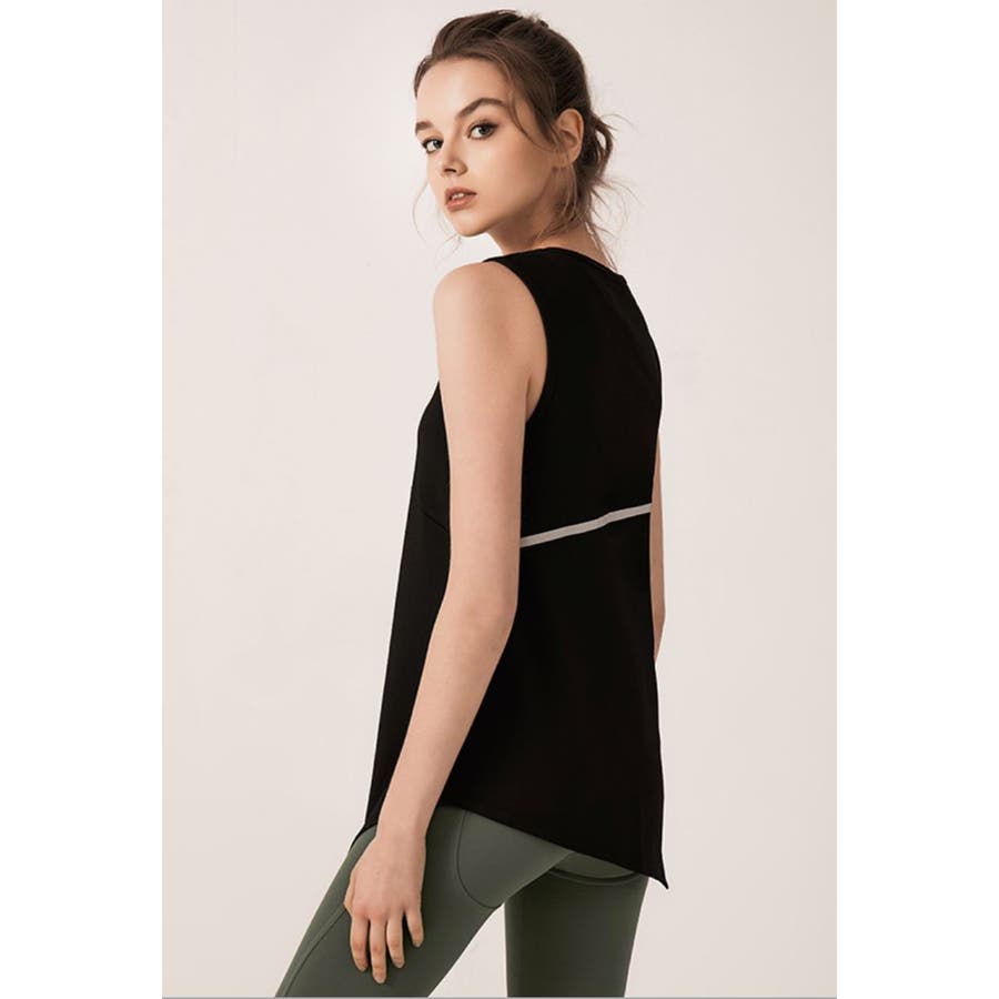 ホットヨガにも使えるヨガウェアで肌見せし過ぎず、でも暑い中で動くのでノースリープ、