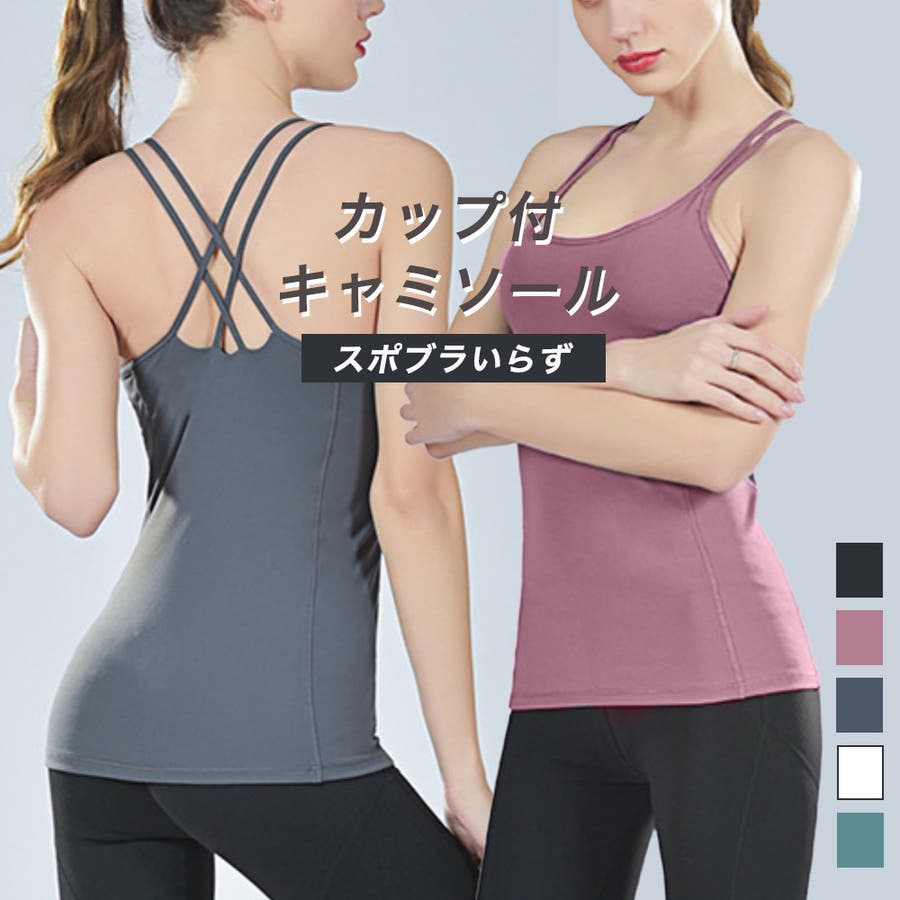 スポーツブラの着用なしで1枚でサラッと着れるカップ付キャミソール