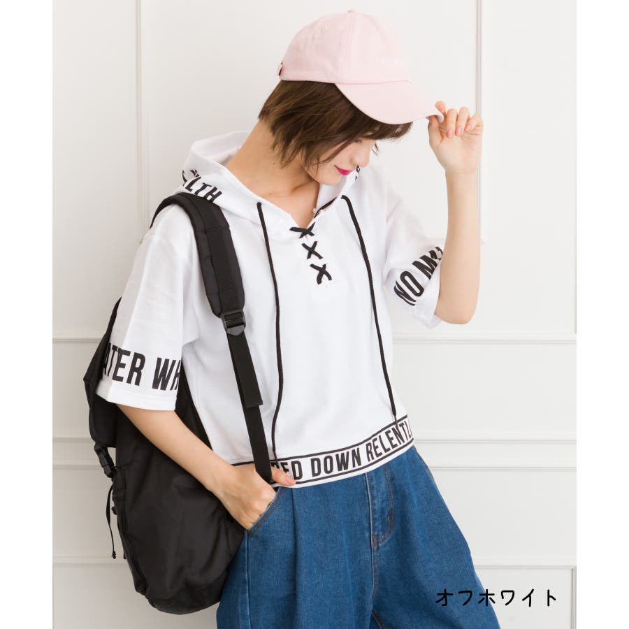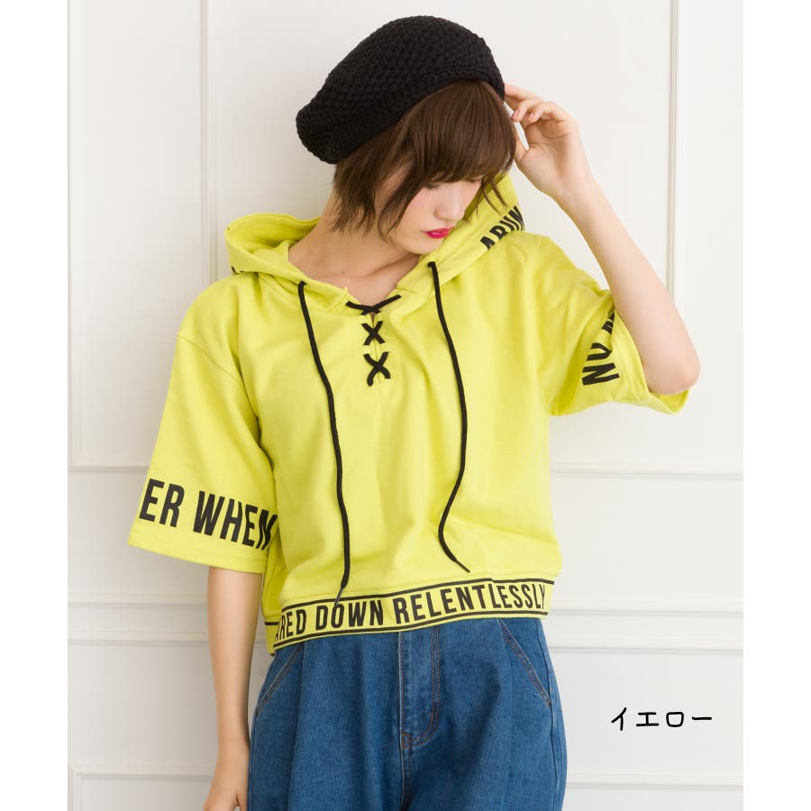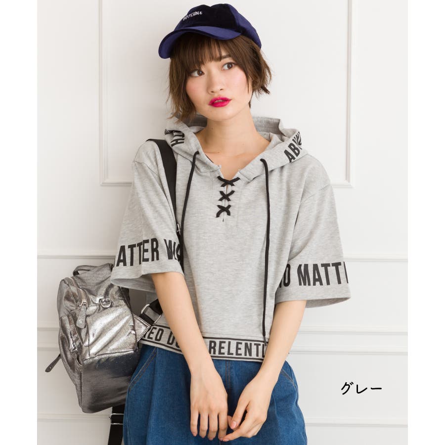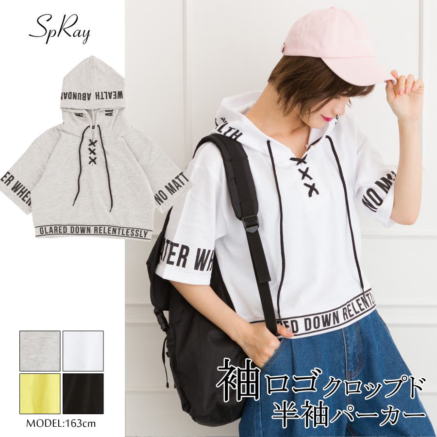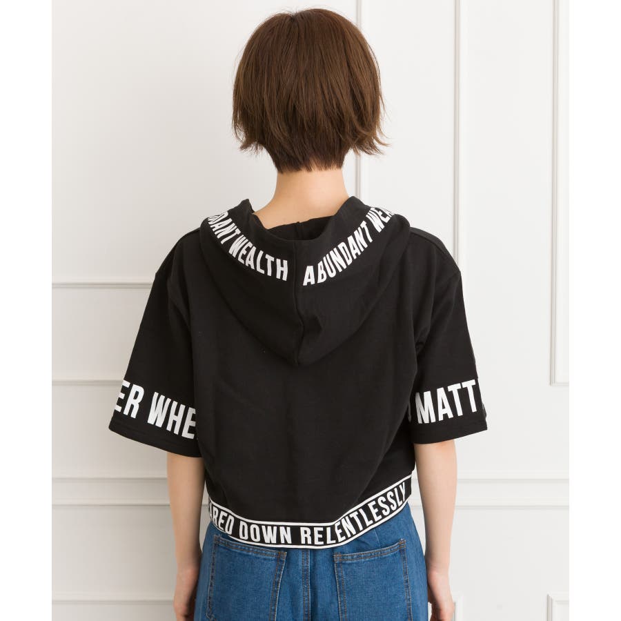 袖ロゴクロップド半袖パーカー