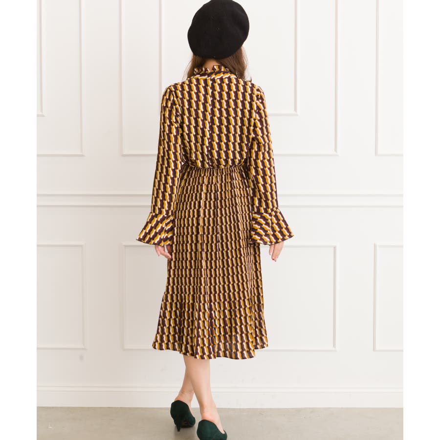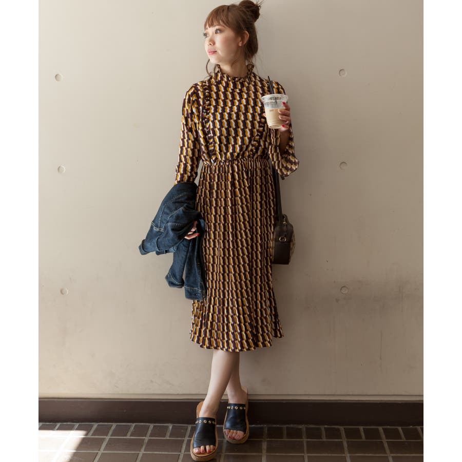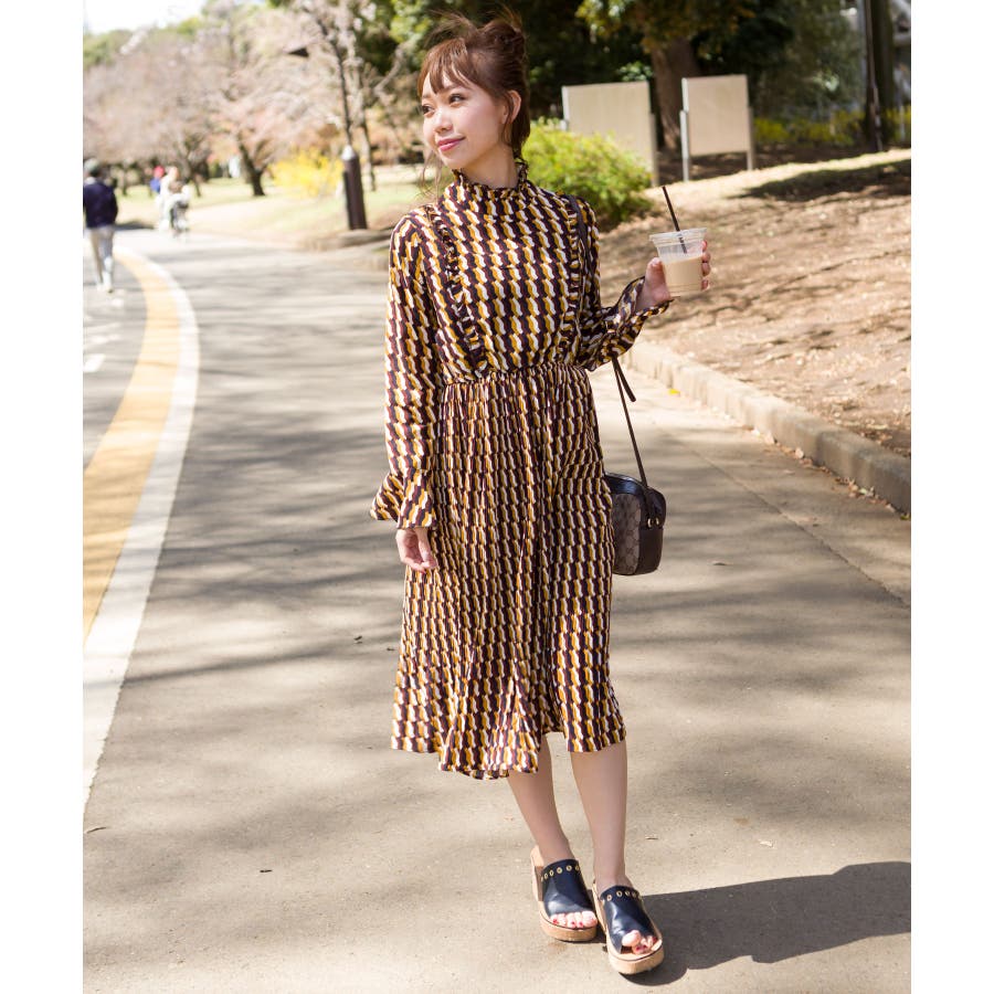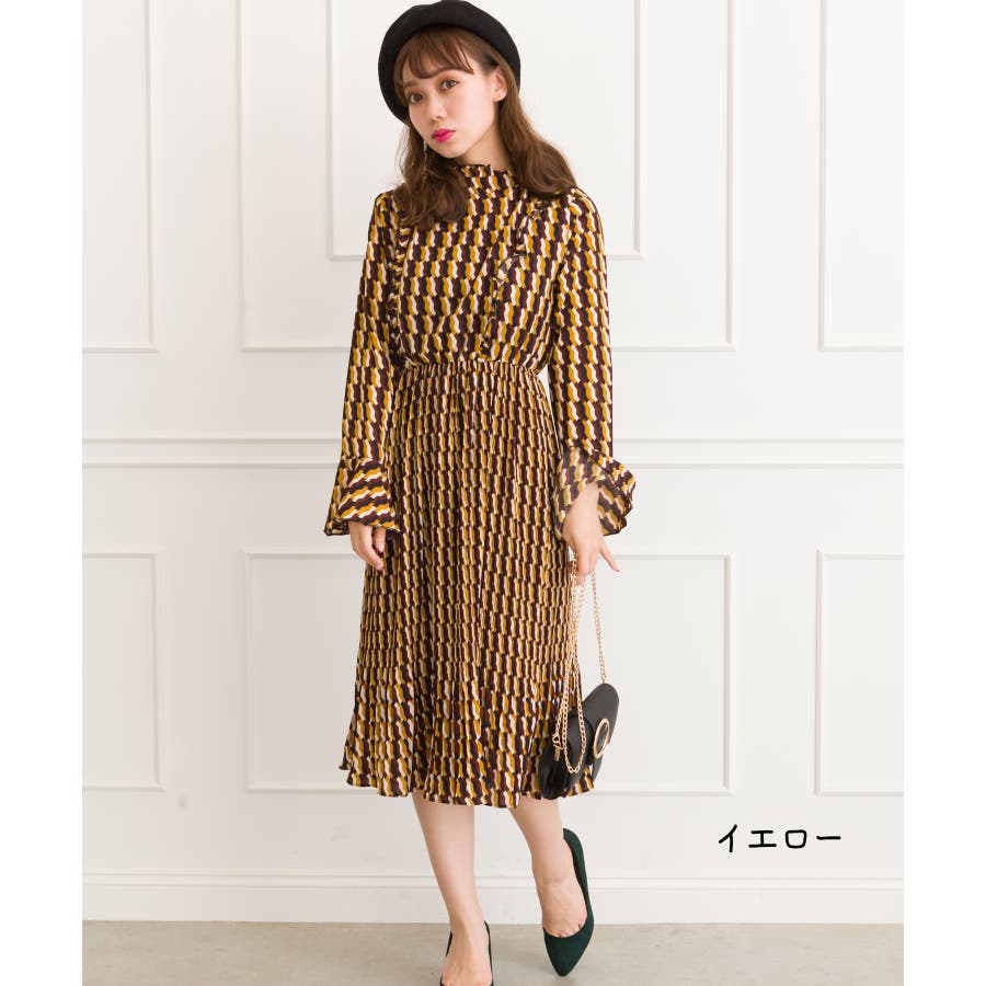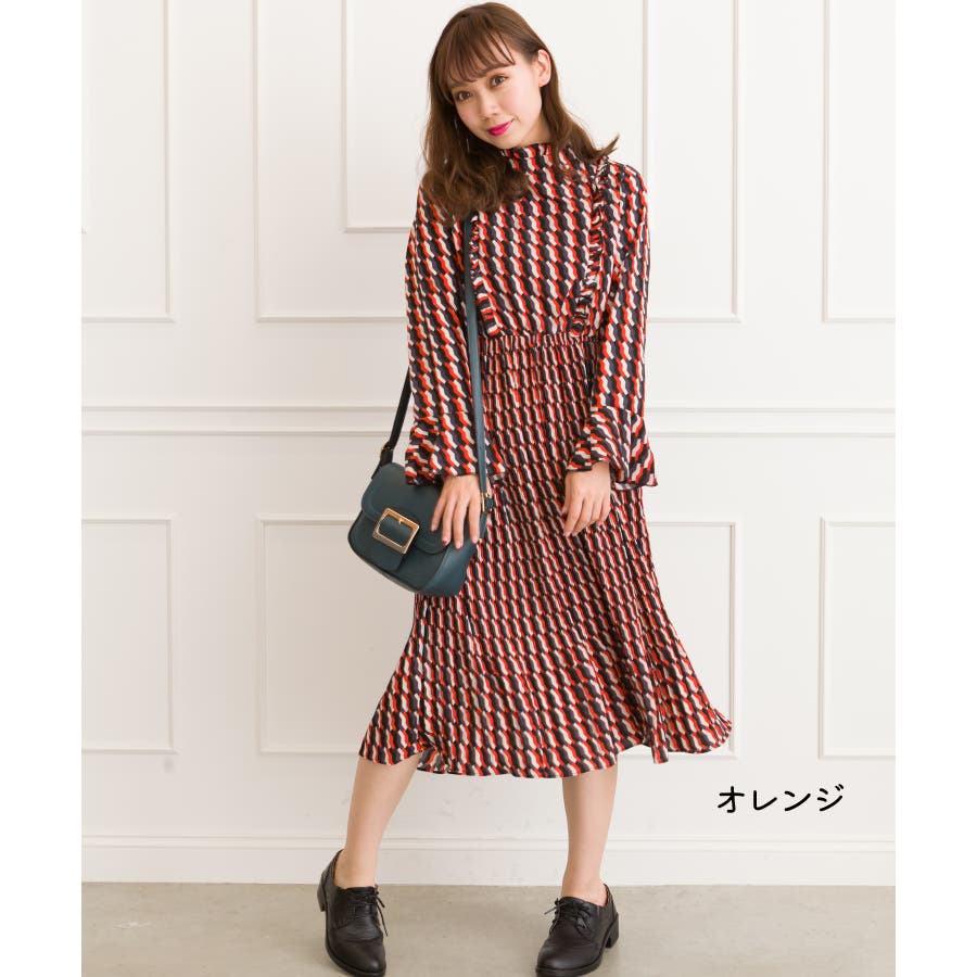 幾何学スタンドフリルワンピース/MEGA SALE CM 白石麻衣着用