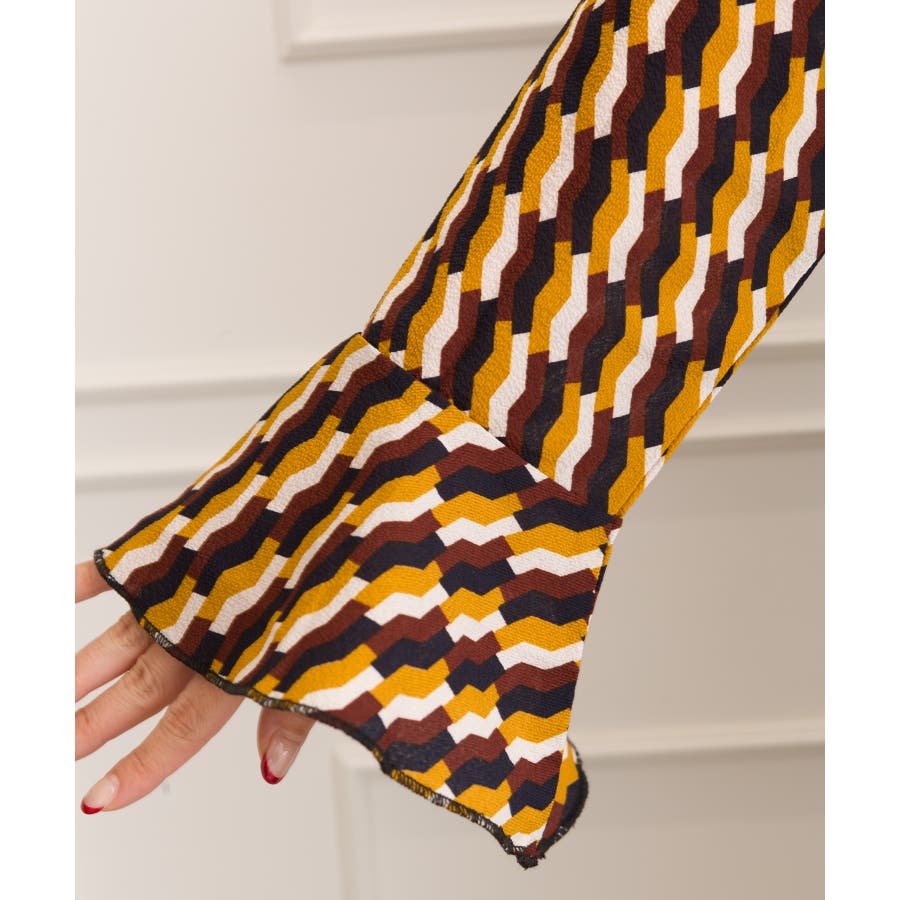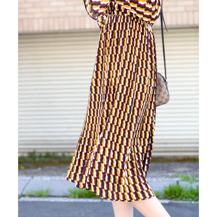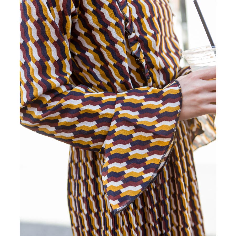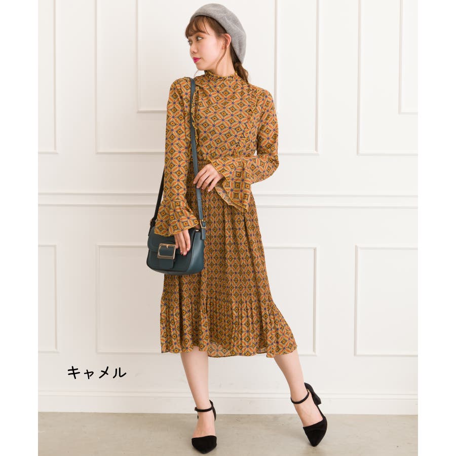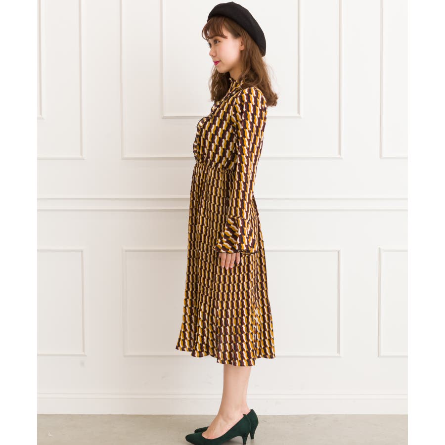 幾何学スタンドフリルワンピース/MEGA SALE CM 白石麻衣着用