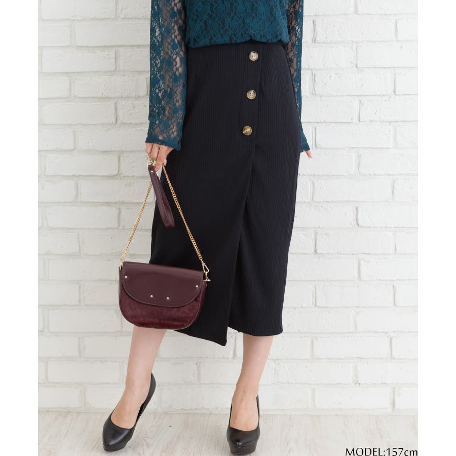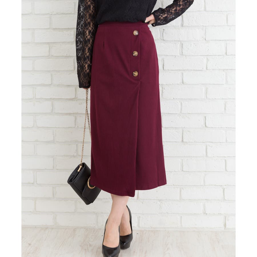 ぐるりと巻いたようなデザインが特徴のラップスカート