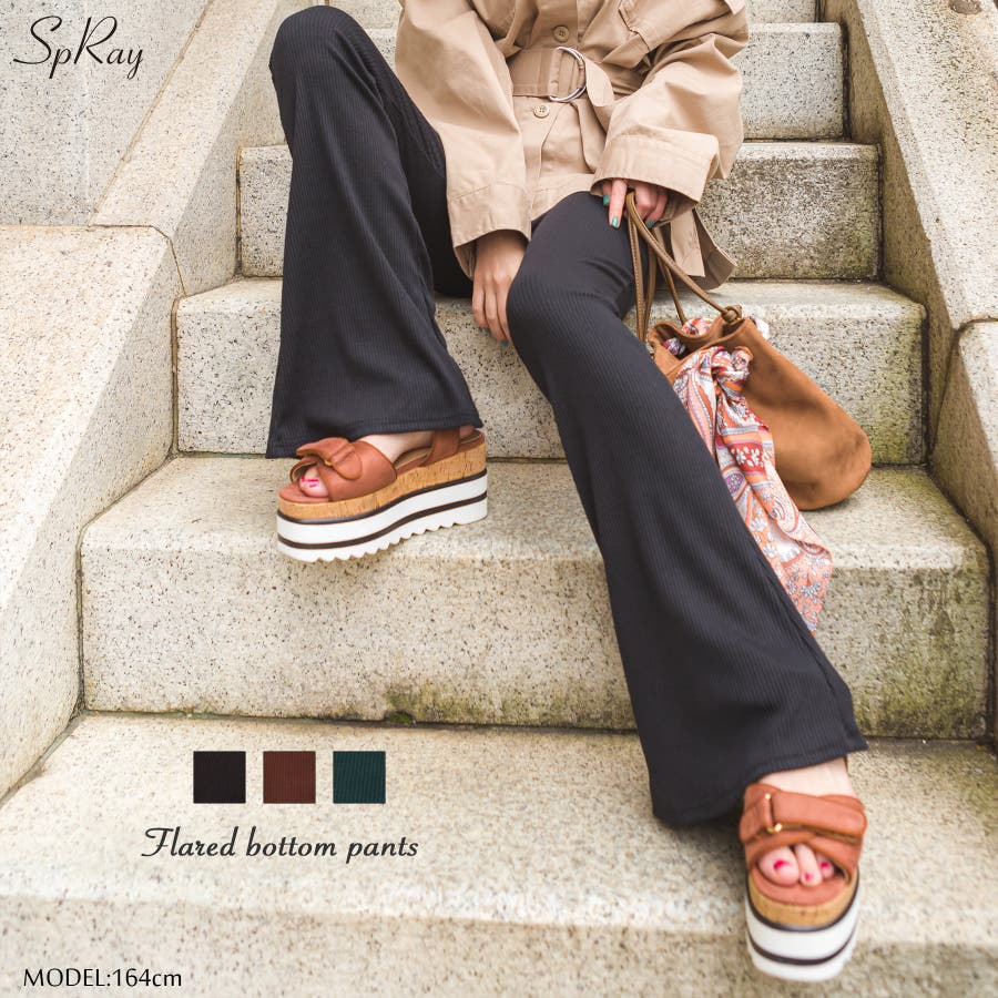 細身のフレアシルエットが美脚見えするフレアパンツ!