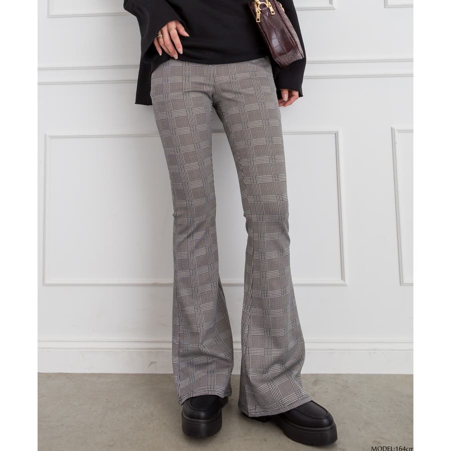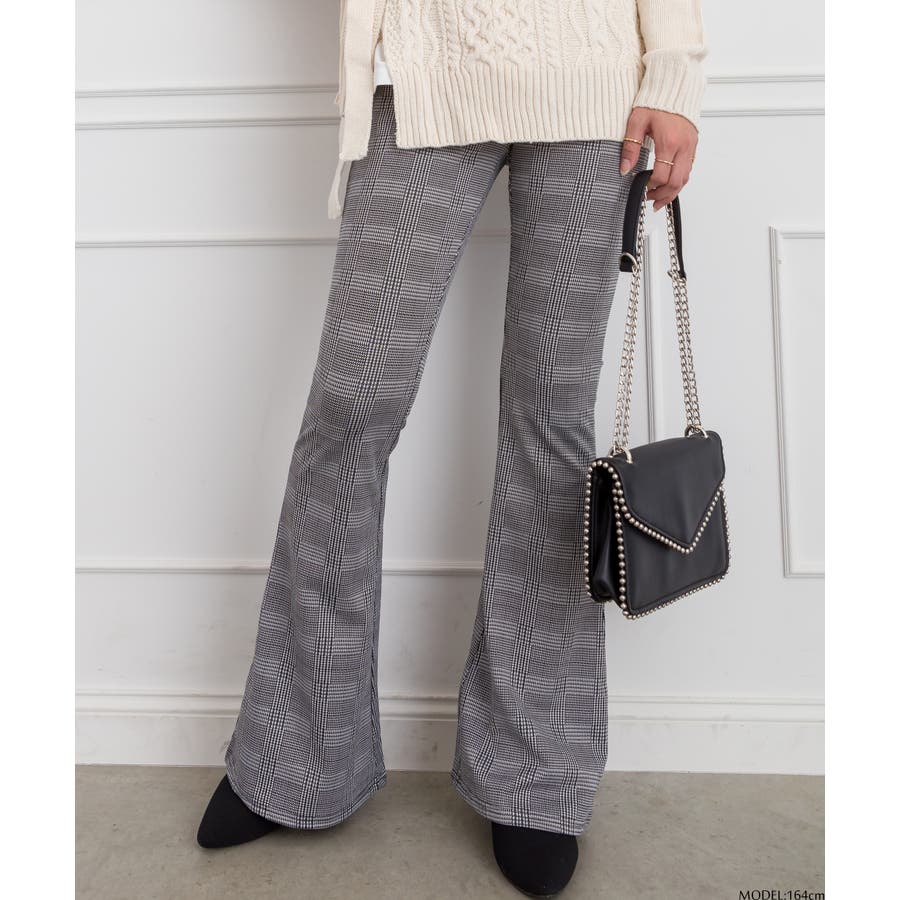 グレンチェックフレアパンツ