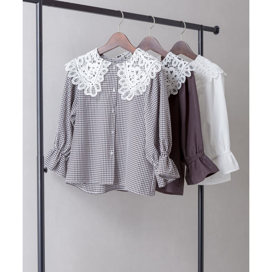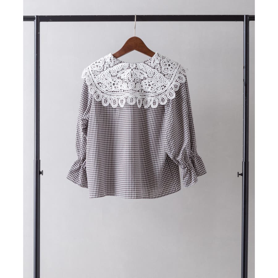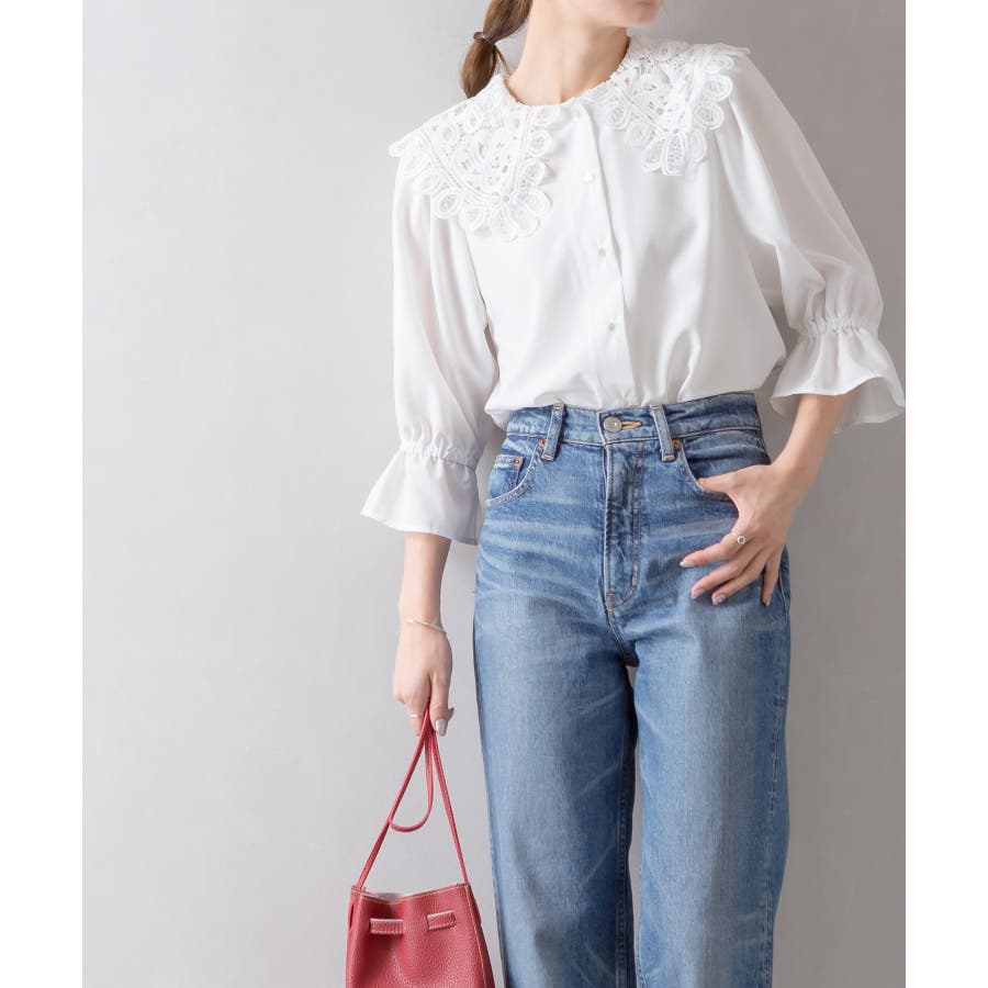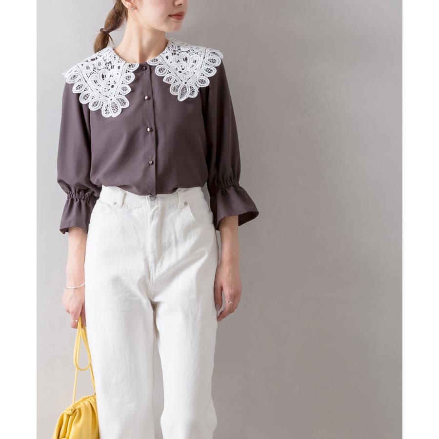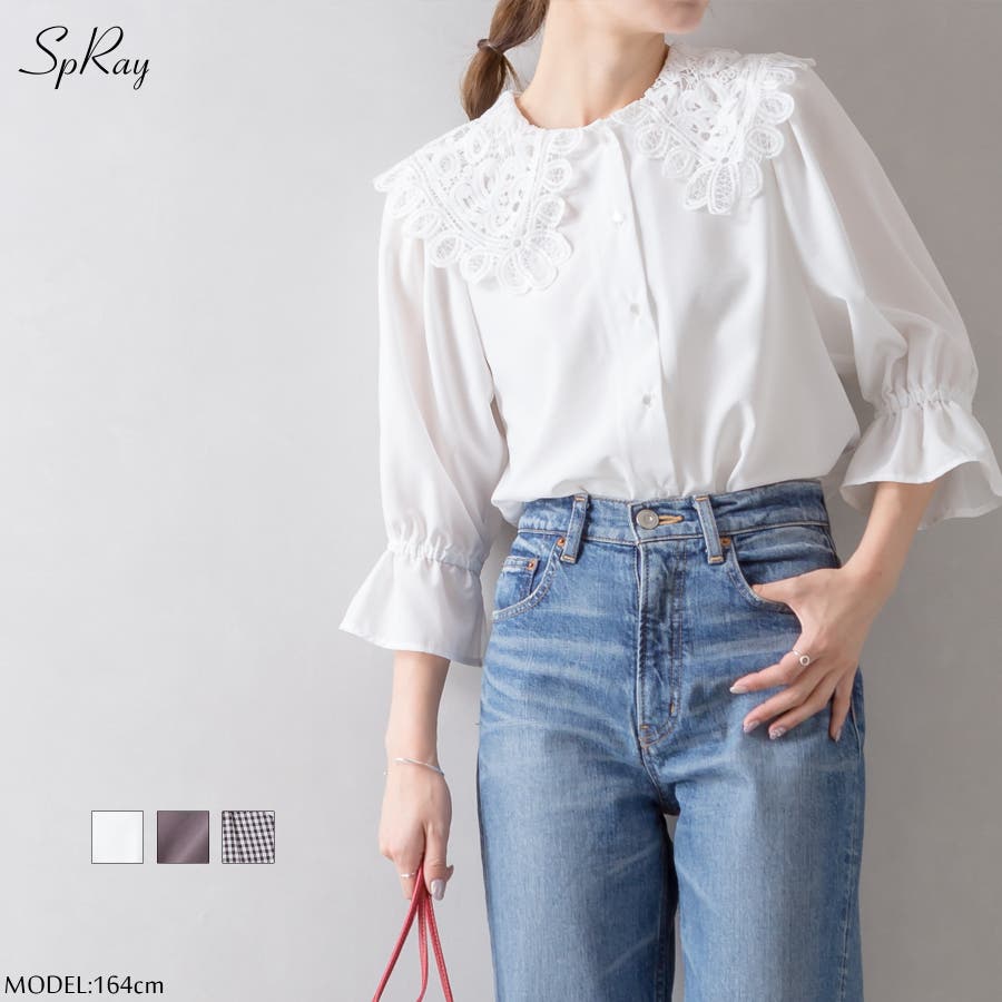【SpRay レース衿5分袖ブラウス】