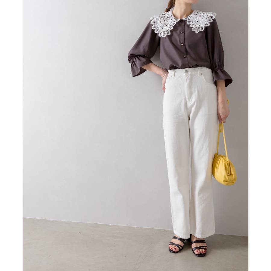 レース衿5分袖ブラウス