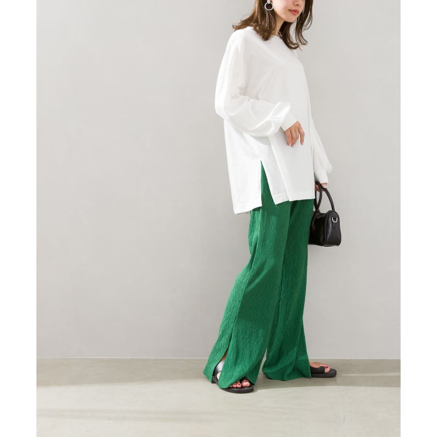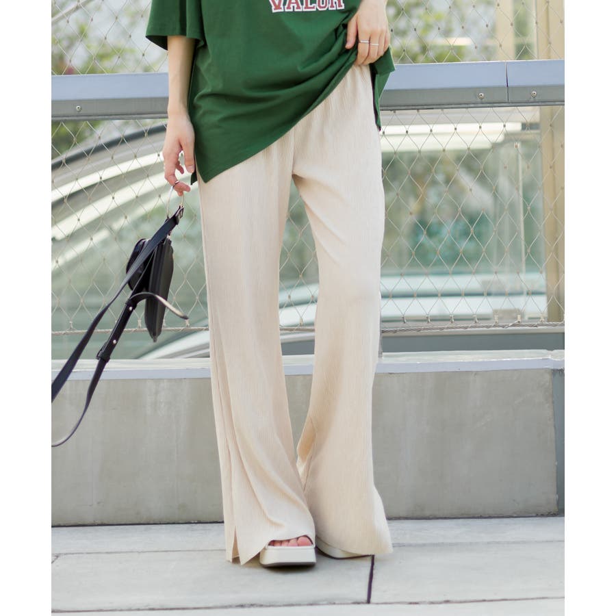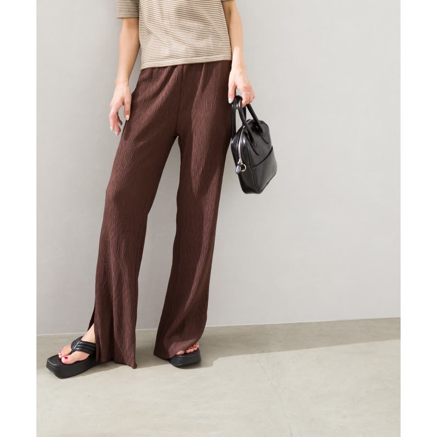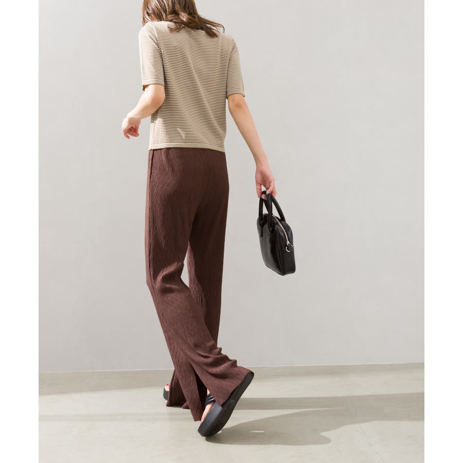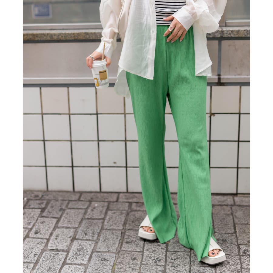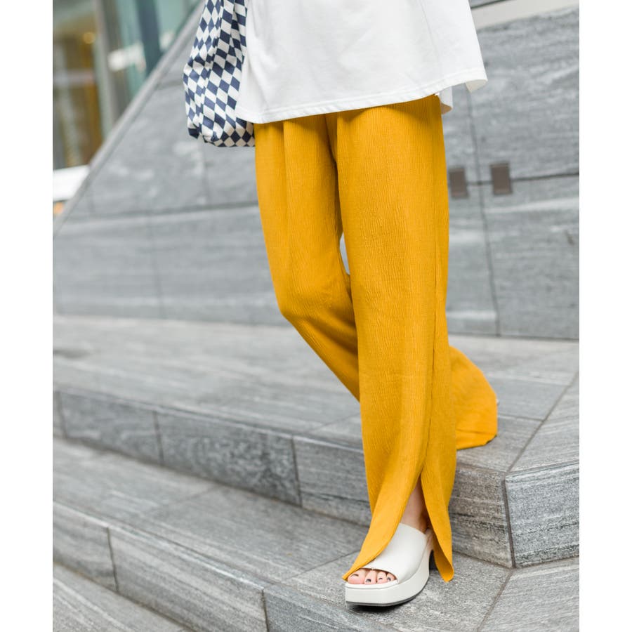 【セルフカットOK!】楊柳ストレートサイドスリットパンツ