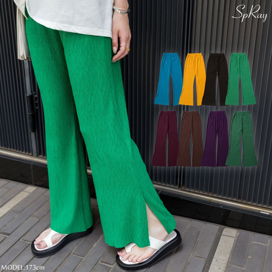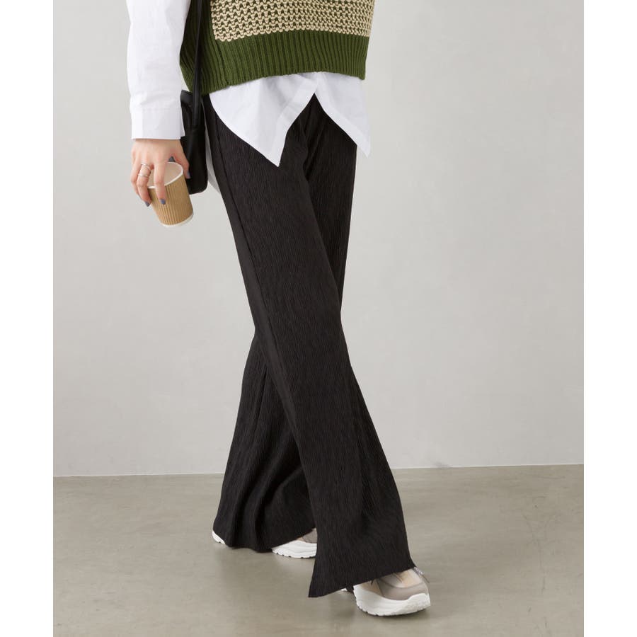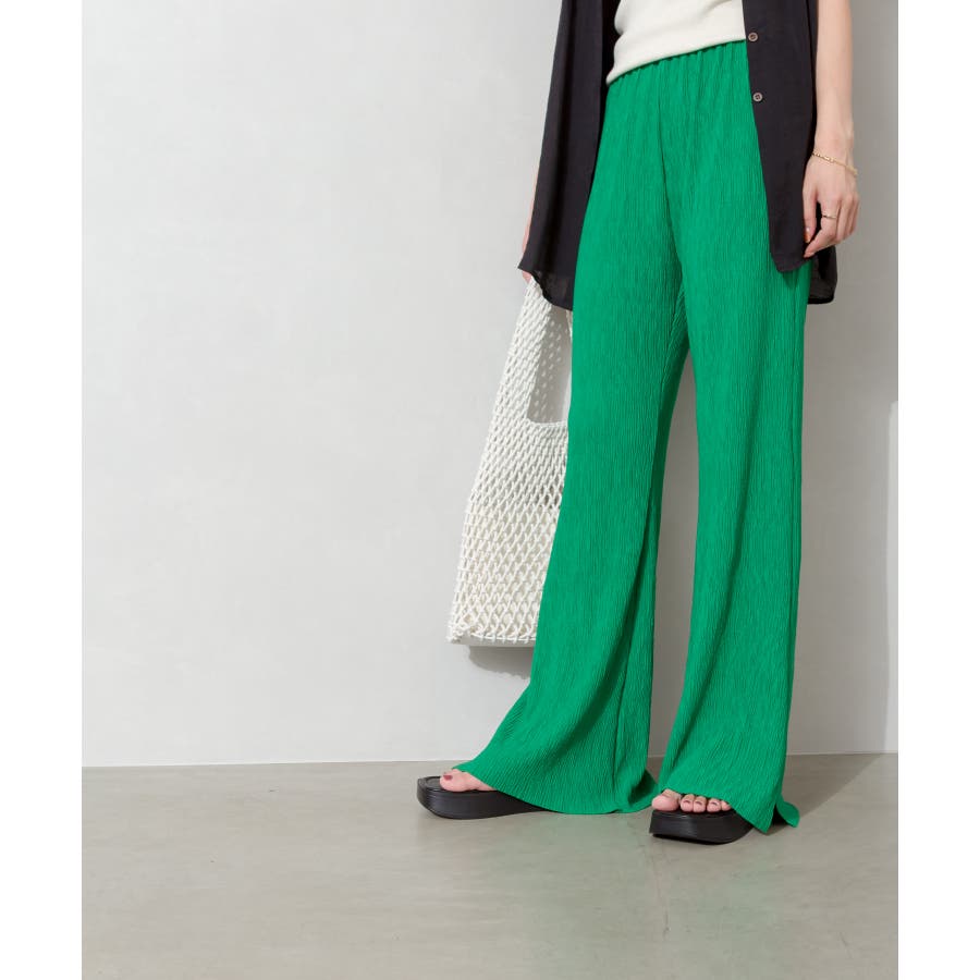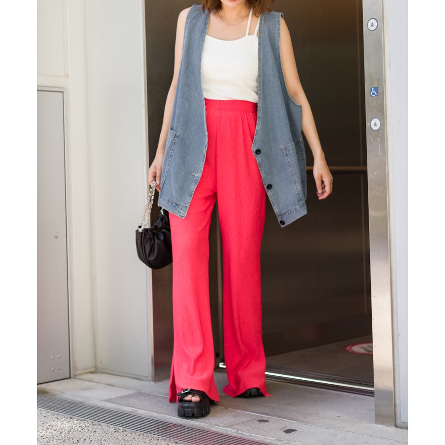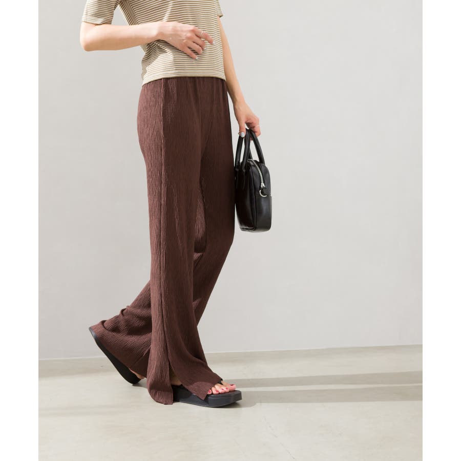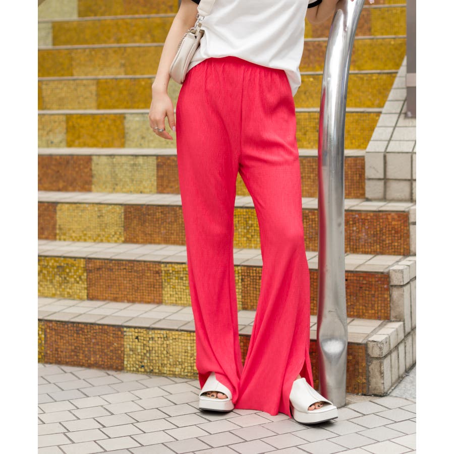 【セルフカットOK!】楊柳ストレートサイドスリットパンツ