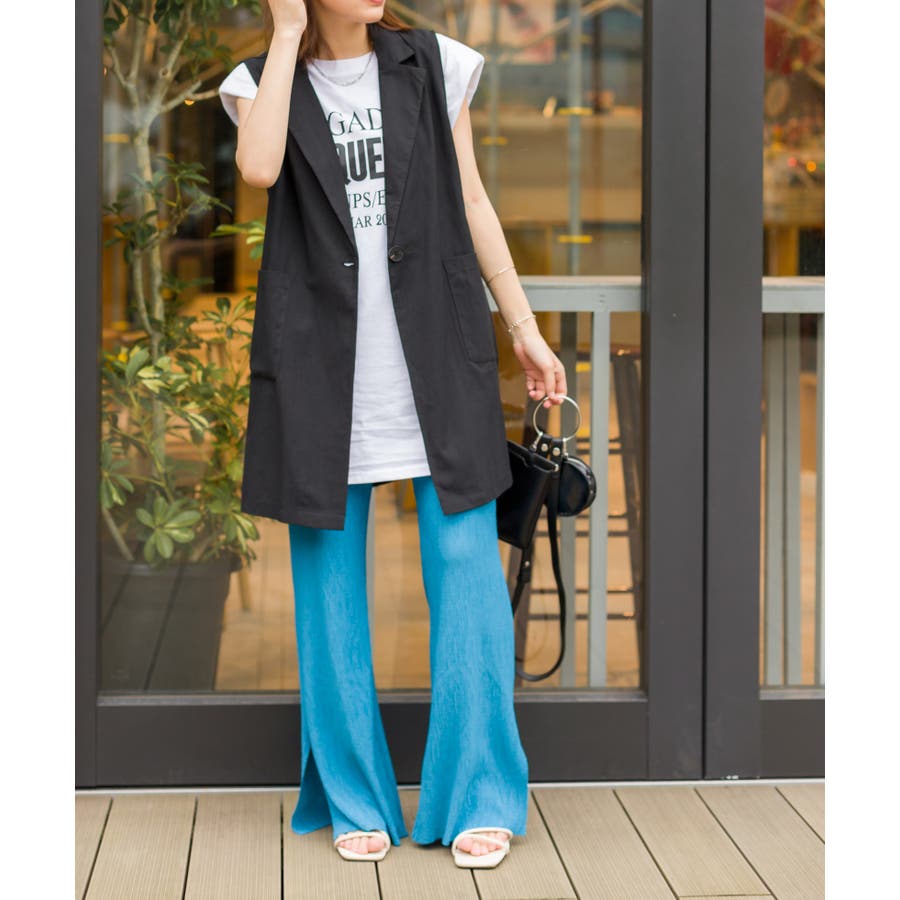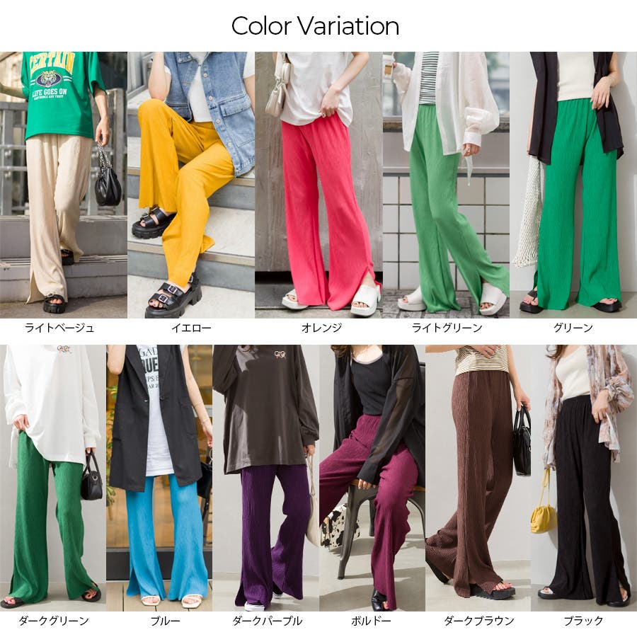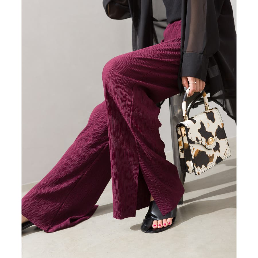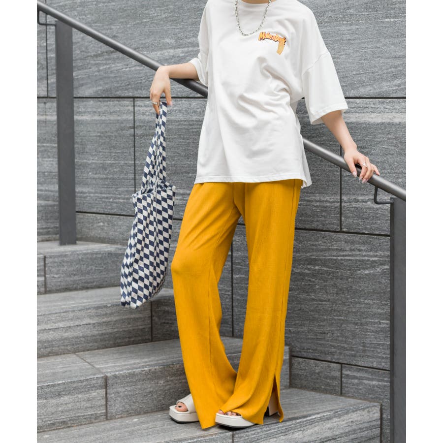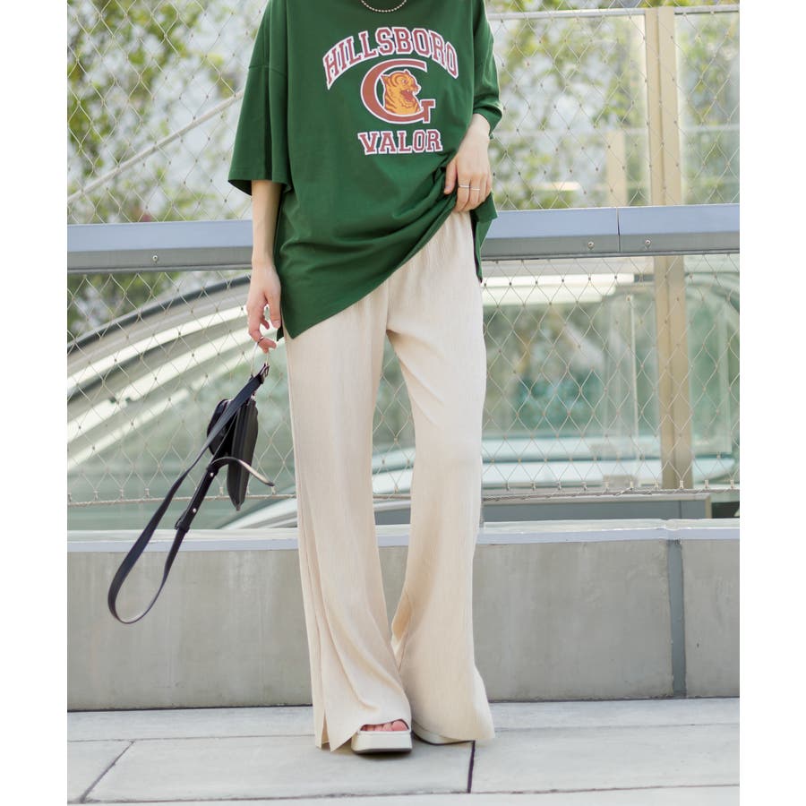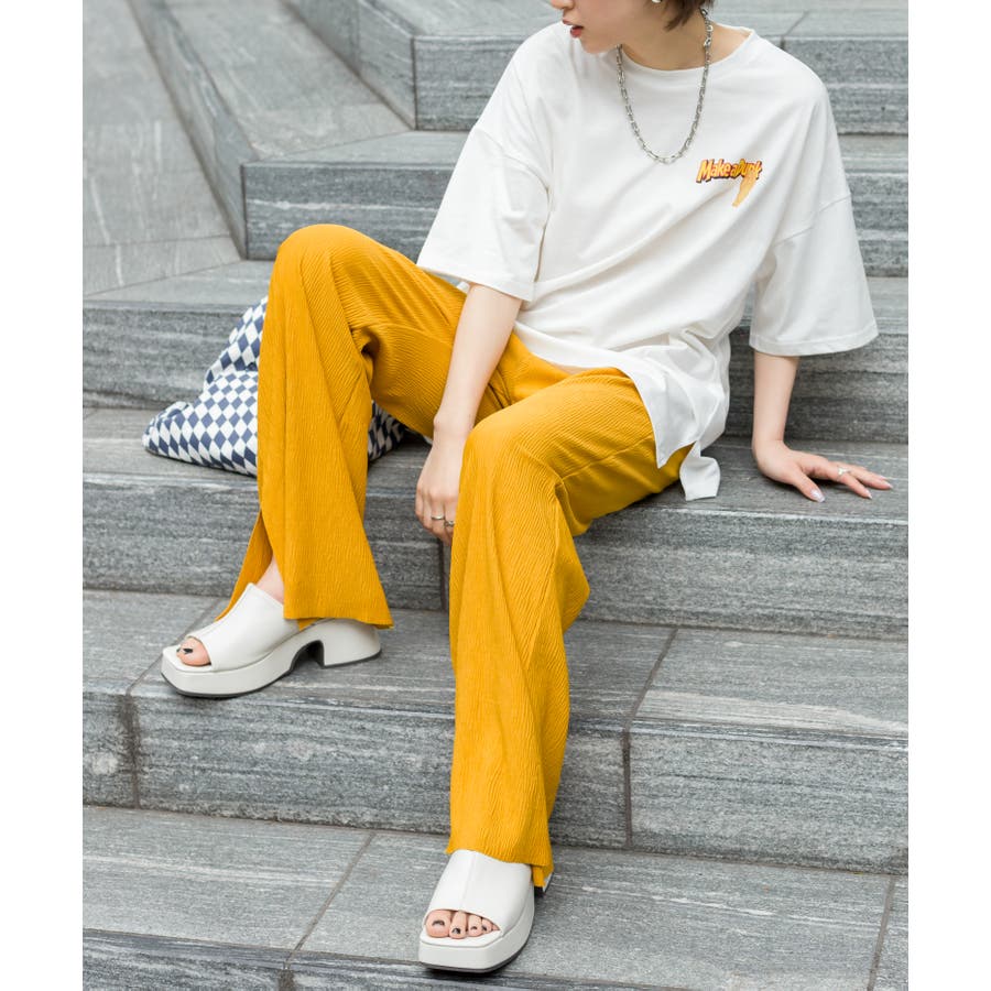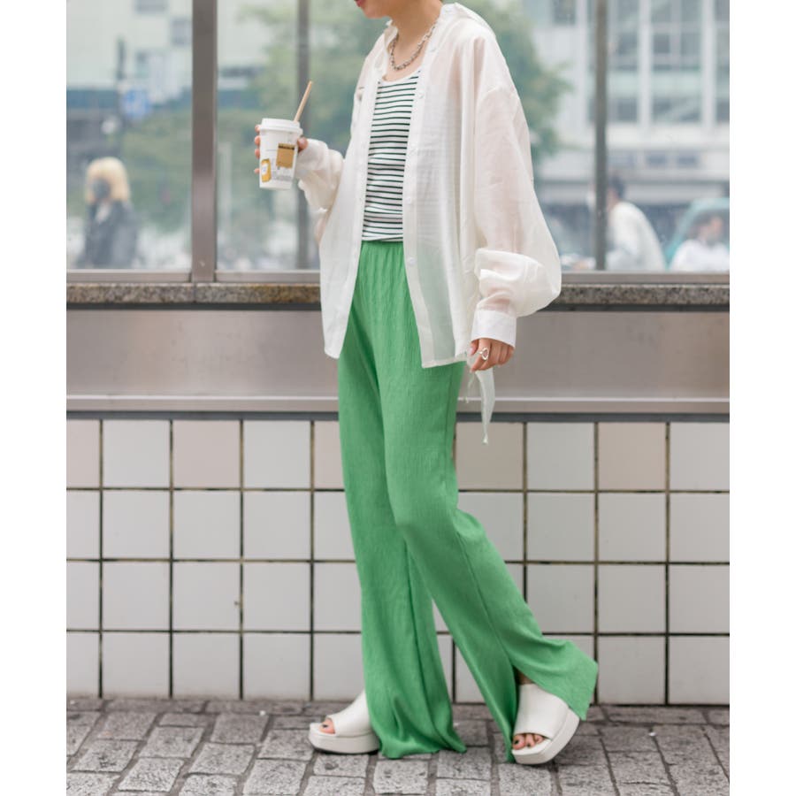 【セルフカットOK!】楊柳ストレートサイドスリットパンツ