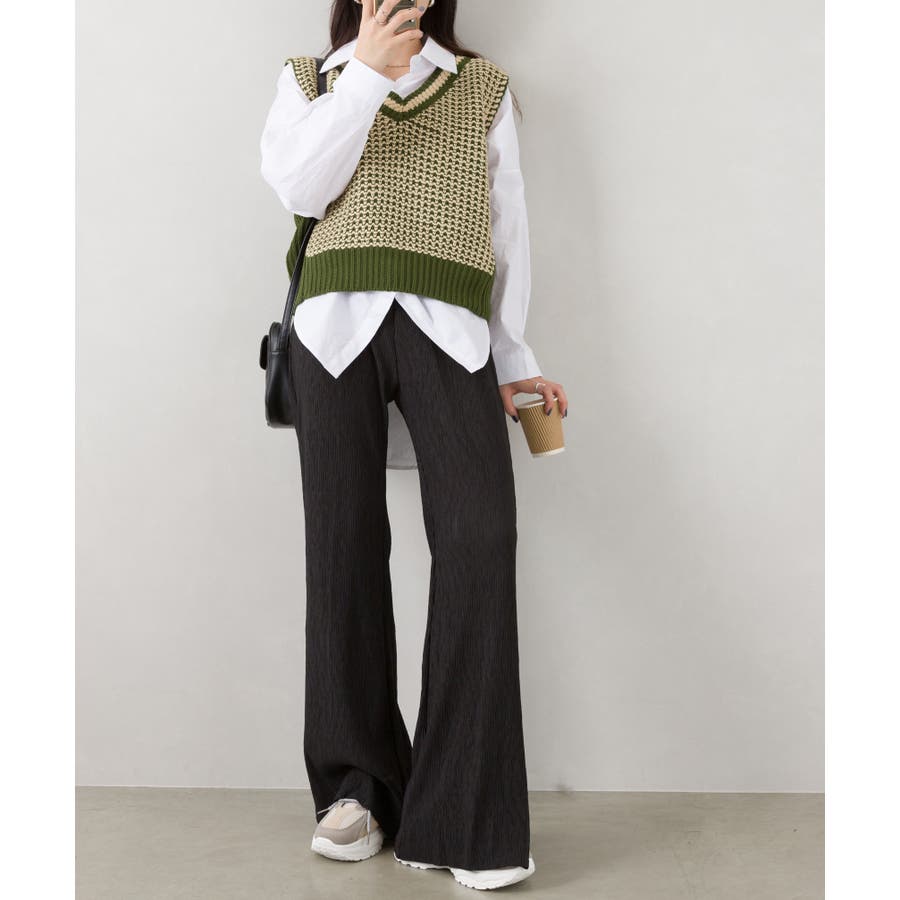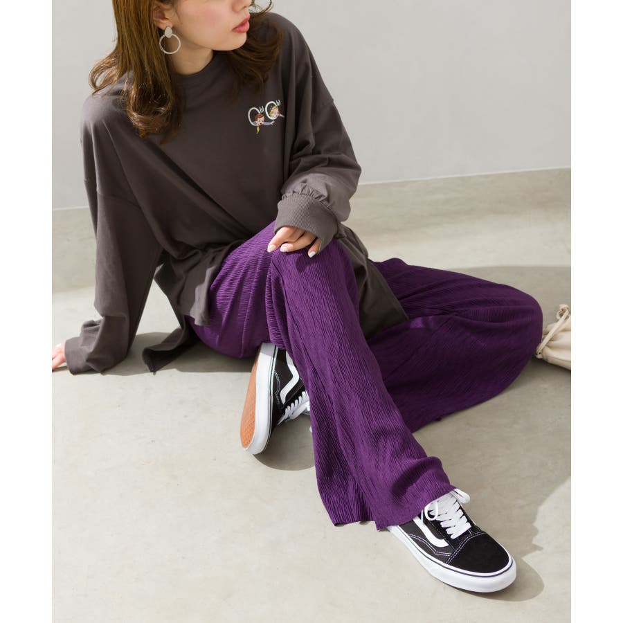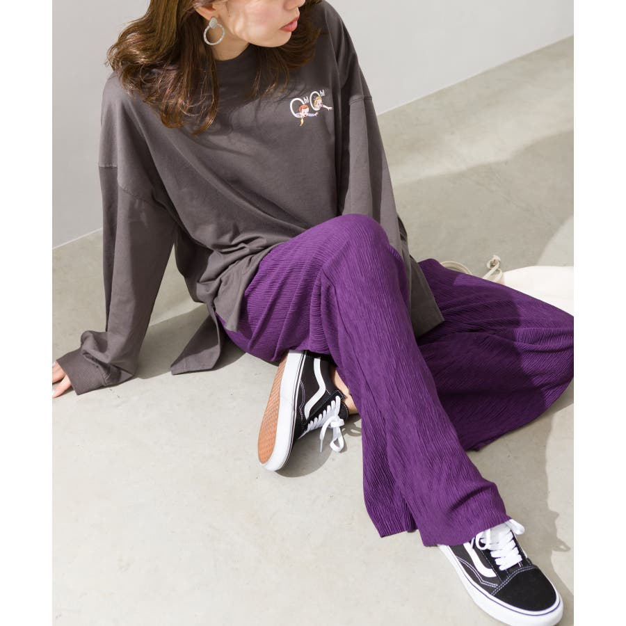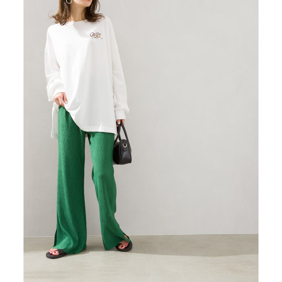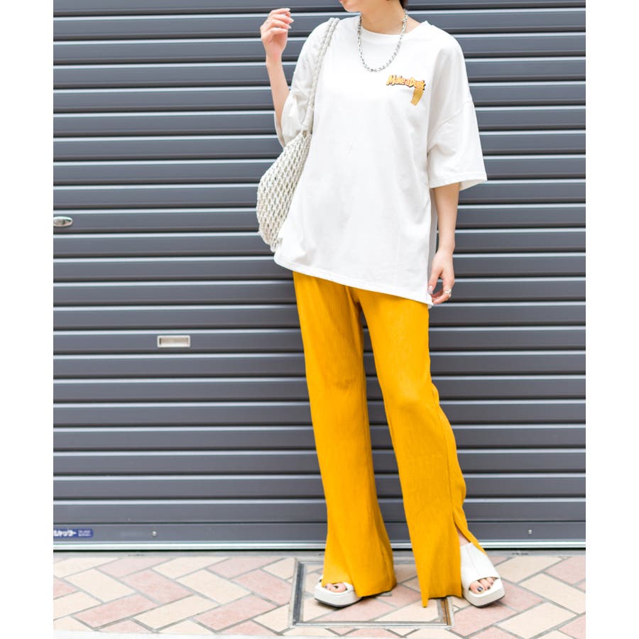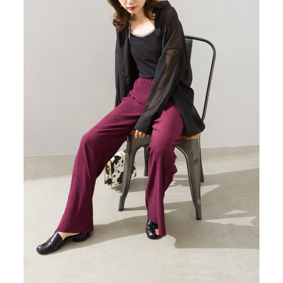 【セルフカットOK!】楊柳ストレートサイドスリットパンツ