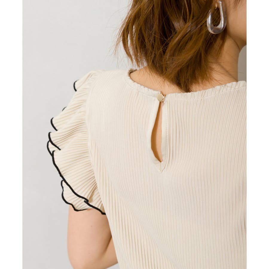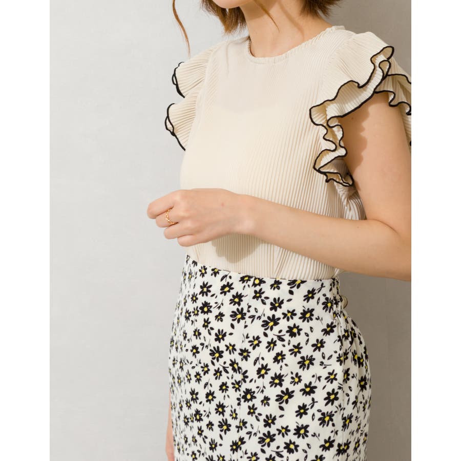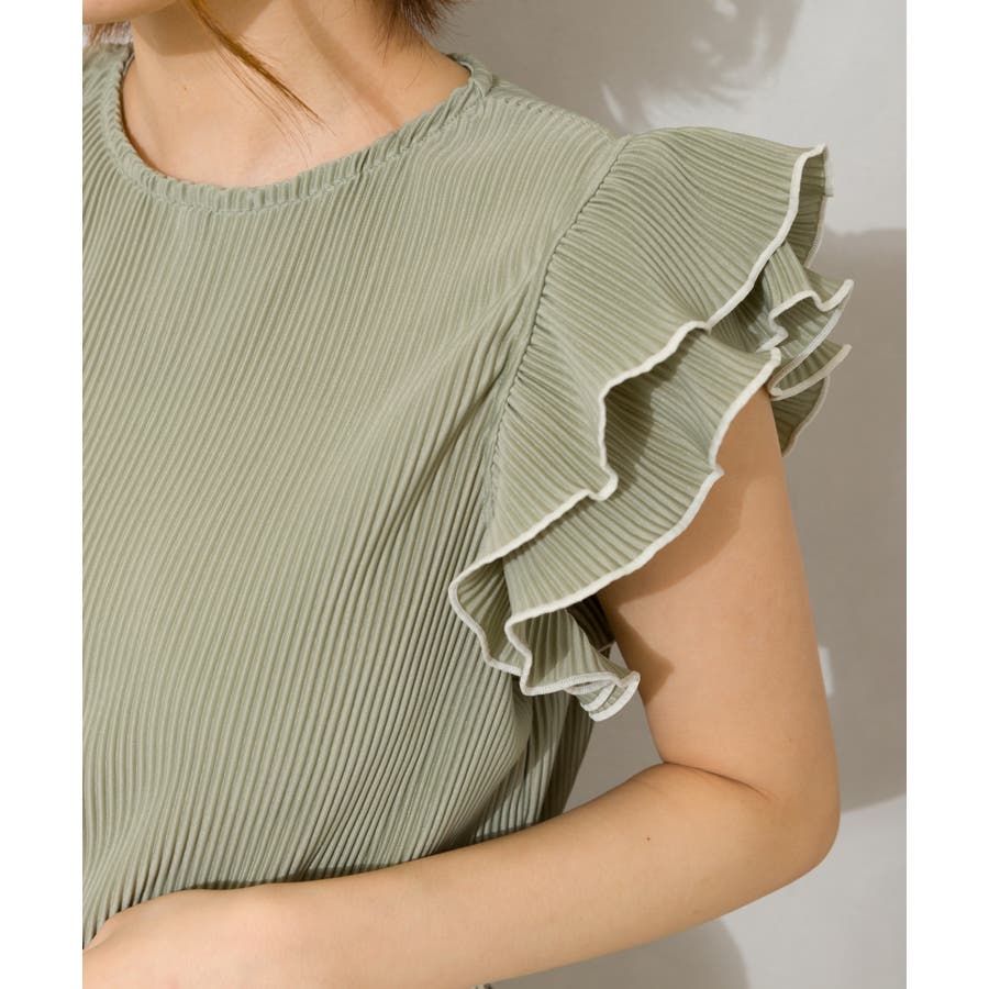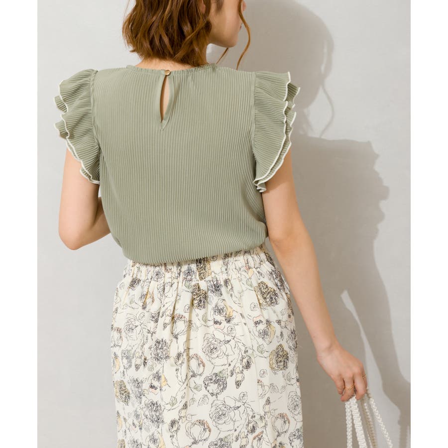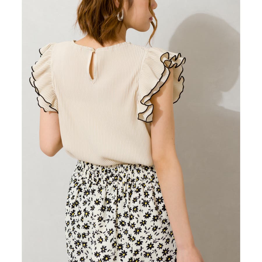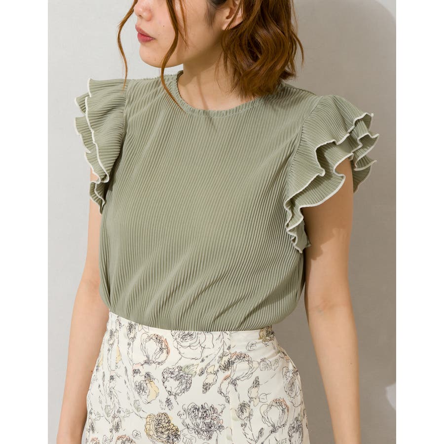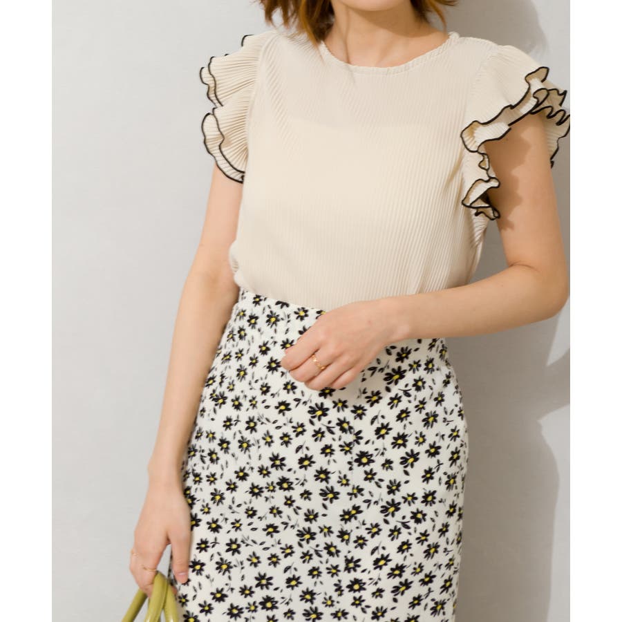 肩部分のフリルが特徴的なトップス◎肩部分のフリルが大きいことで華奢見せが得意なトップスでノースリーブでもきれいにスタイルアップが可能なアイテム♪トレンドのマーメイドスカートやデニム合わせでも可愛く決まります☆