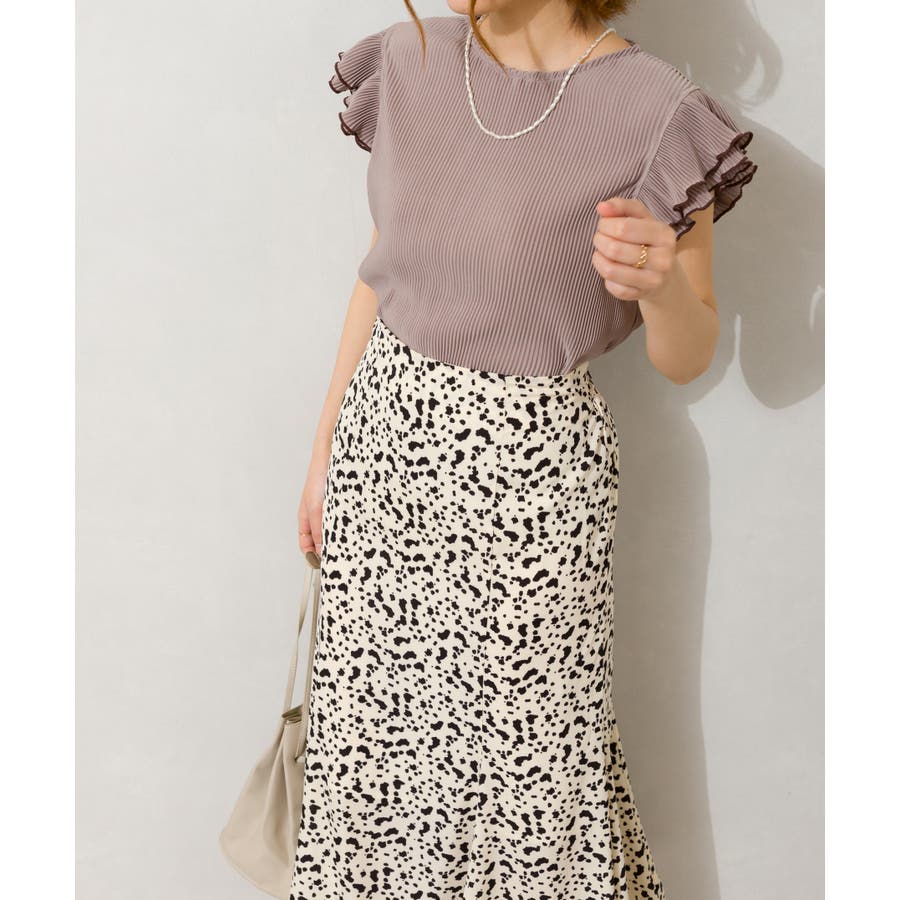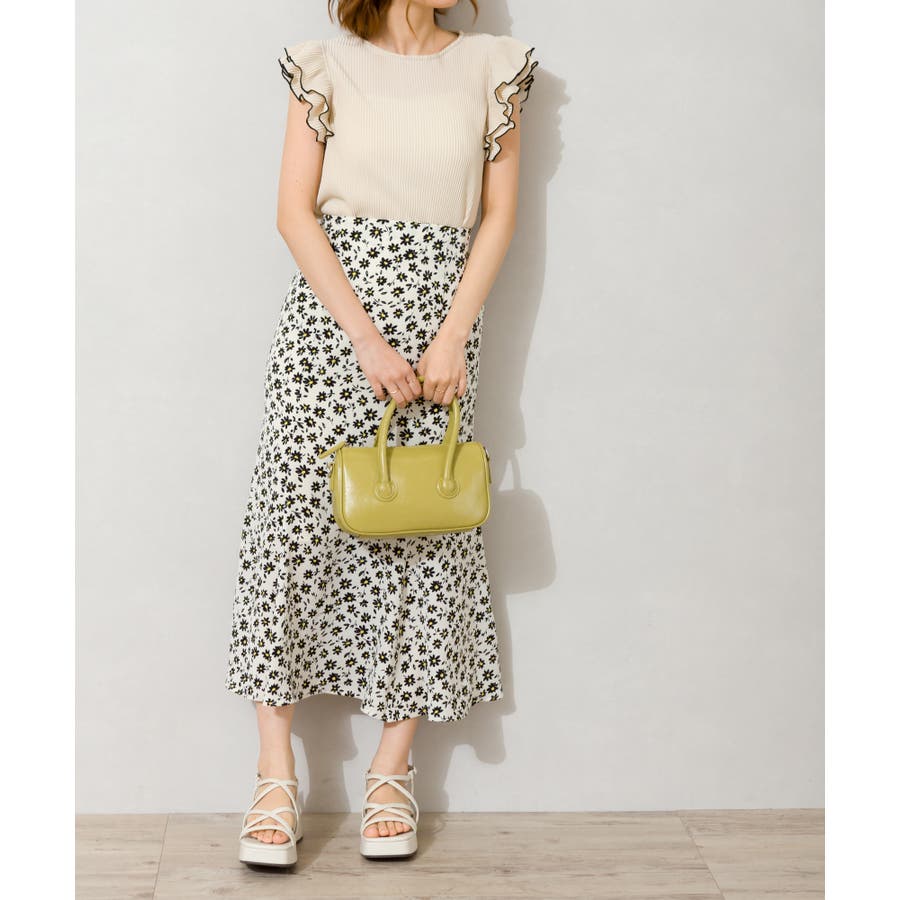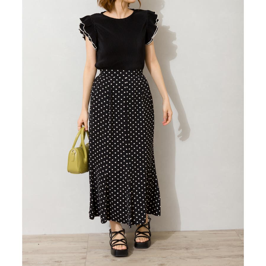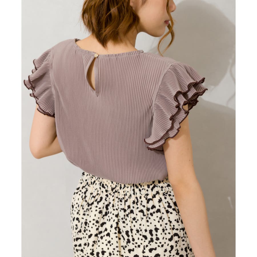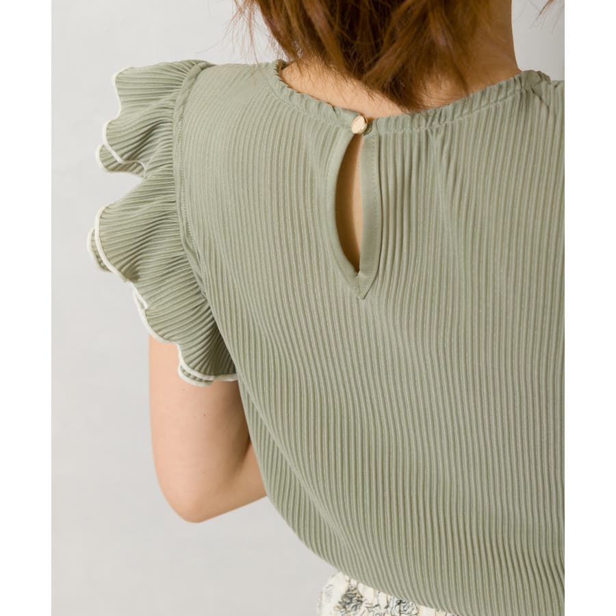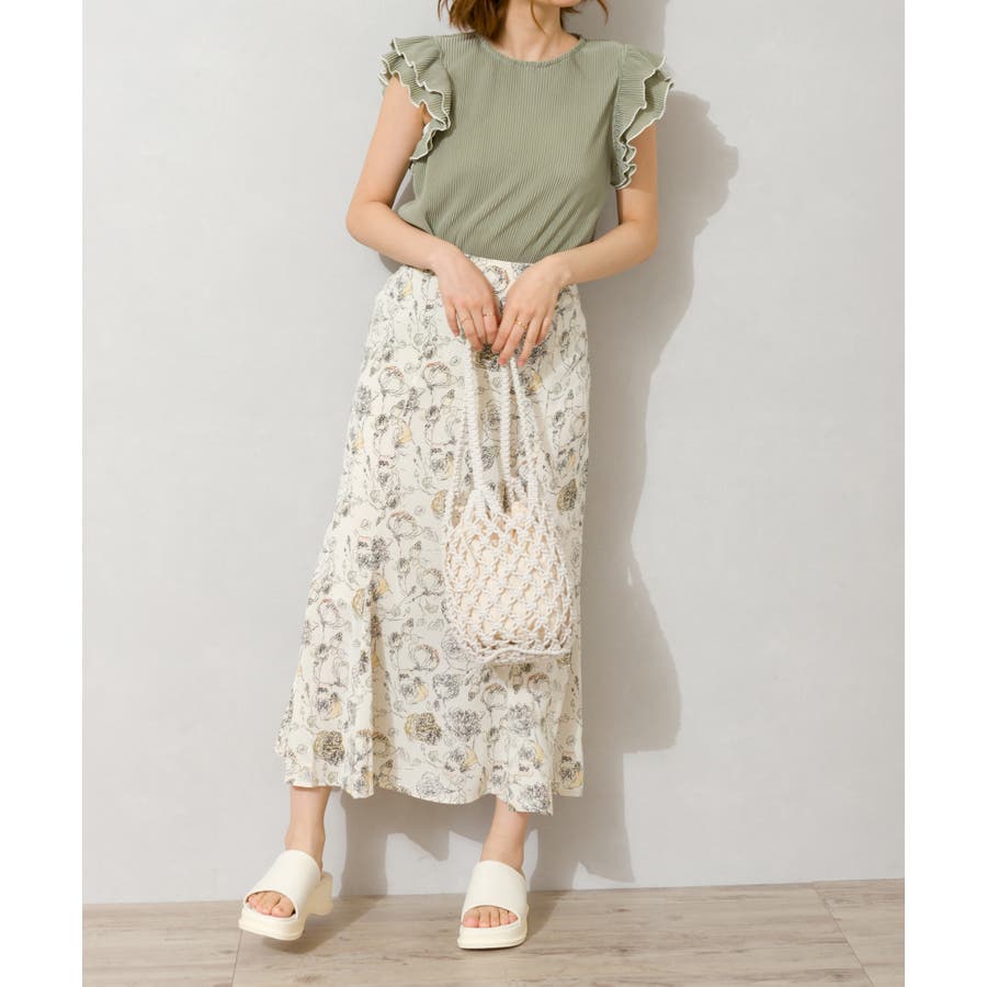 肩部分のフリルが特徴的なトップス◎肩部分のフリルが大きいことで華奢見せが得意なトップスでノースリーブでもきれいにスタイルアップが可能なアイテム♪トレンドのマーメイドスカートやデニム合わせでも可愛く決まります☆
