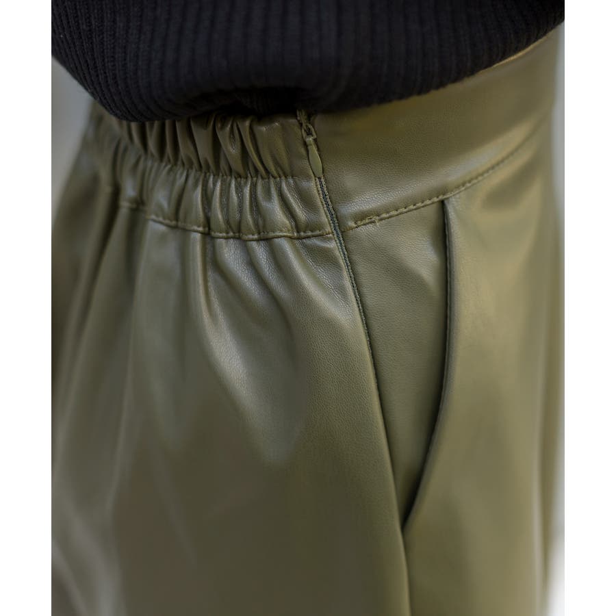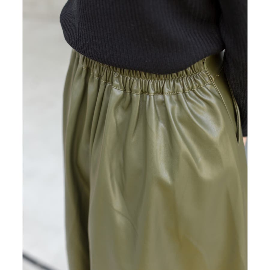 ウエストはゴムでストレスフリーでエコレザーは柔らかい質感が特徴なので動きやすさも抜群です♪