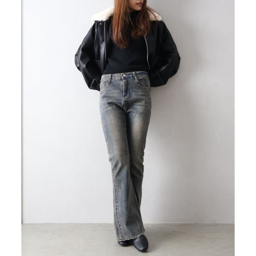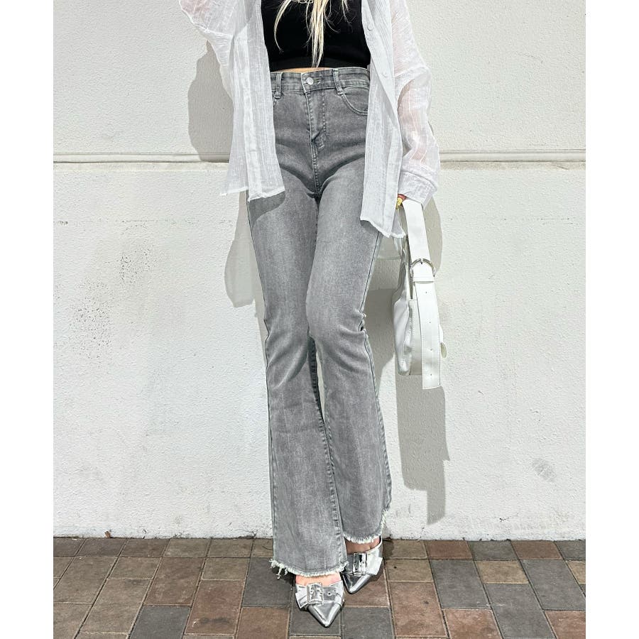 魅力のデニムセミフレアパンツ。