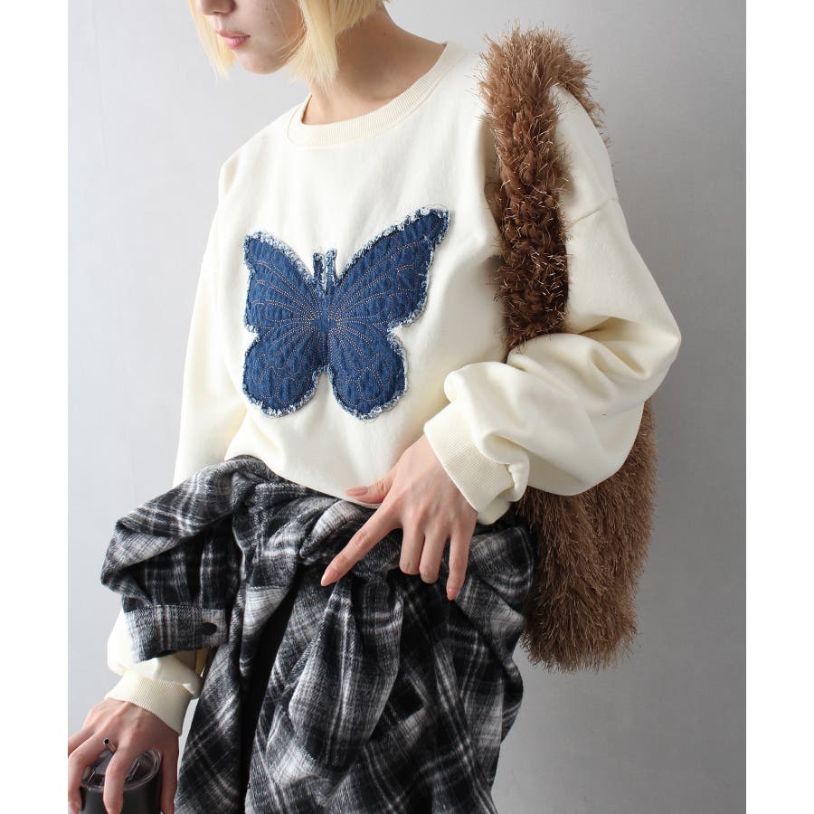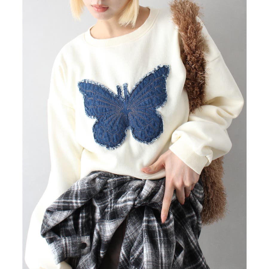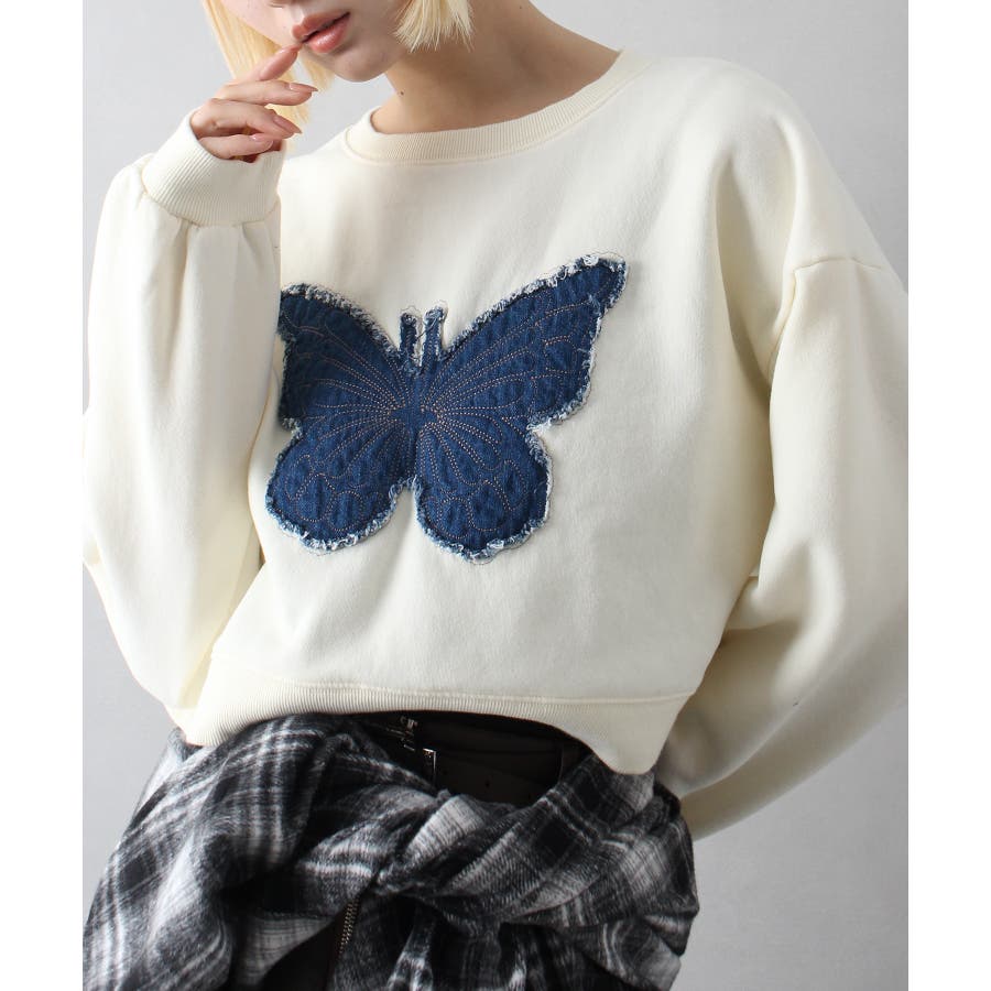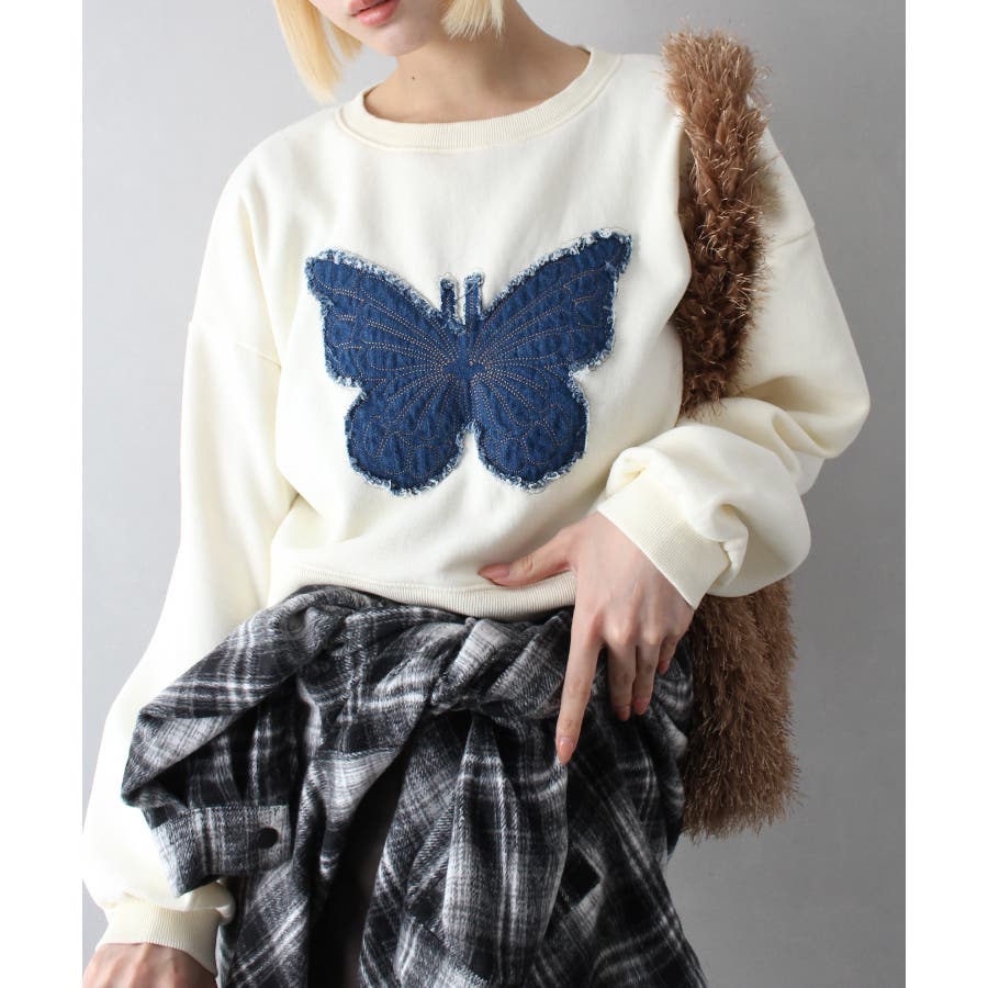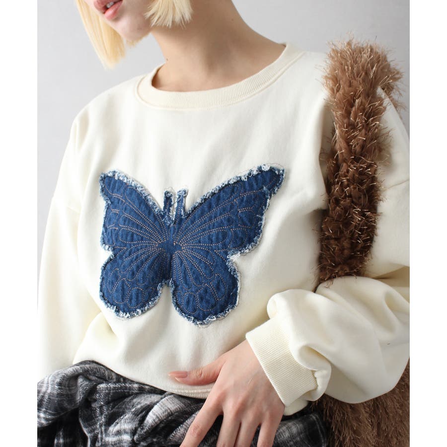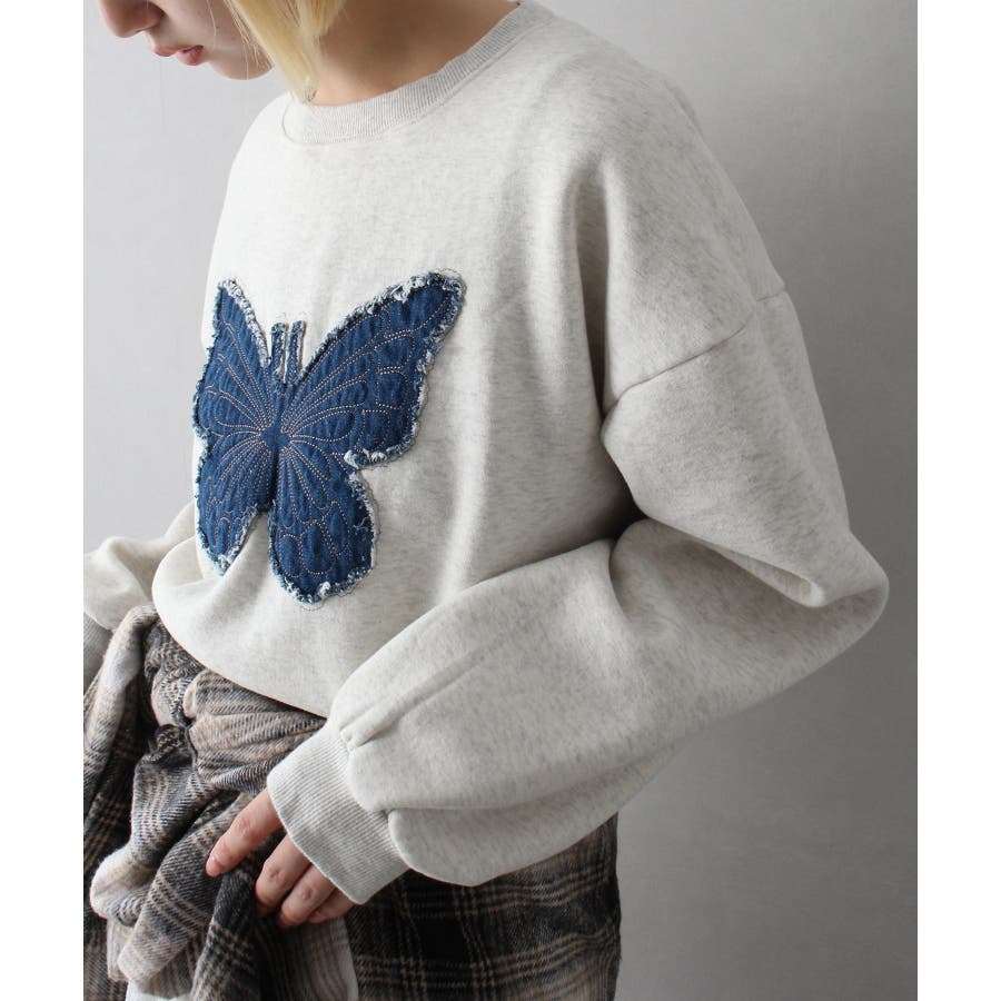裏起毛デニムバタフライトップス