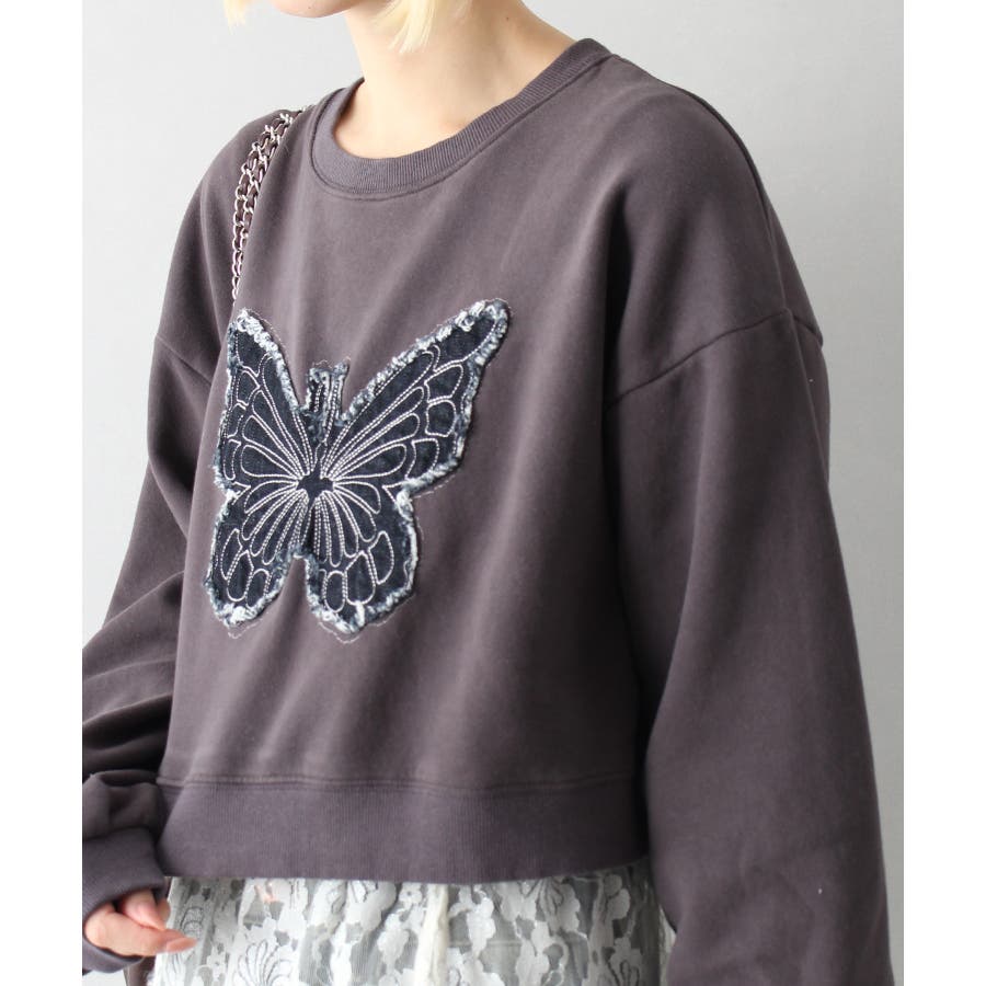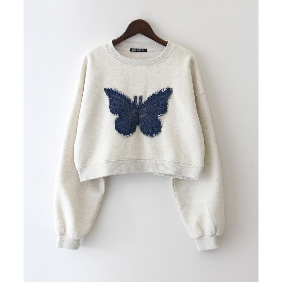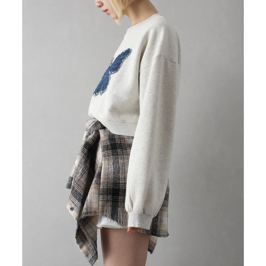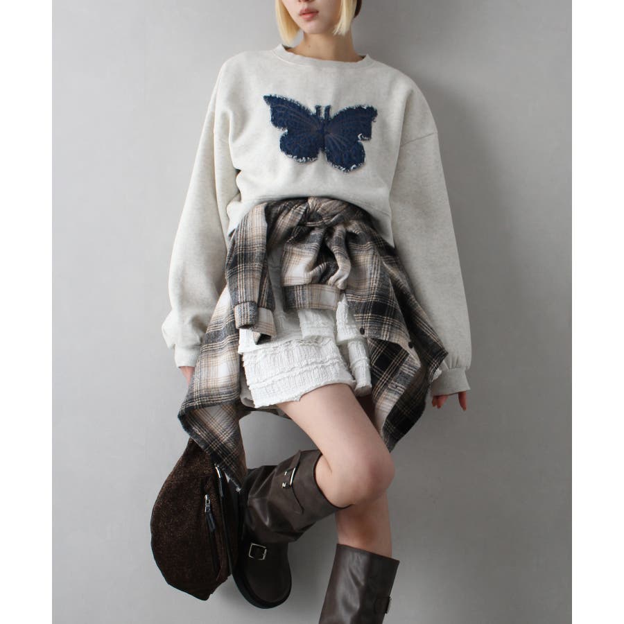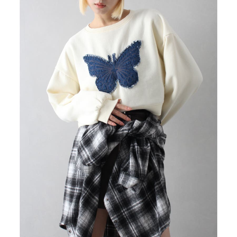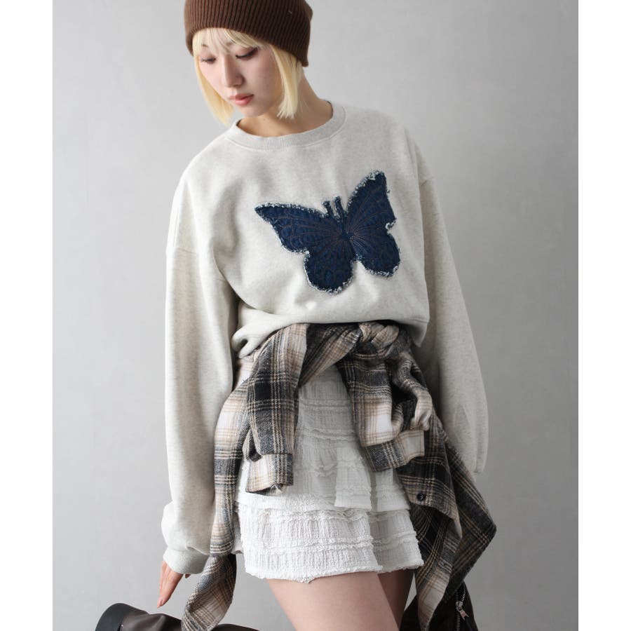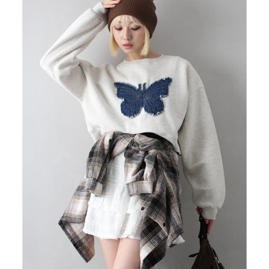 裏起毛デニムバタフライトップス