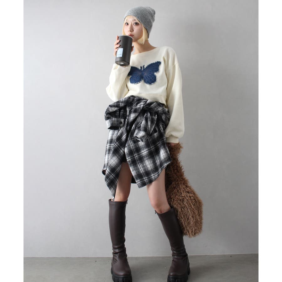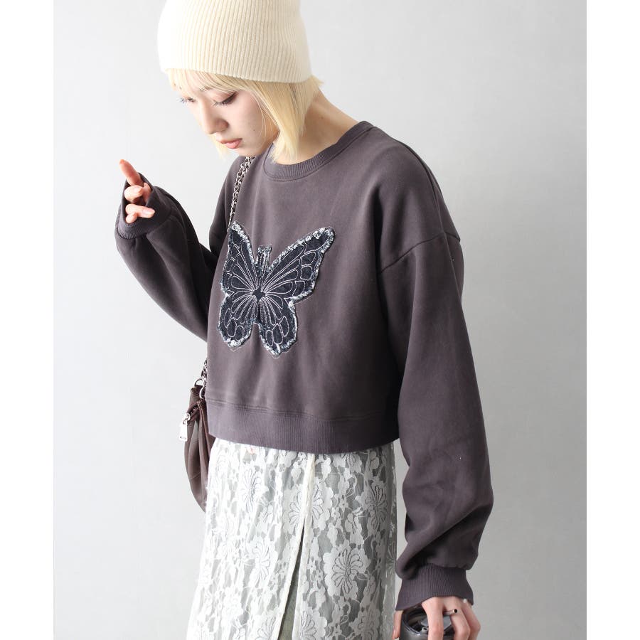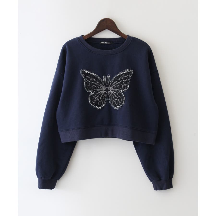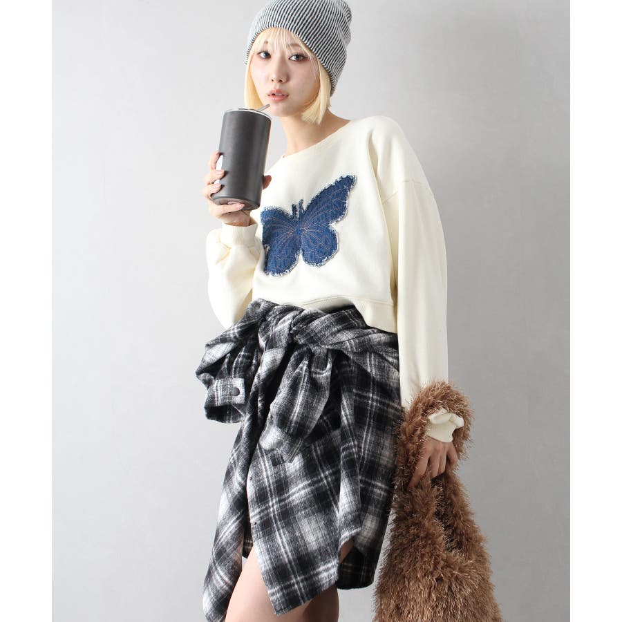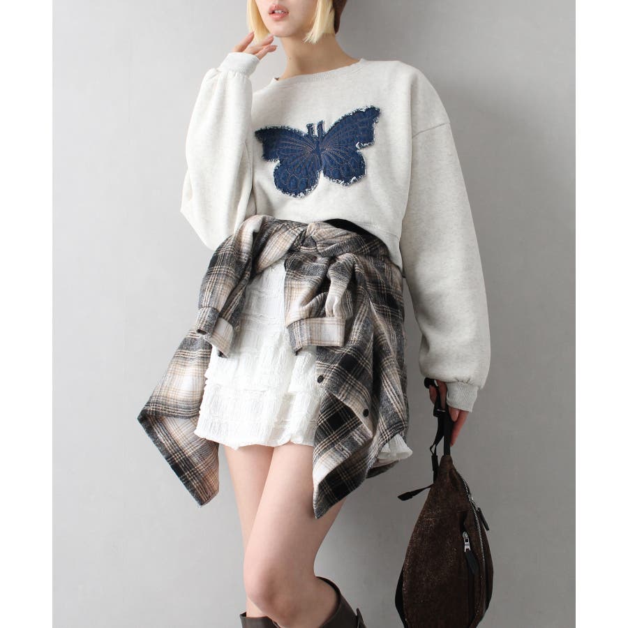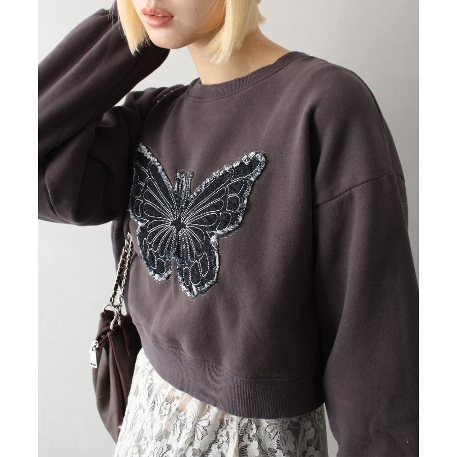 裏起毛デニムバタフライトップス