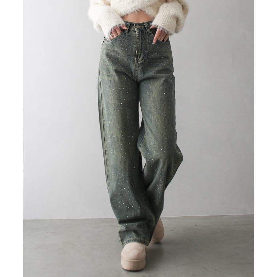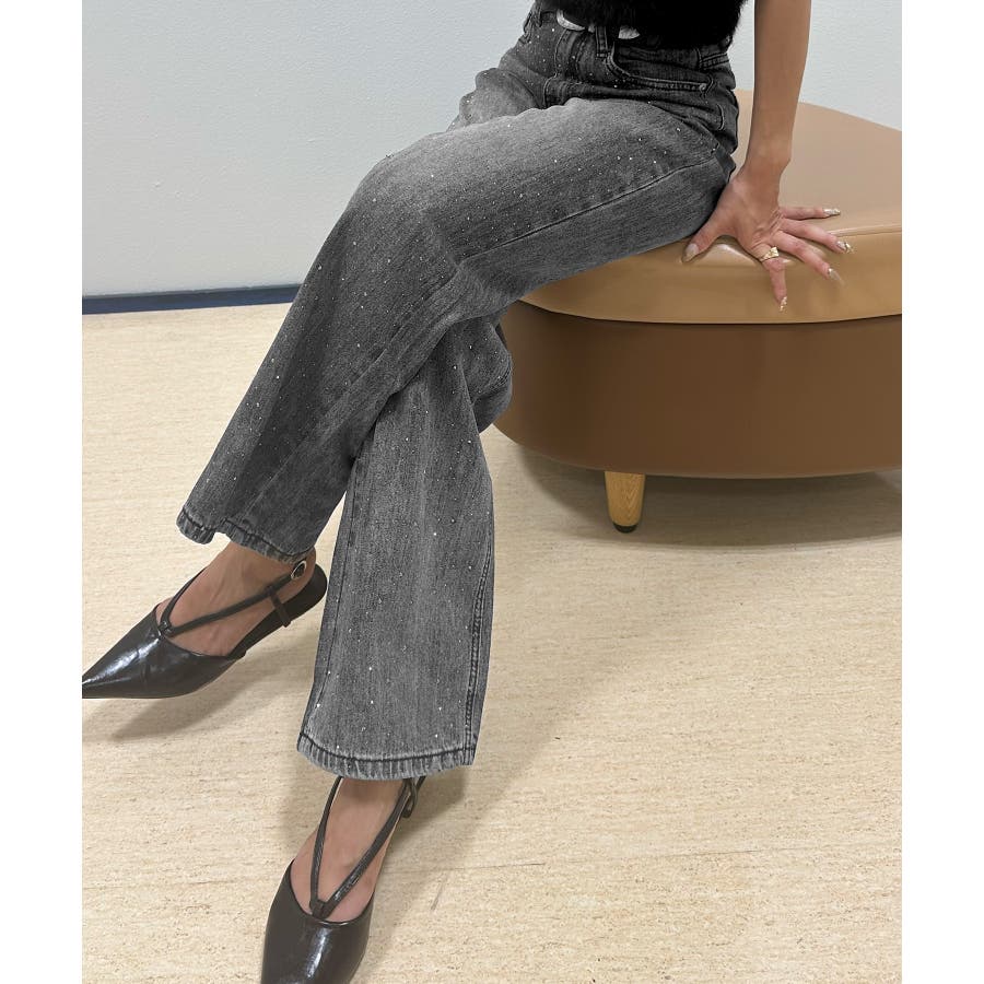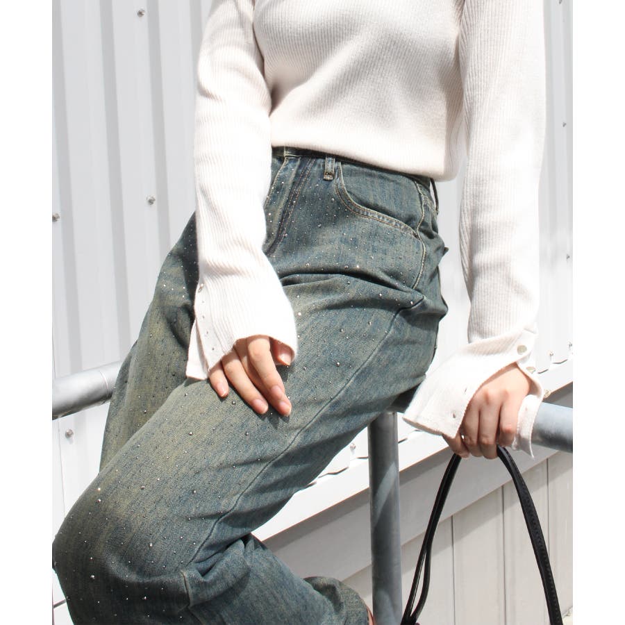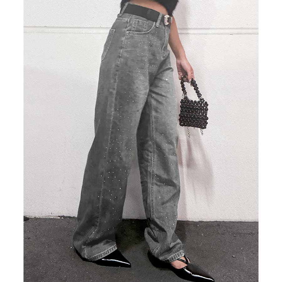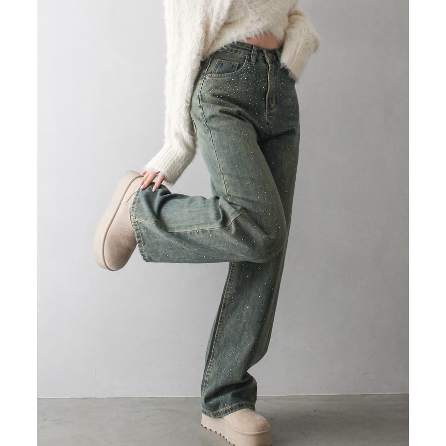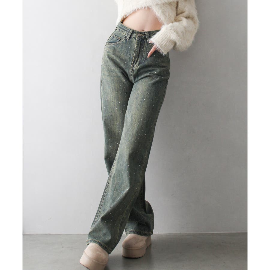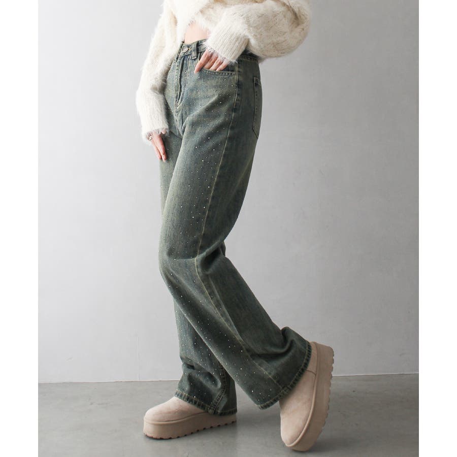 デニムスタッズストレートパンツ