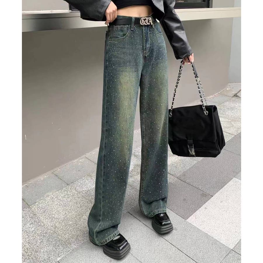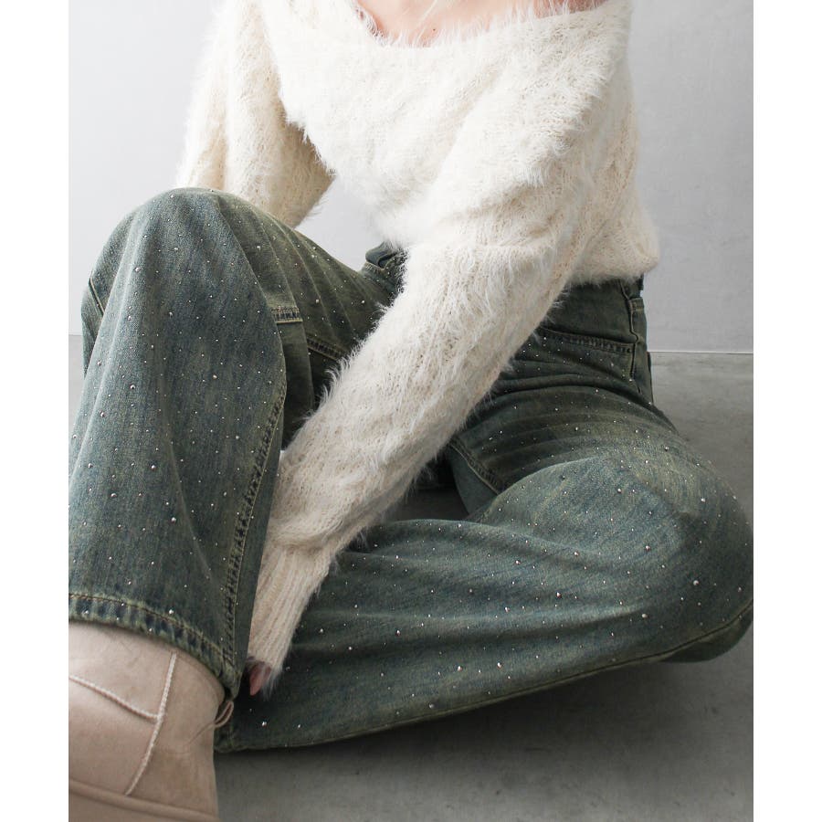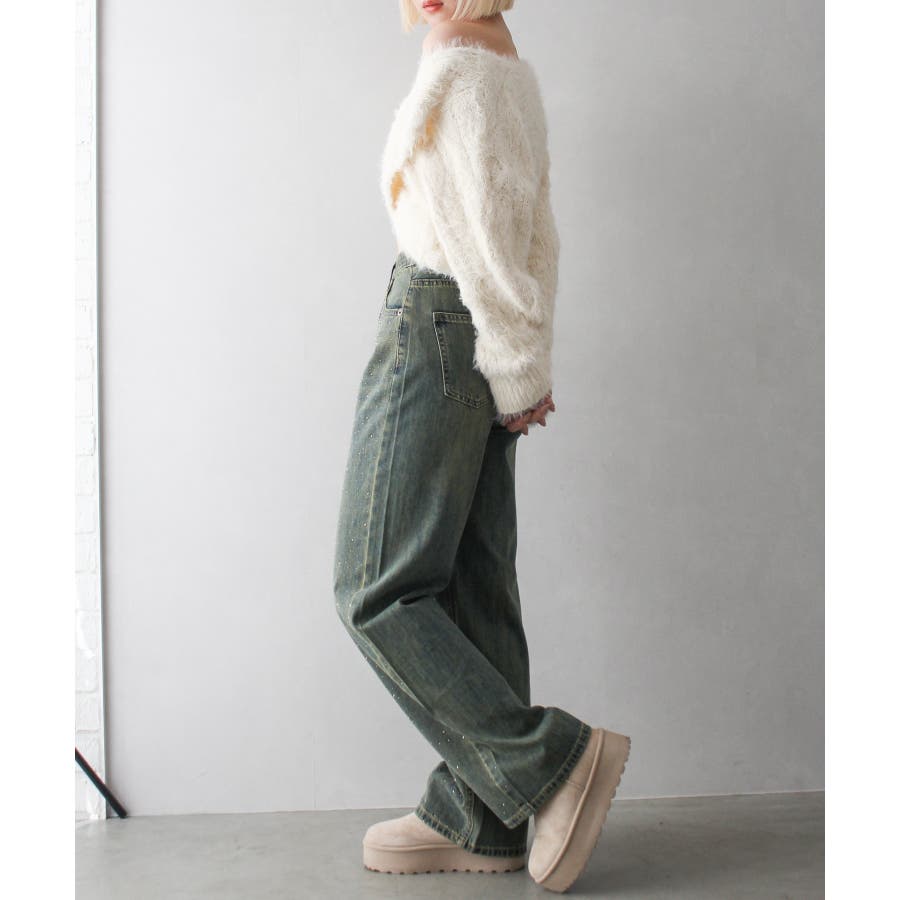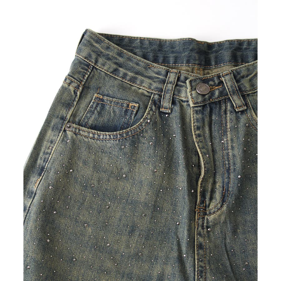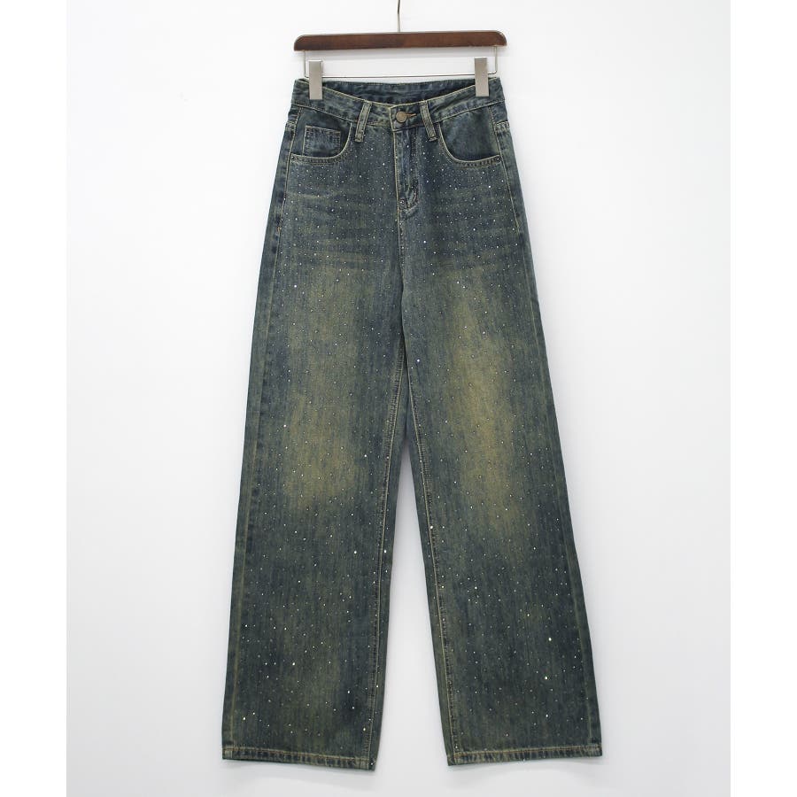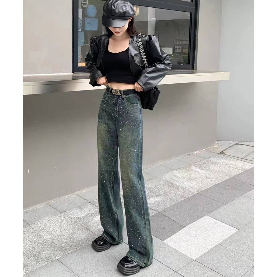 デニムスタッズストレートパンツ