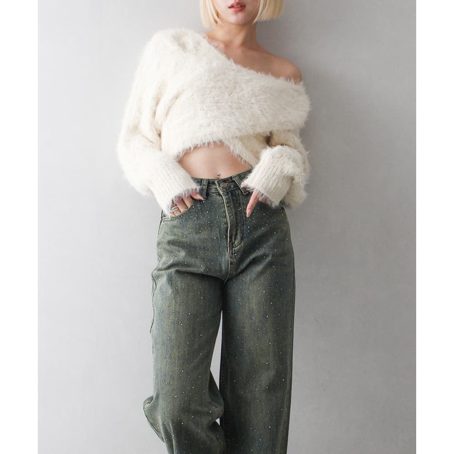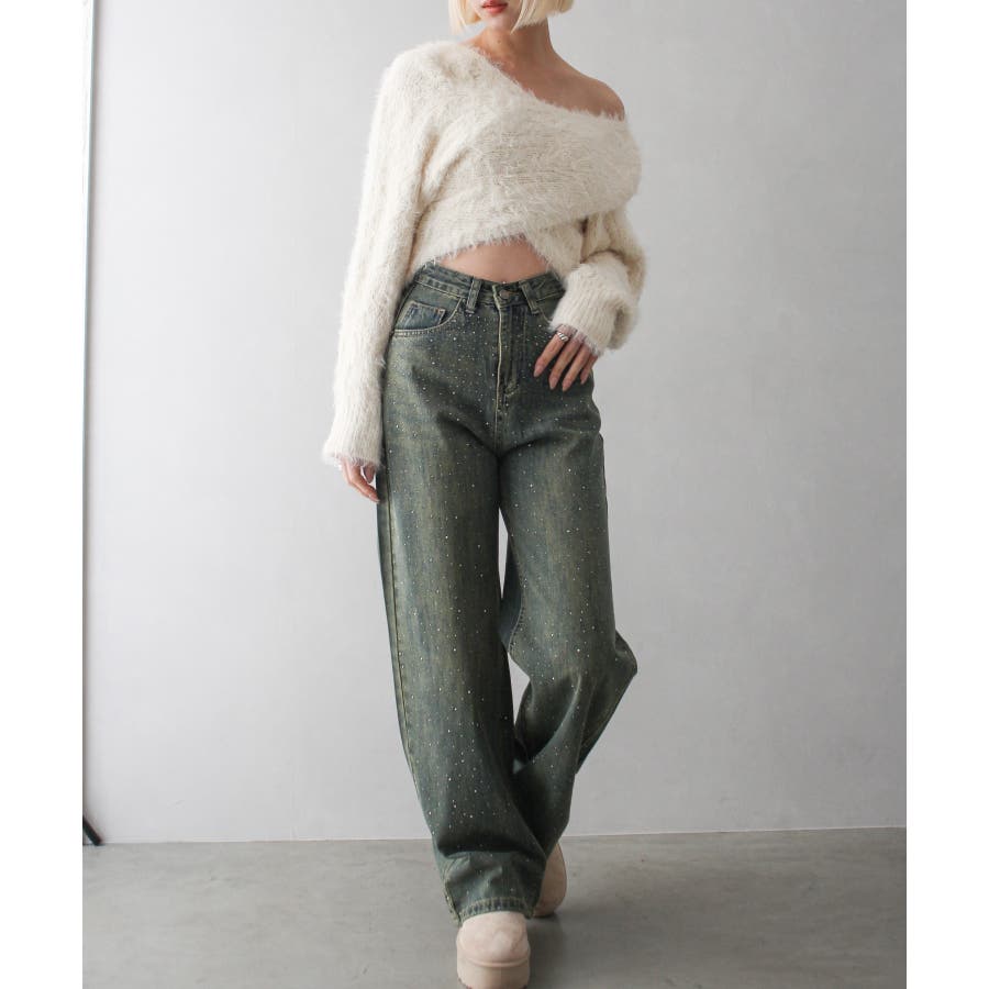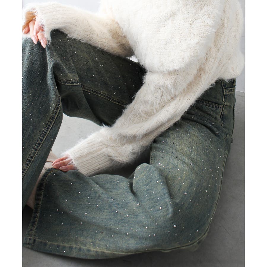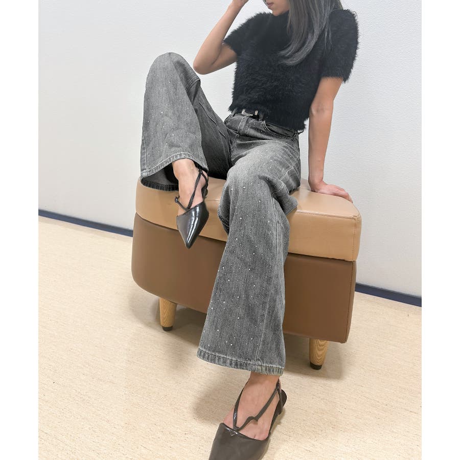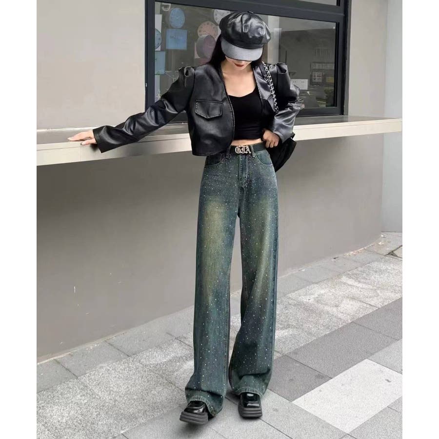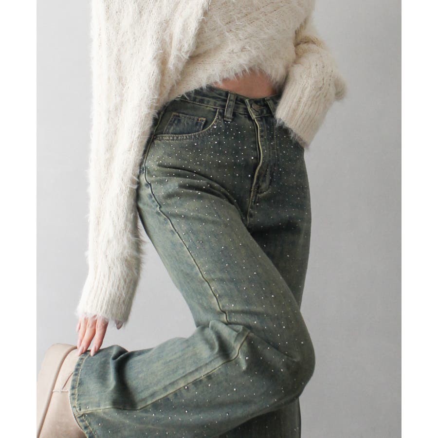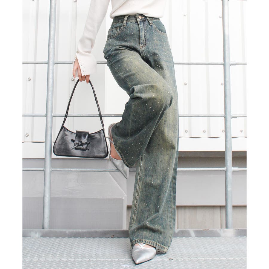 デニムスタッズストレートパンツ