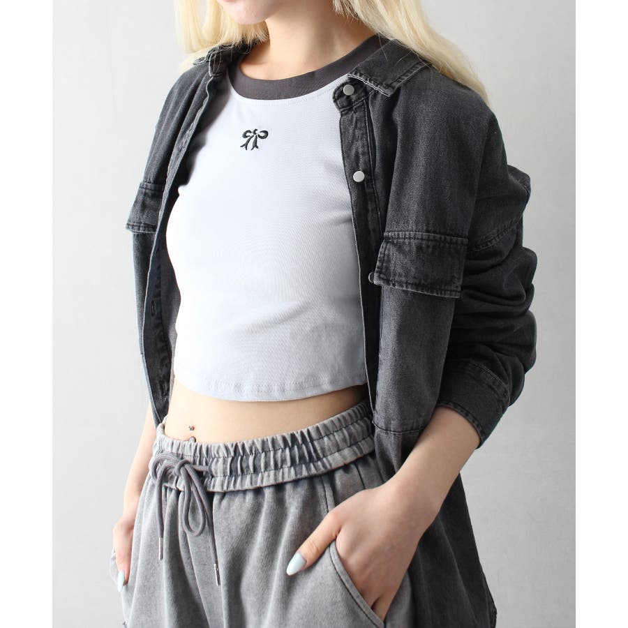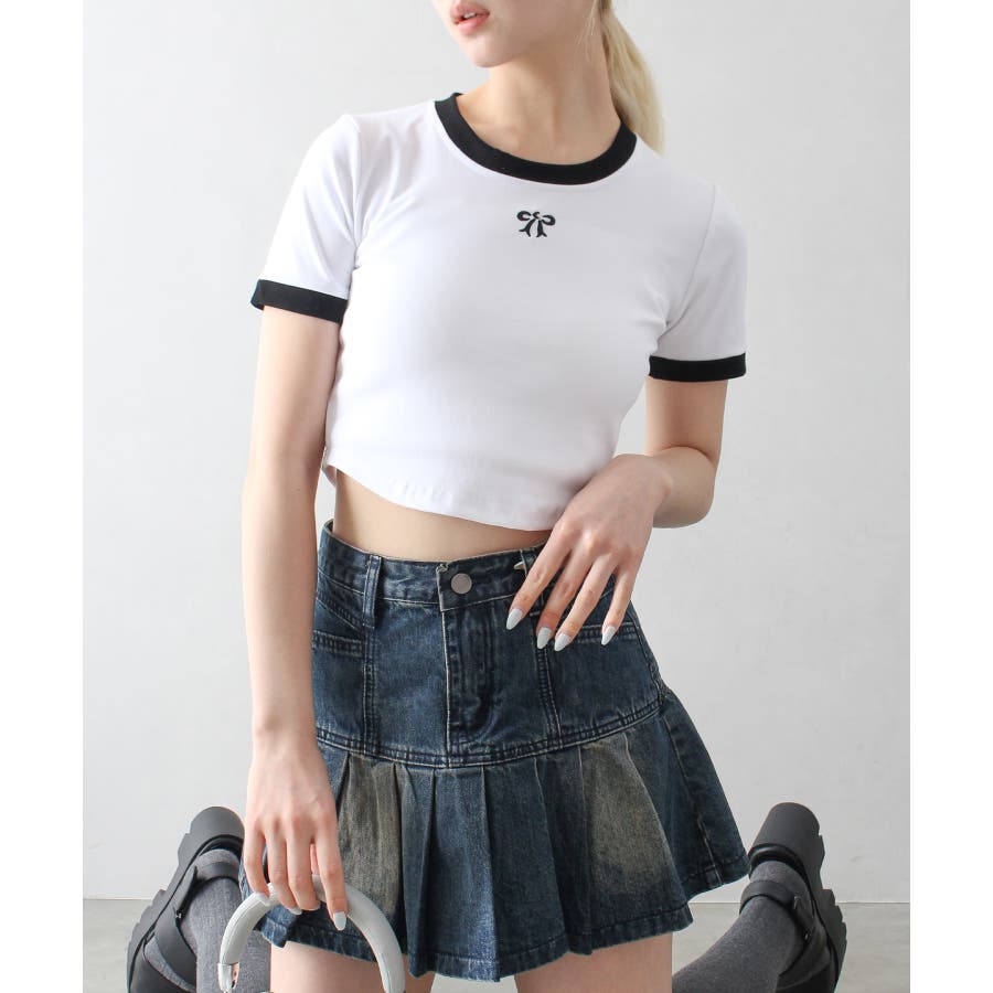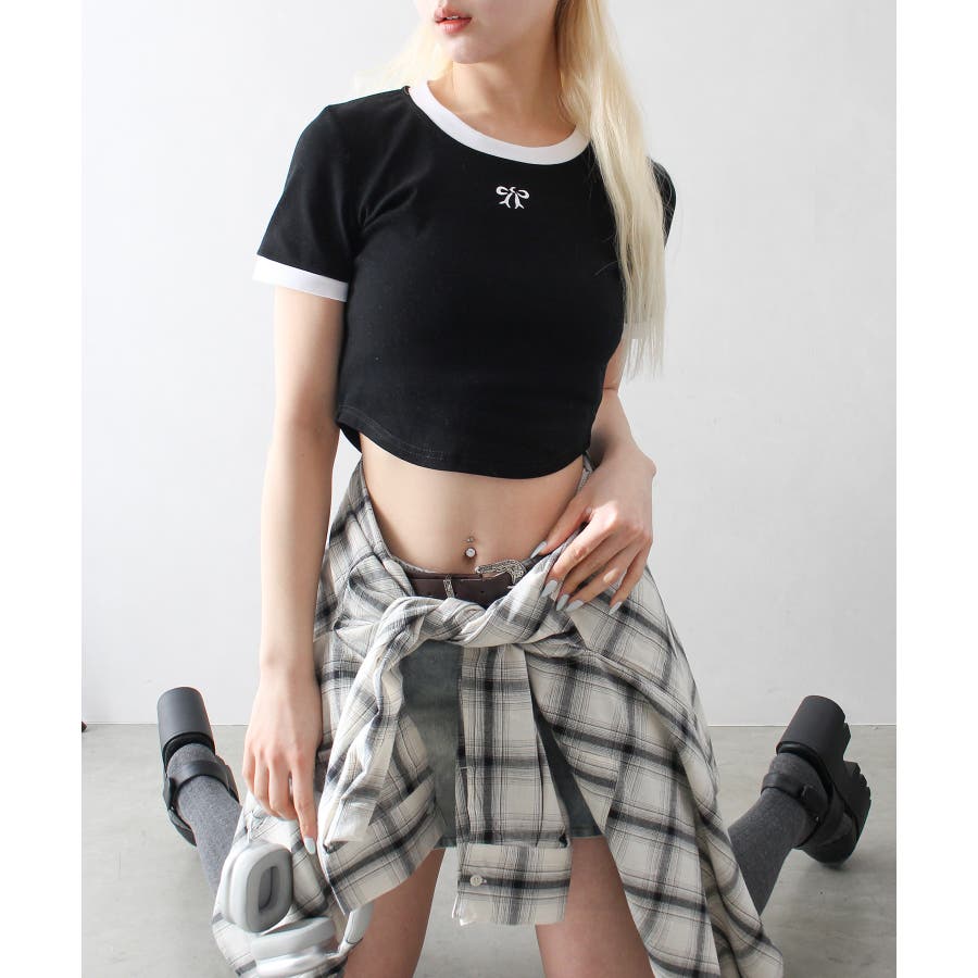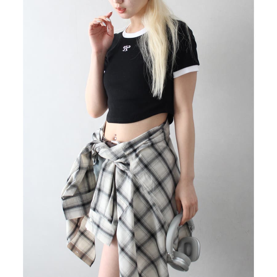 ラウンドヘムで、ウエストサイドの肌見せなど