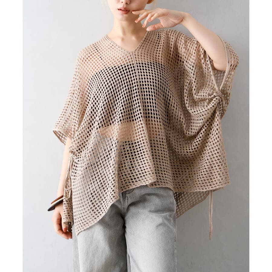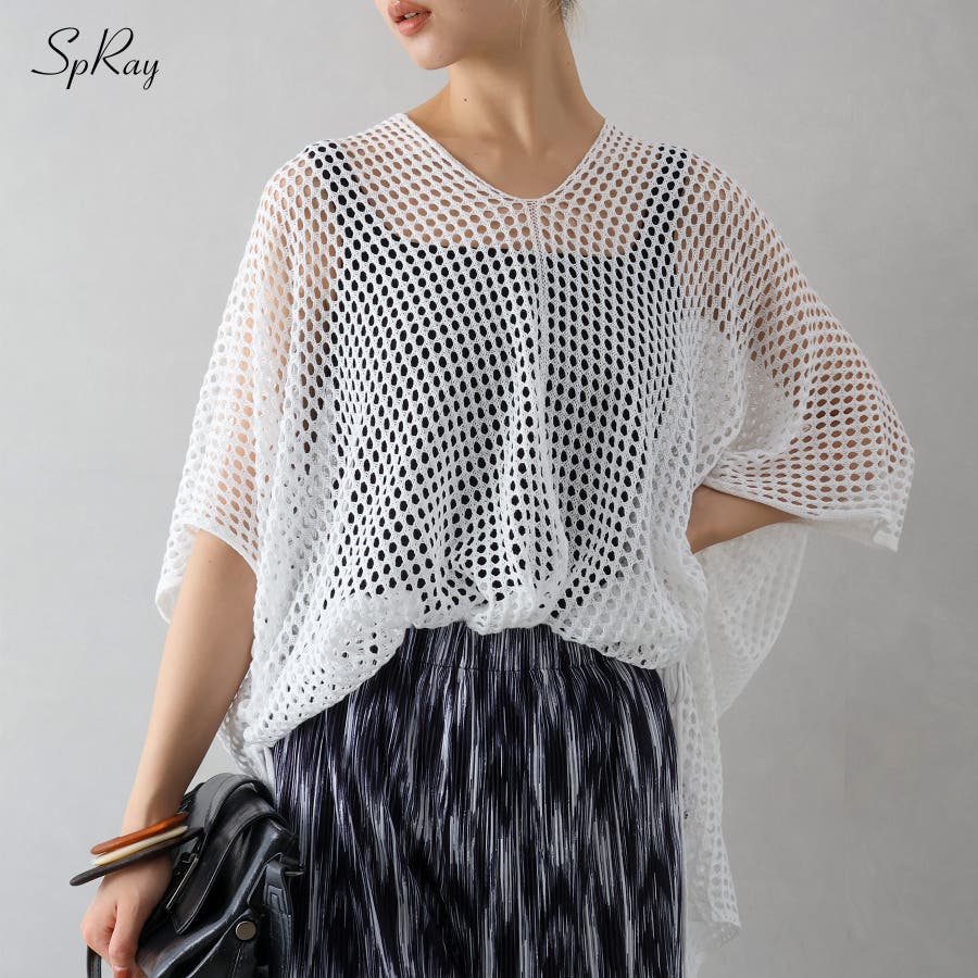 【SpRay すかしシャーリングニットトップス】