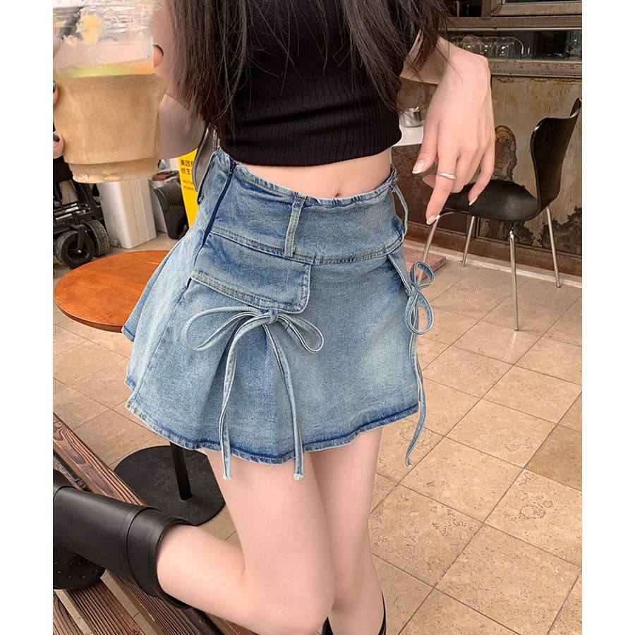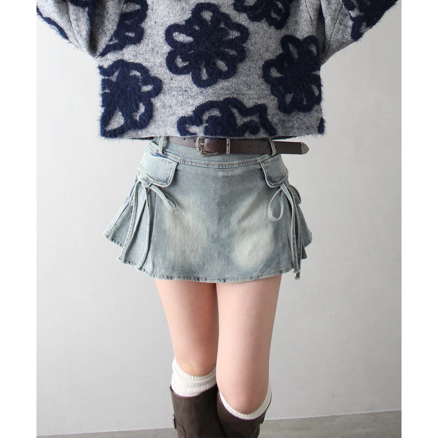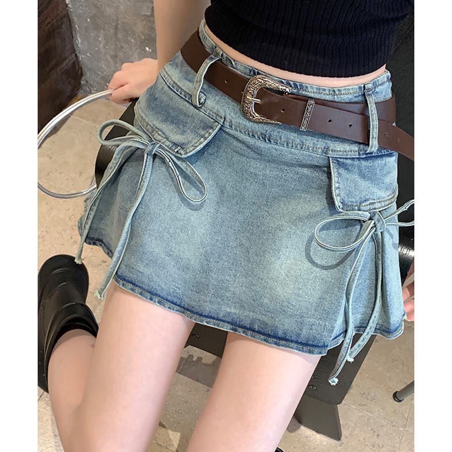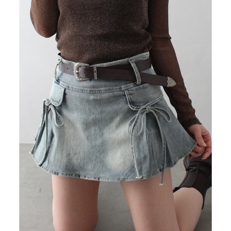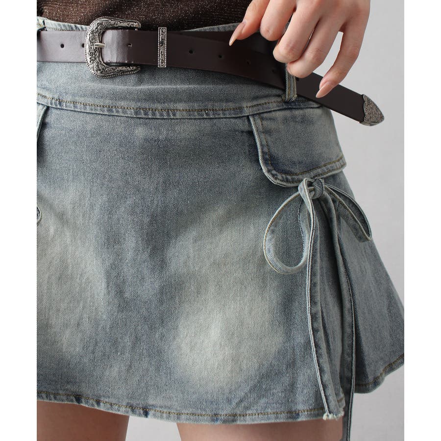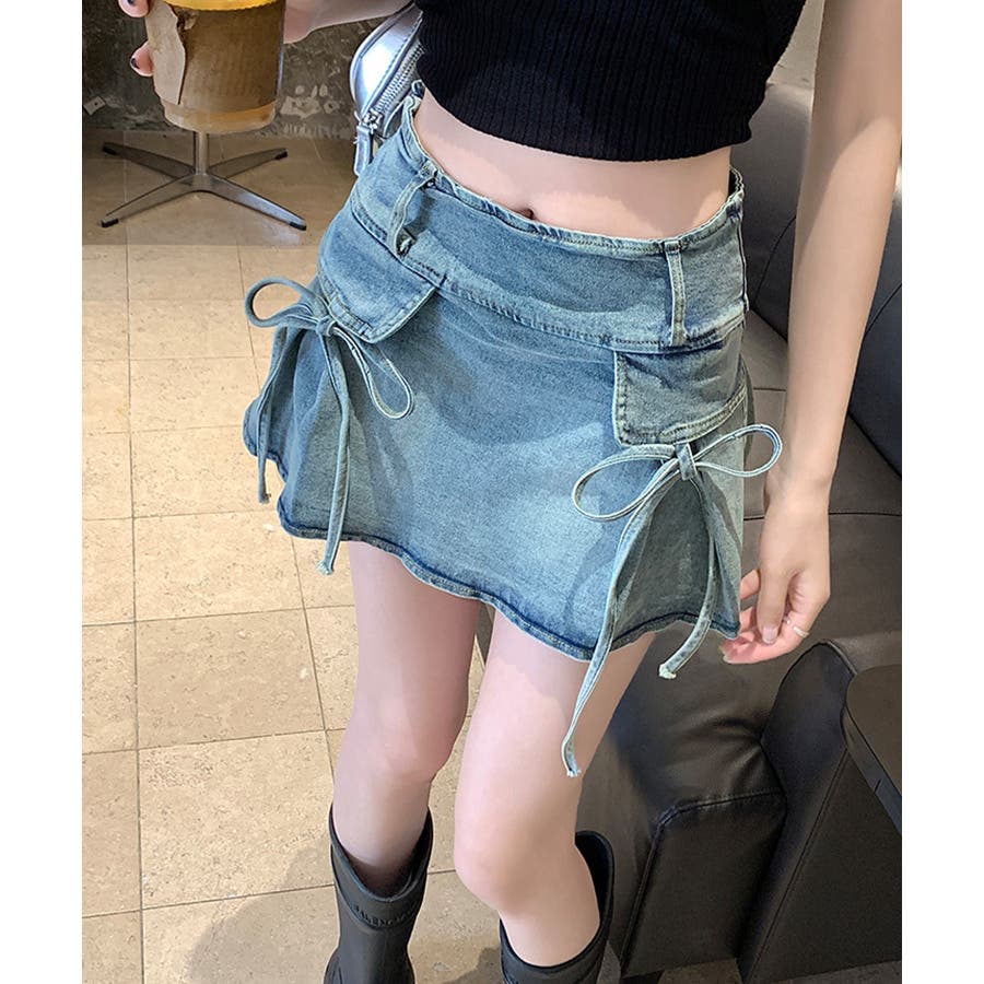 リボン付きデニムミニスカート