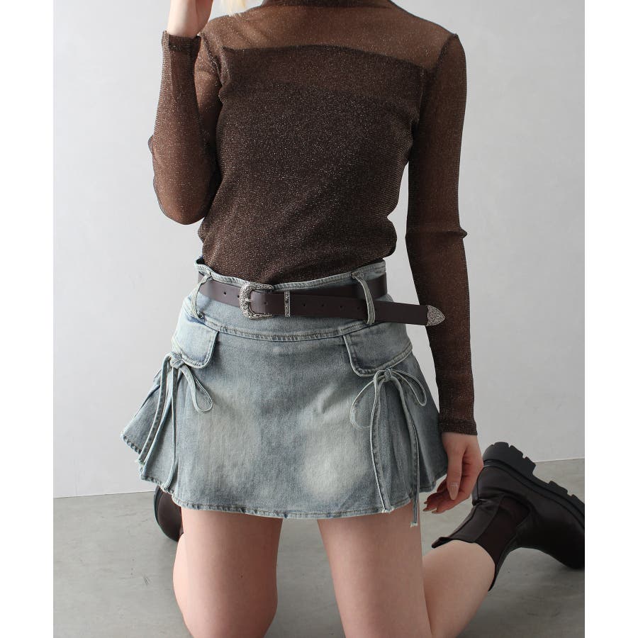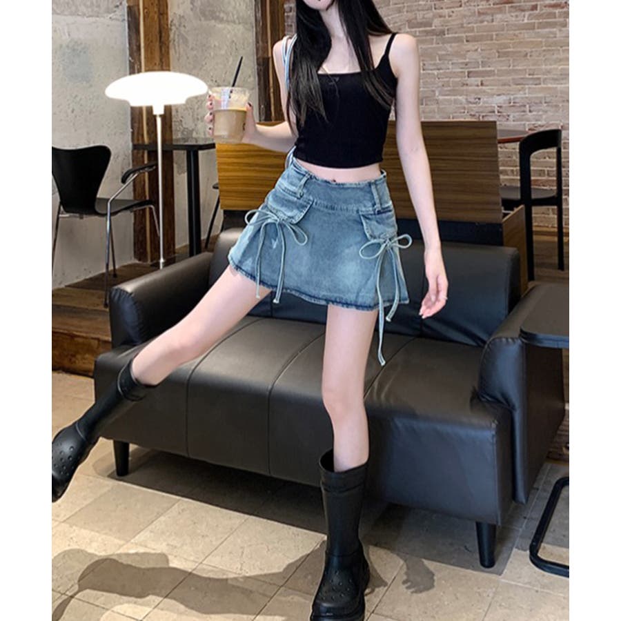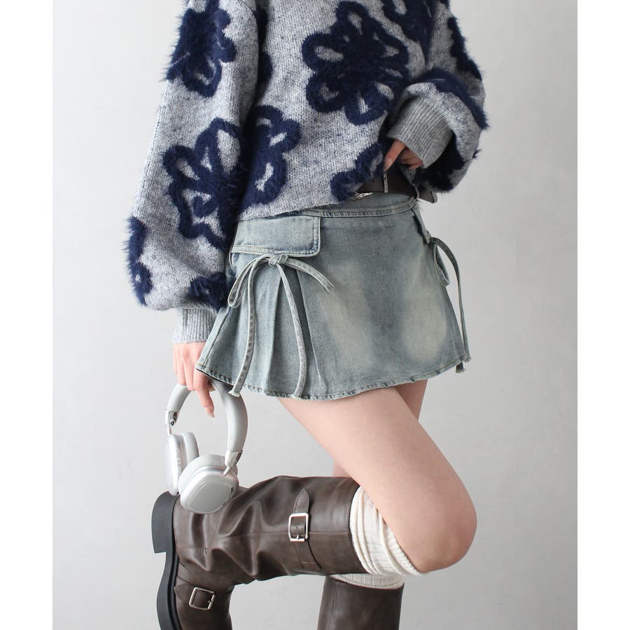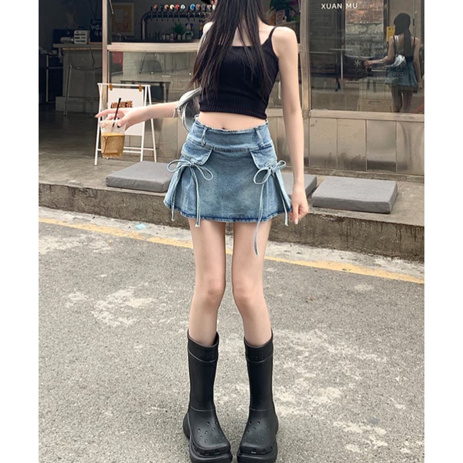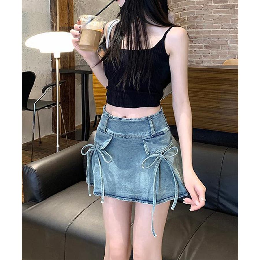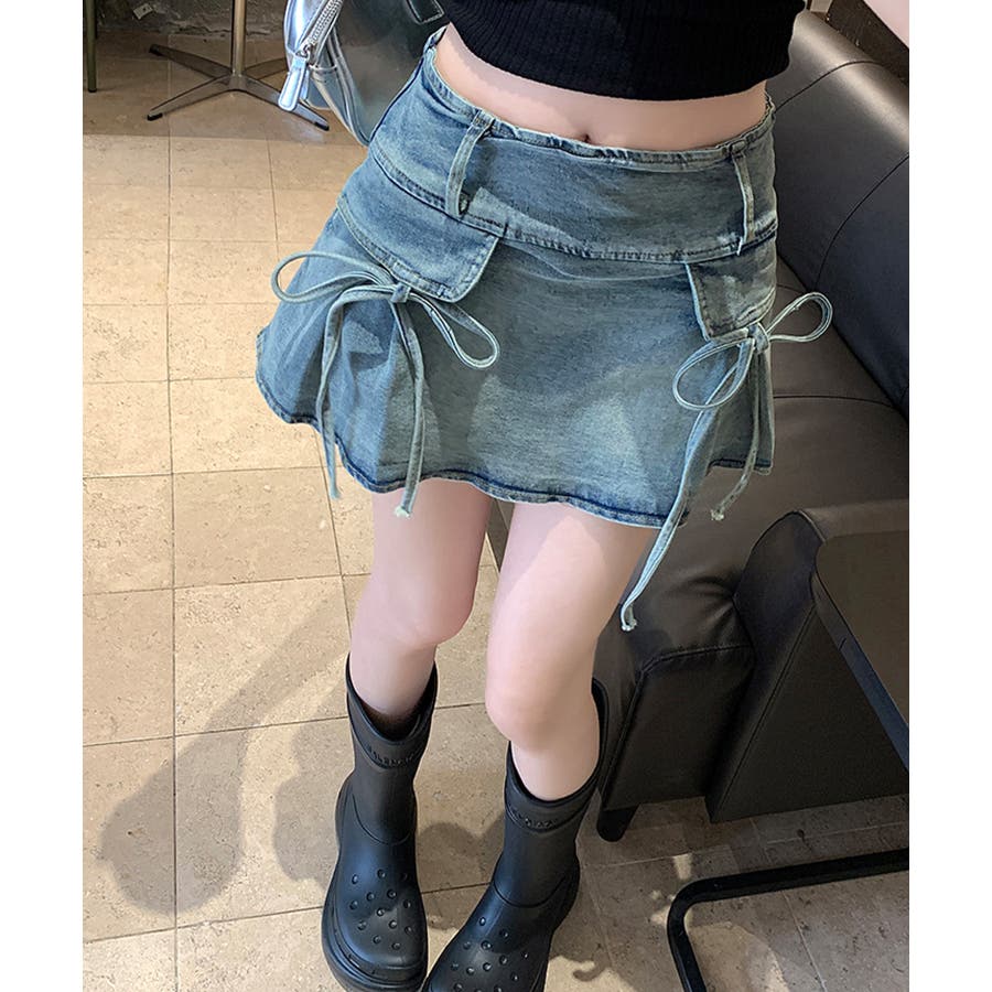 リボン付きデニムミニスカート