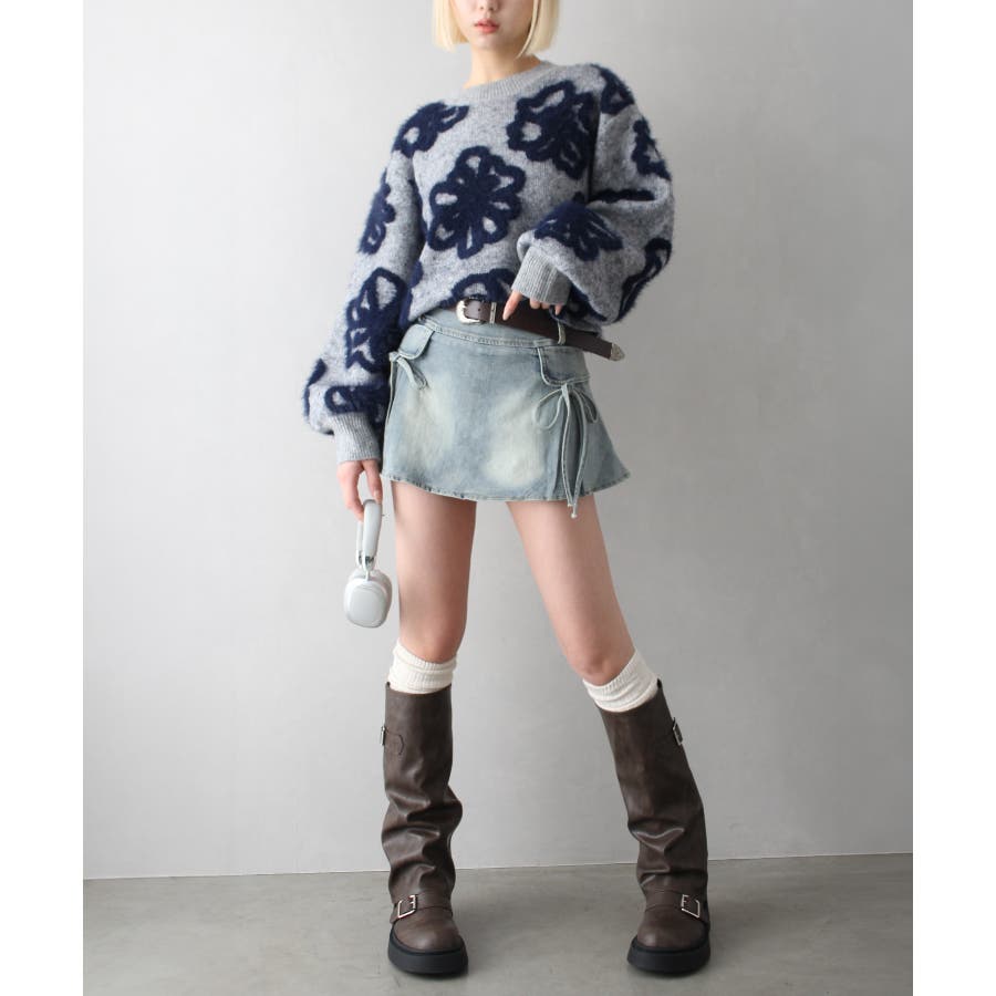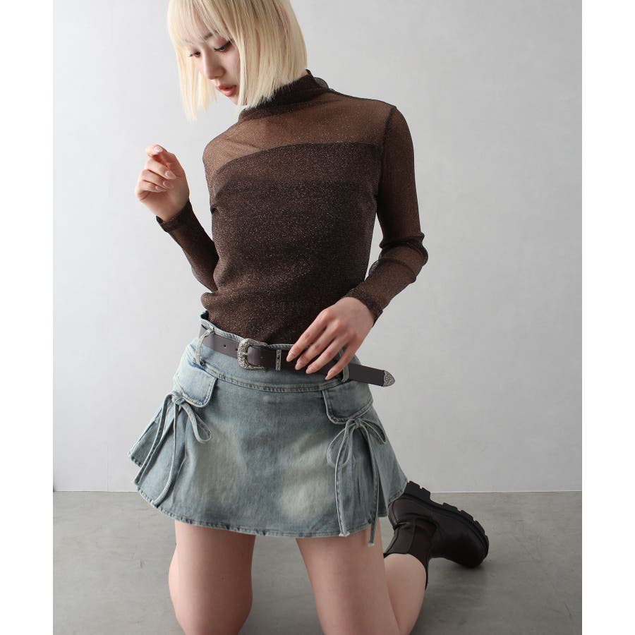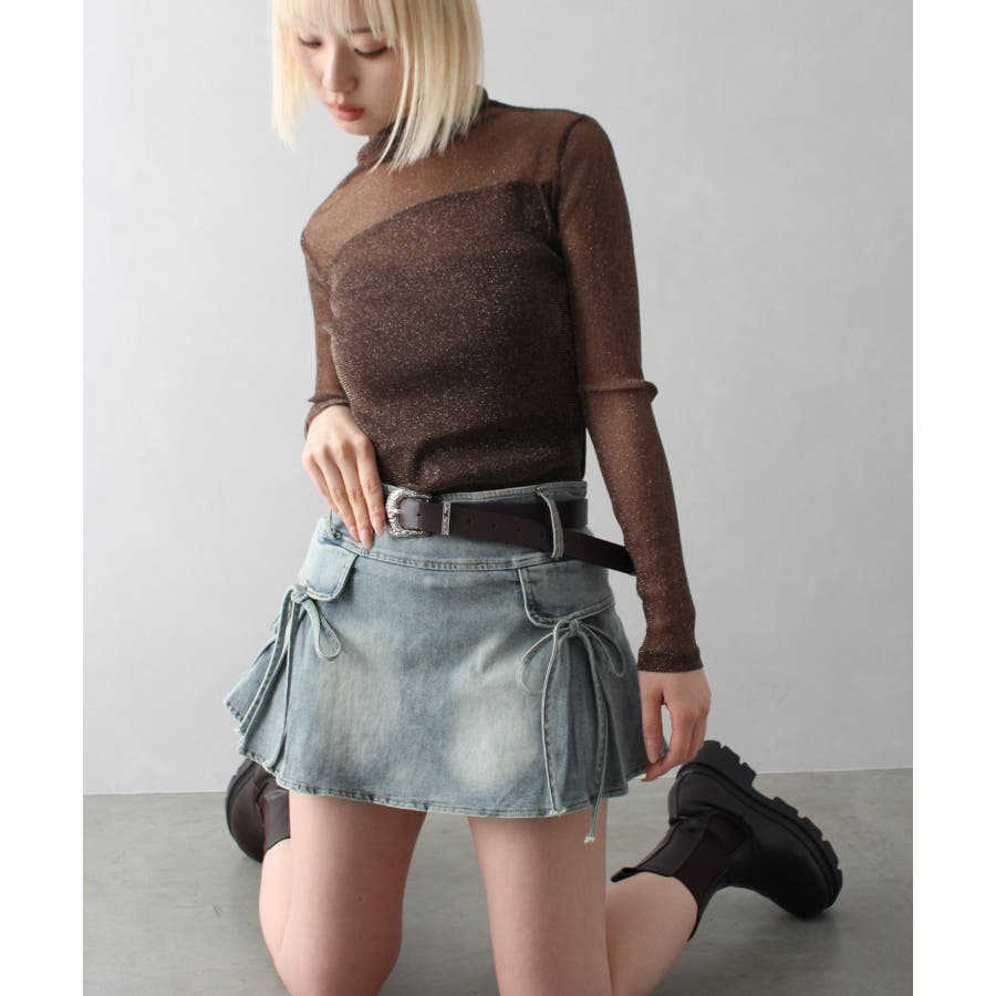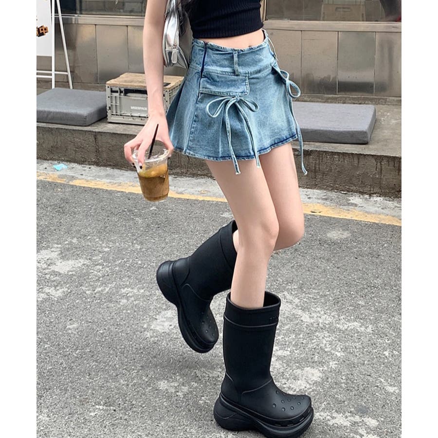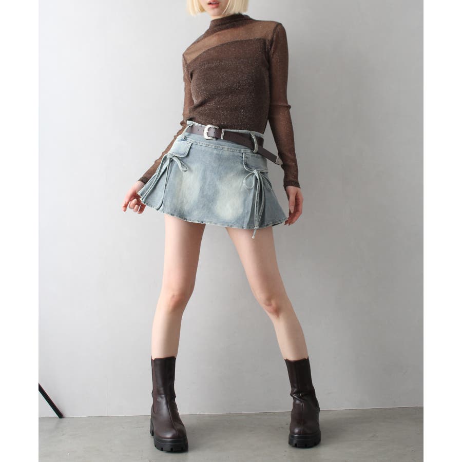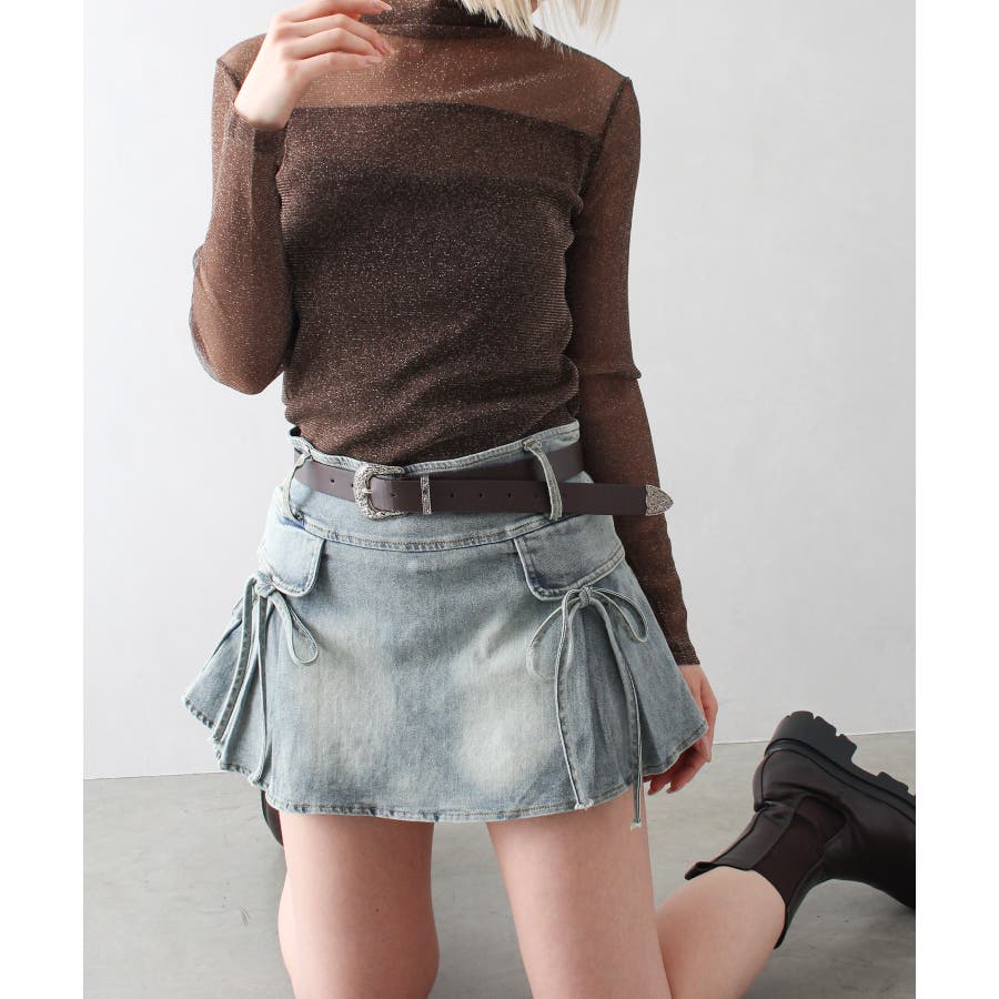 リボン付きデニムミニスカート