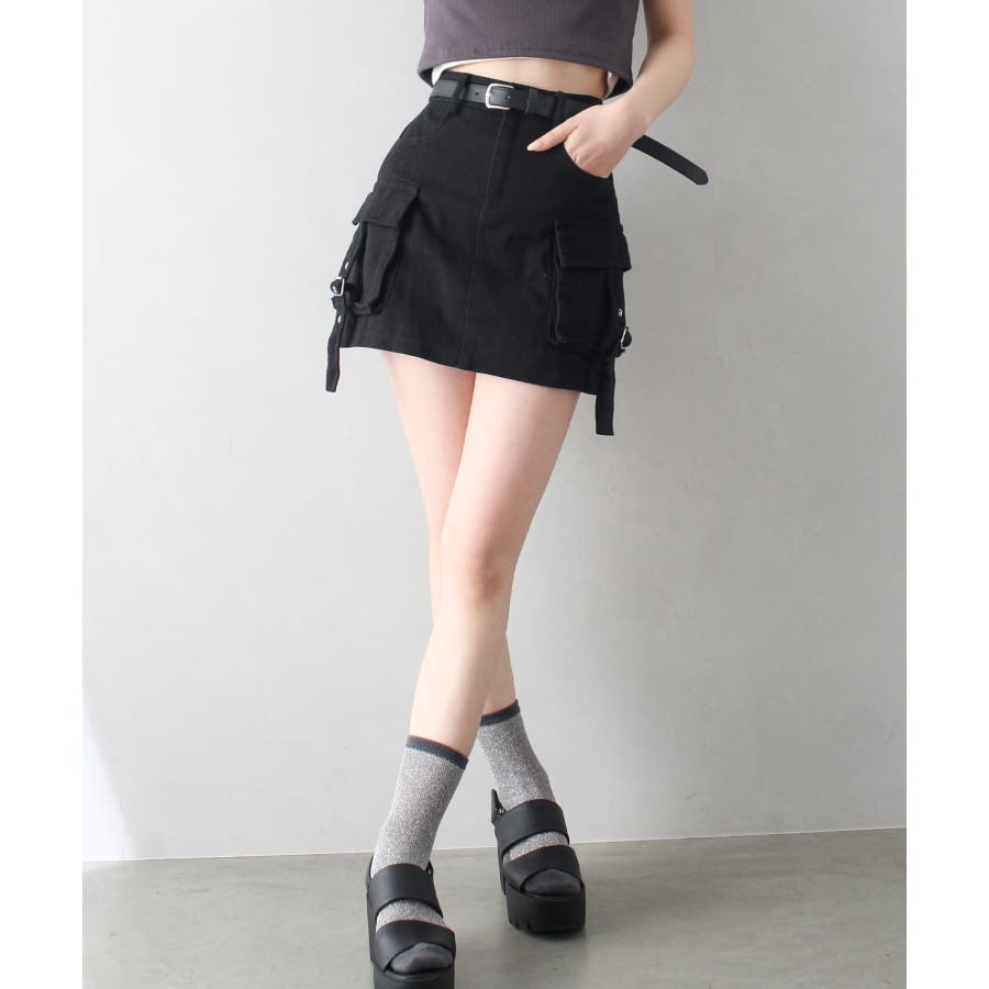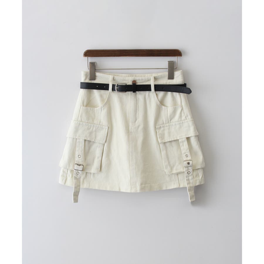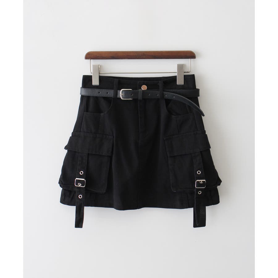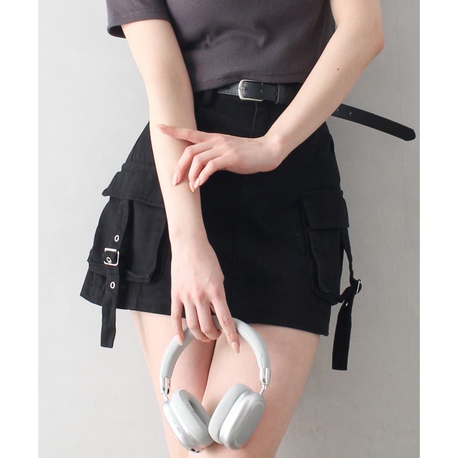 ベルト付きカーゴミニスカート。