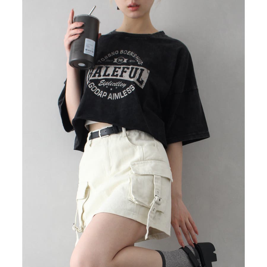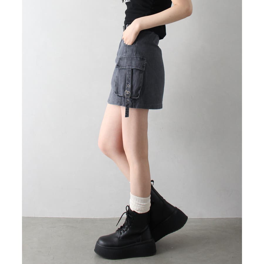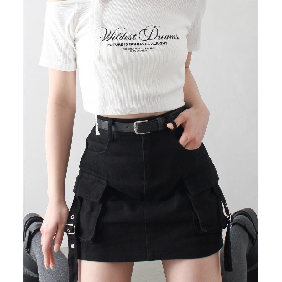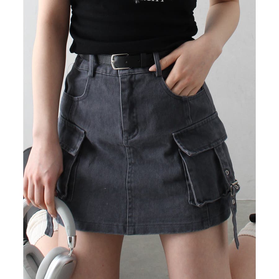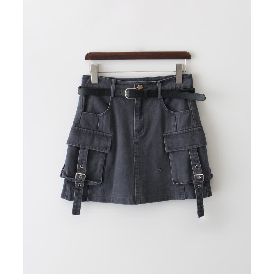 ベルト付きカーゴミニスカート。