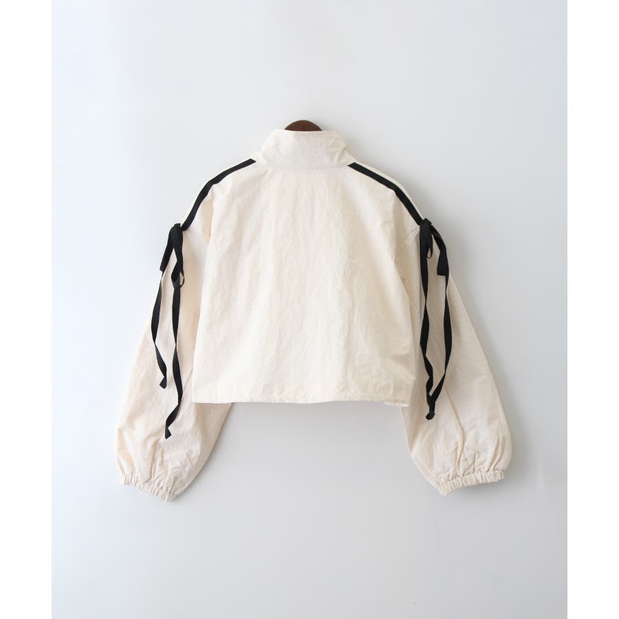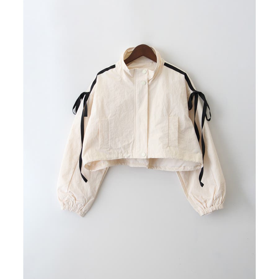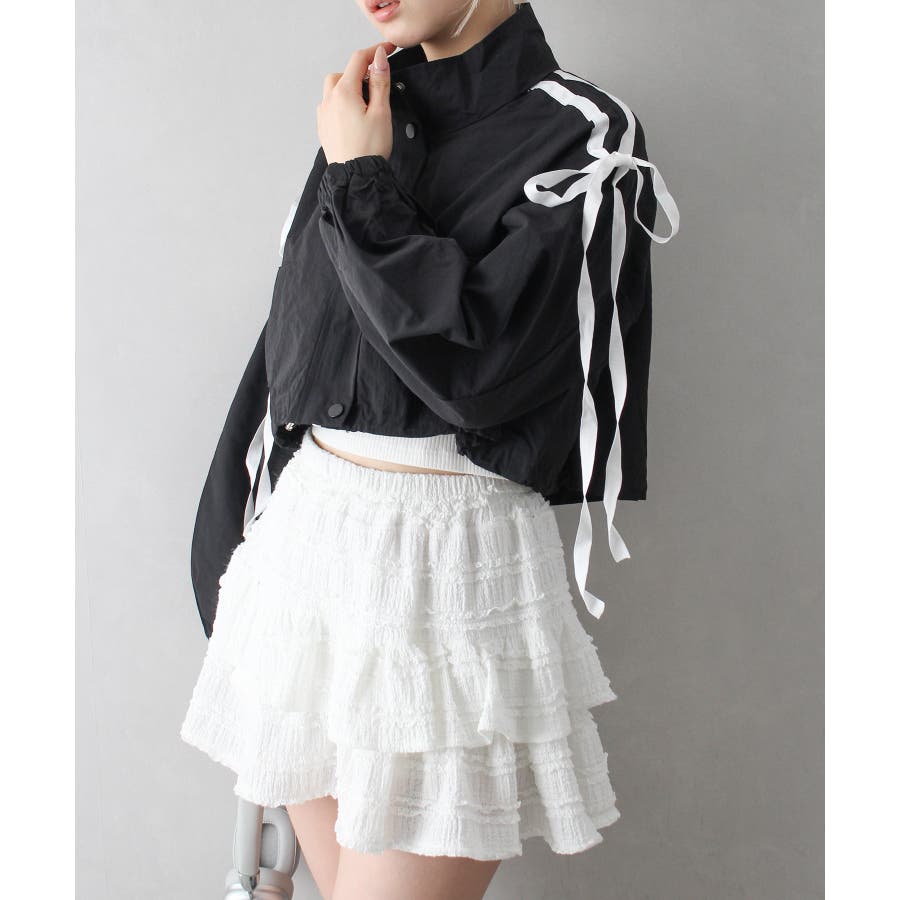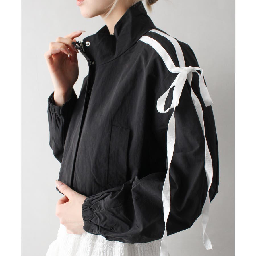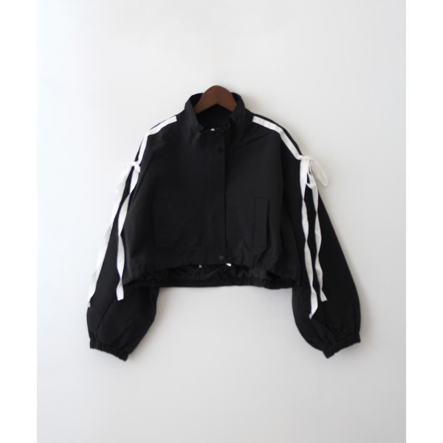丸みのあるシルエットで抜け感を演出しつつ、肩から落ちるリボンがフェミニンなアクセントに。
