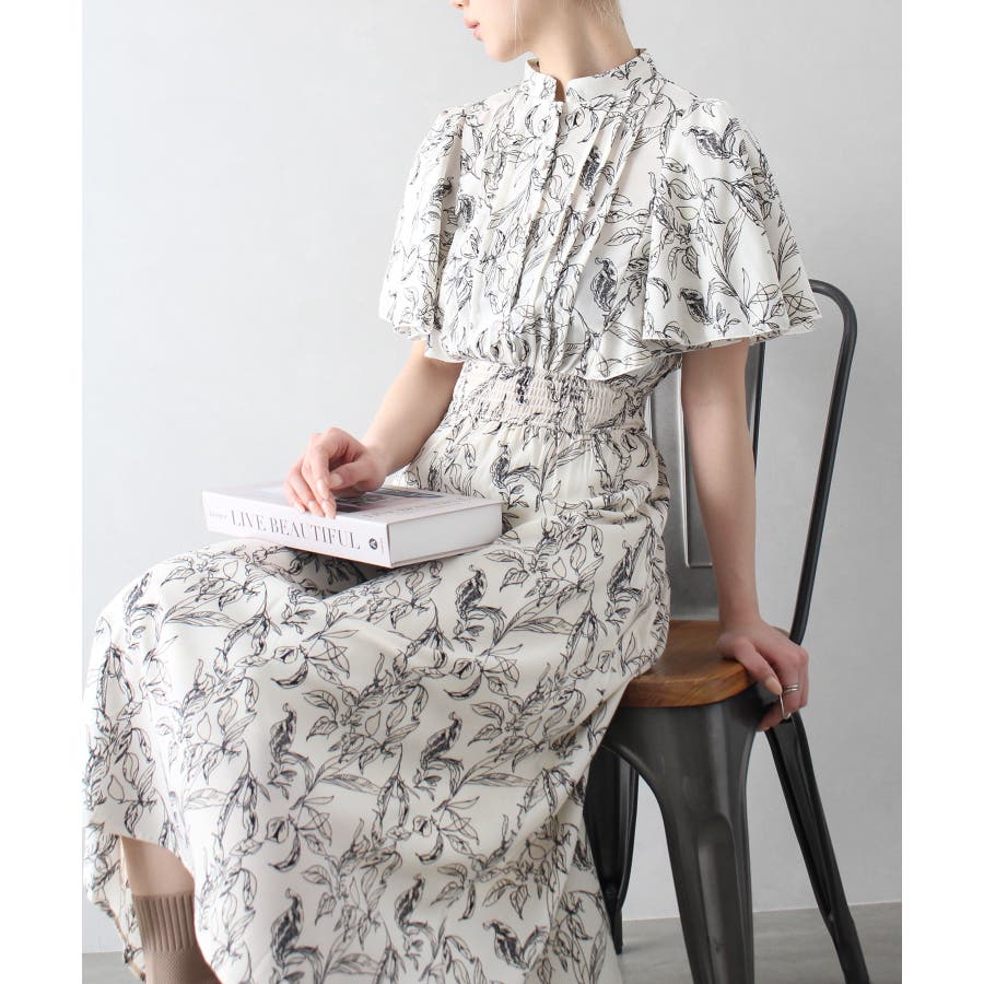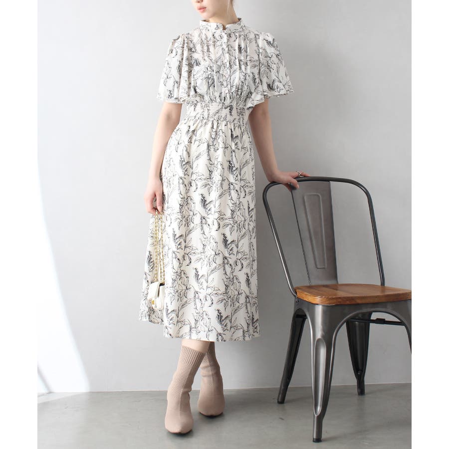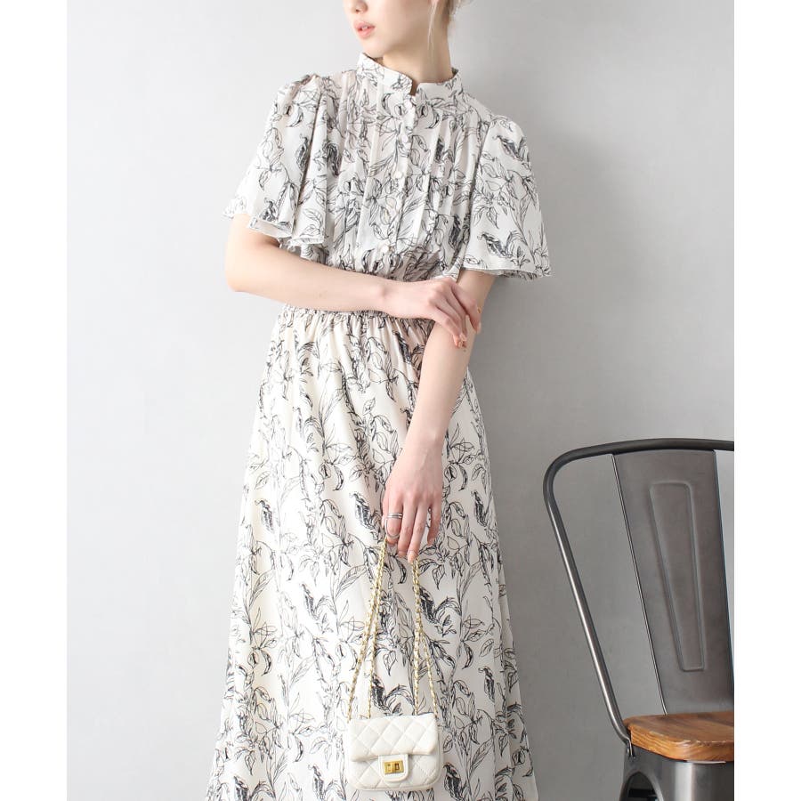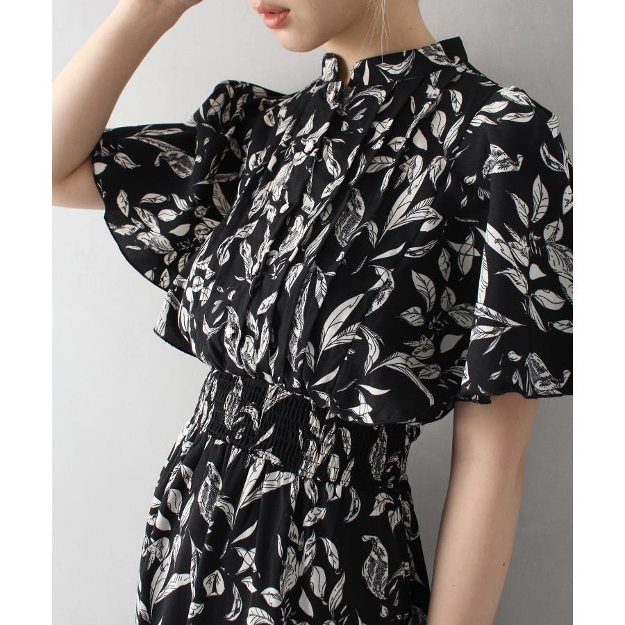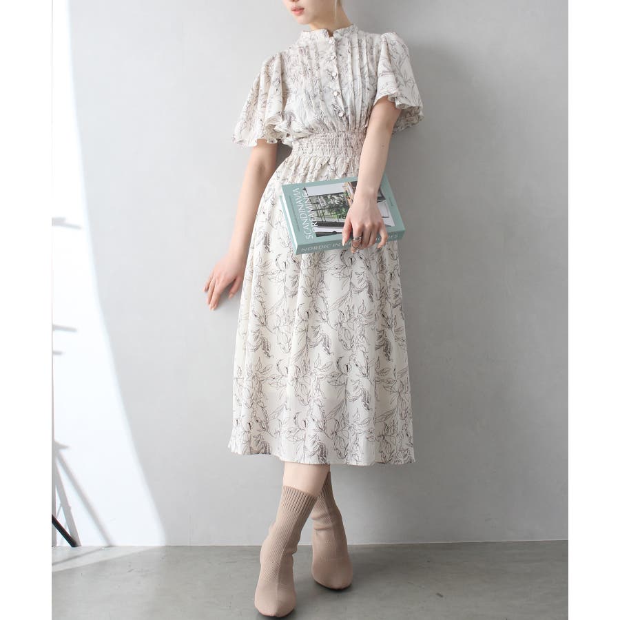 花柄ピンタックフレアスリーブワンピース