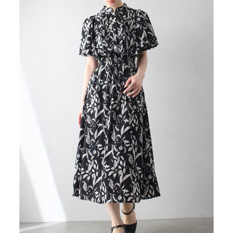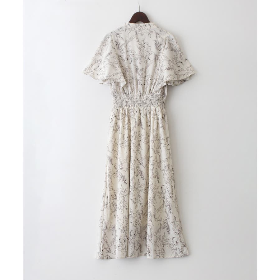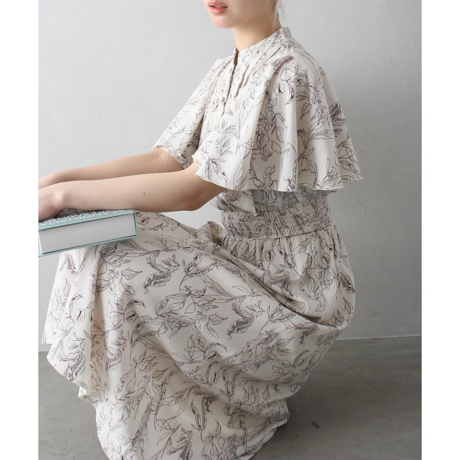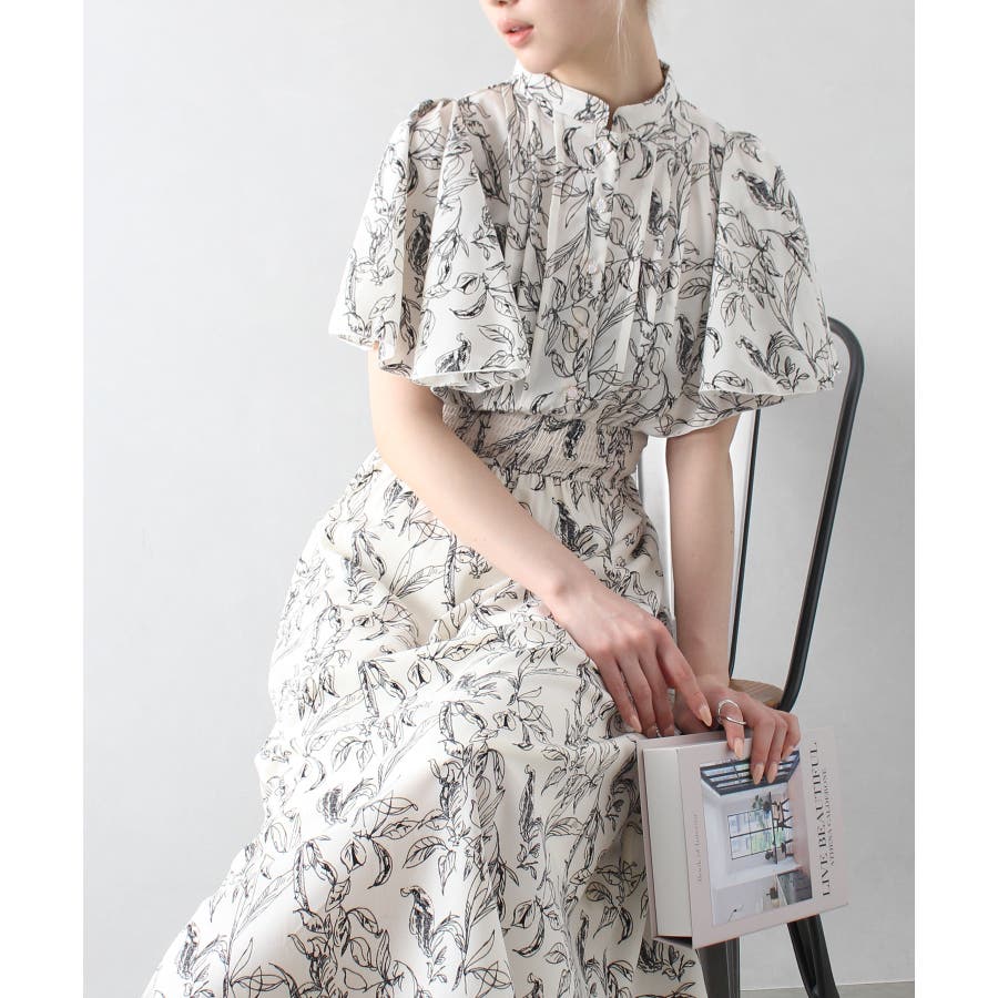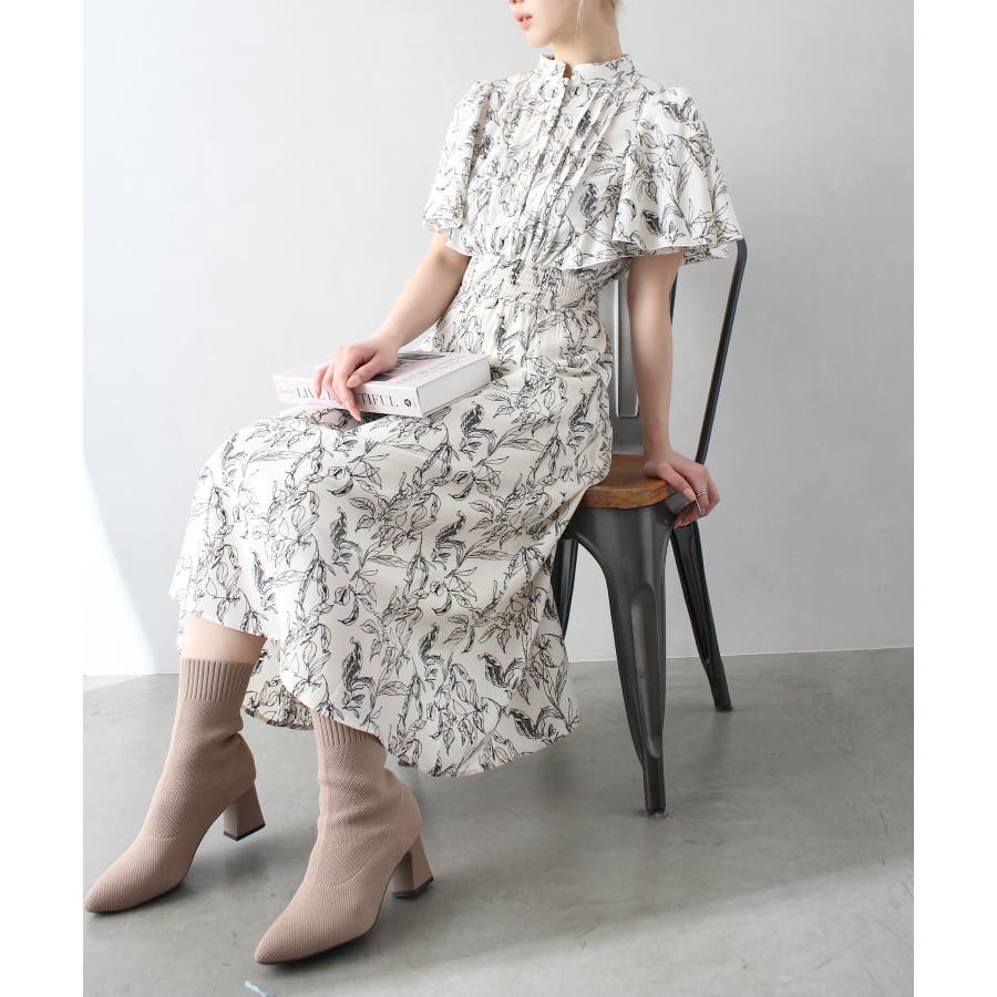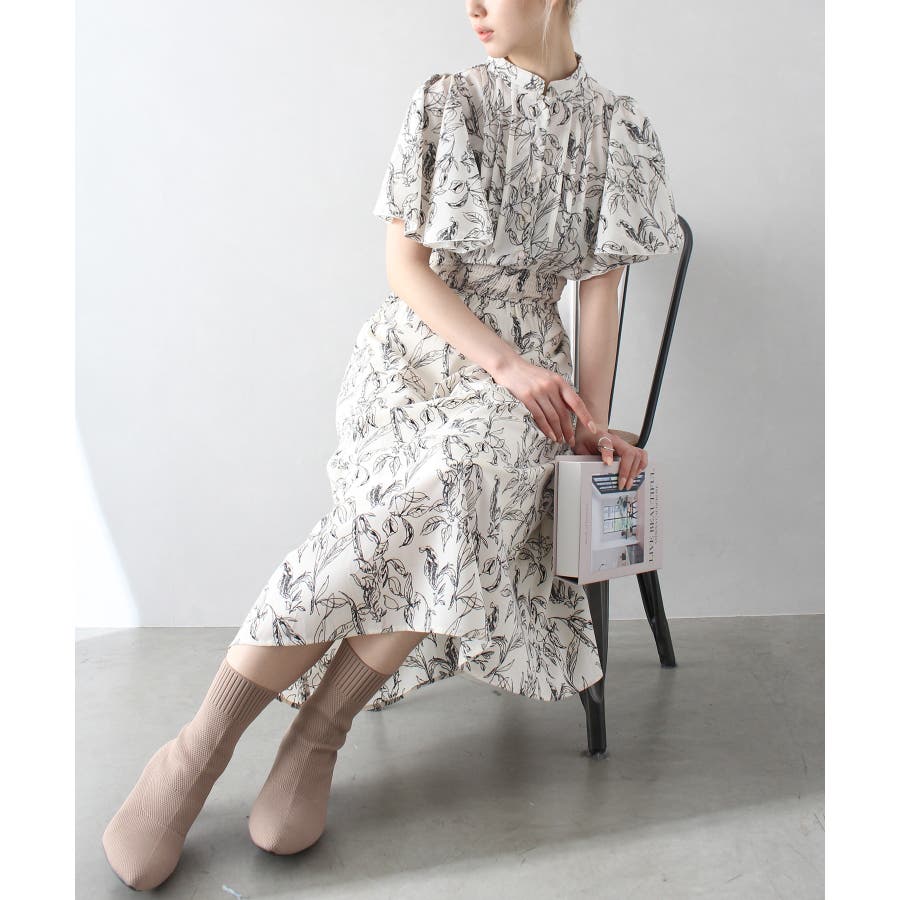 花柄ピンタックフレアスリーブワンピース