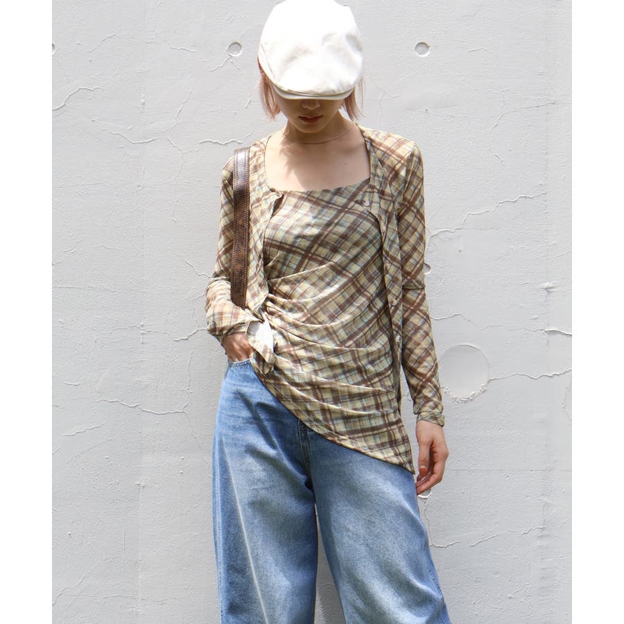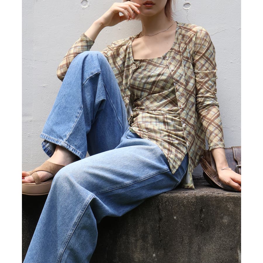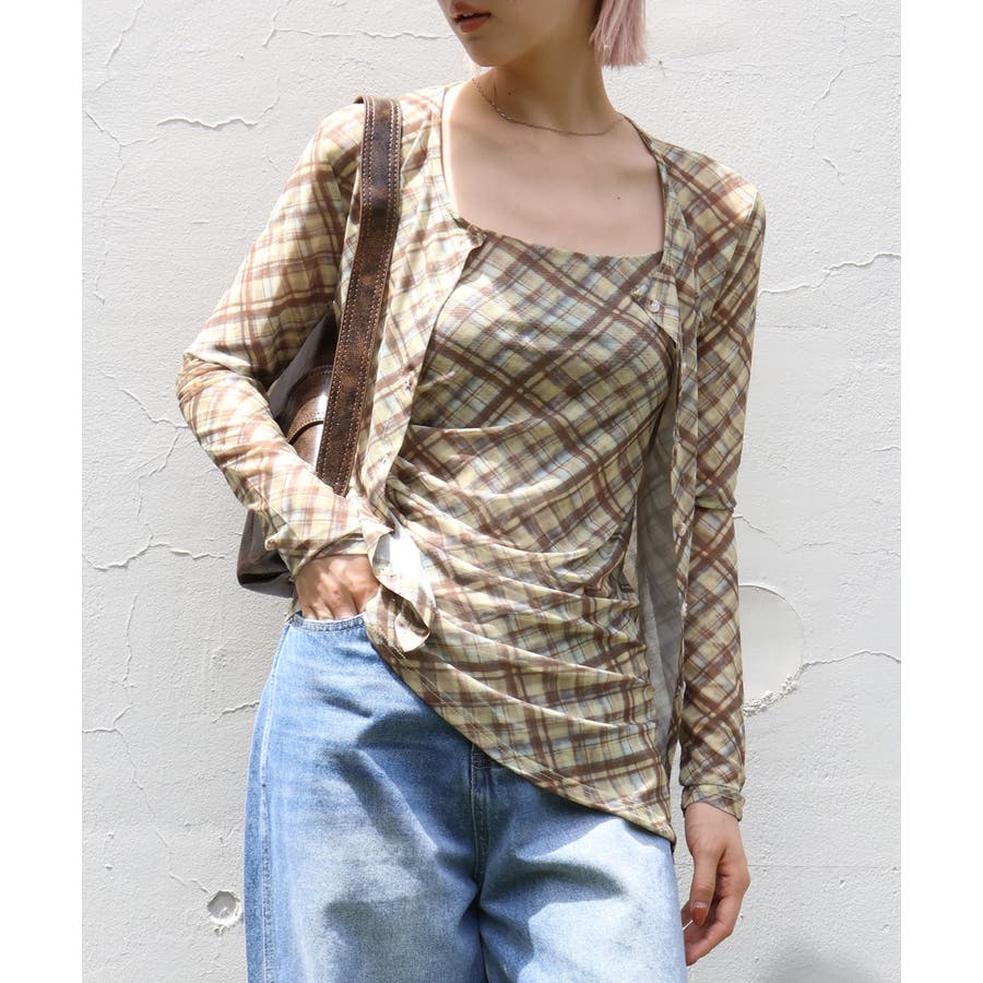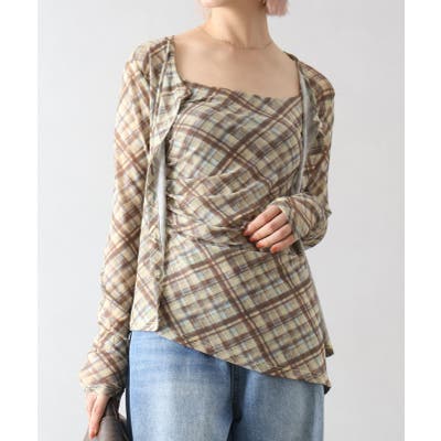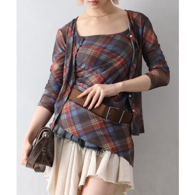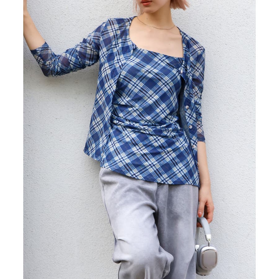 【SpRay 【2点セット】キャミソールセットシアーチェックカーディガン】