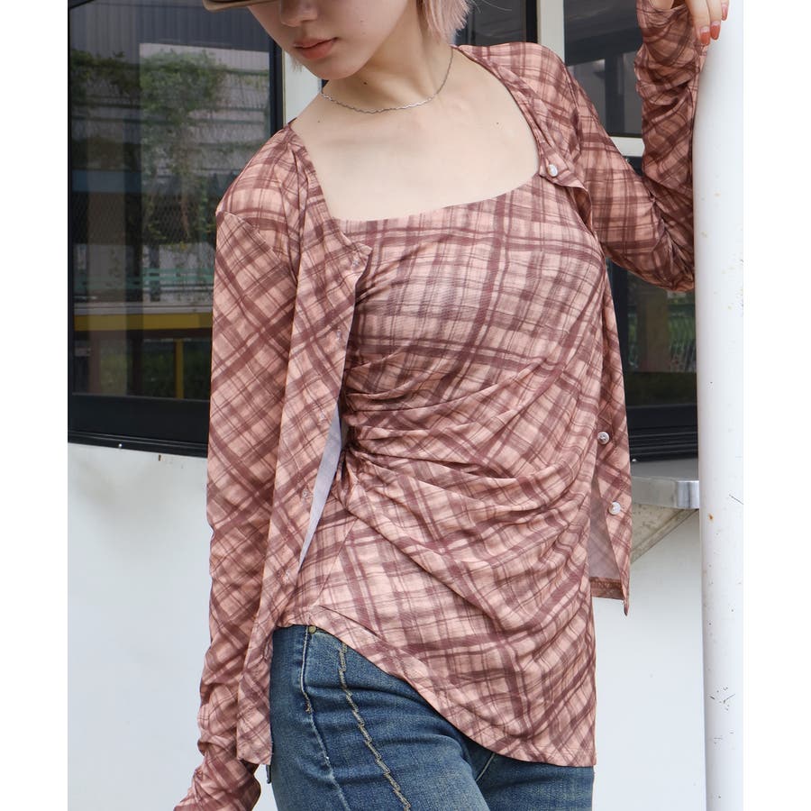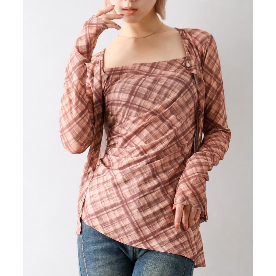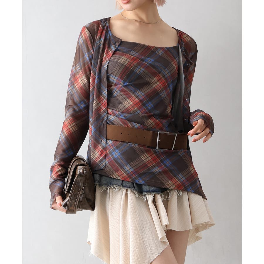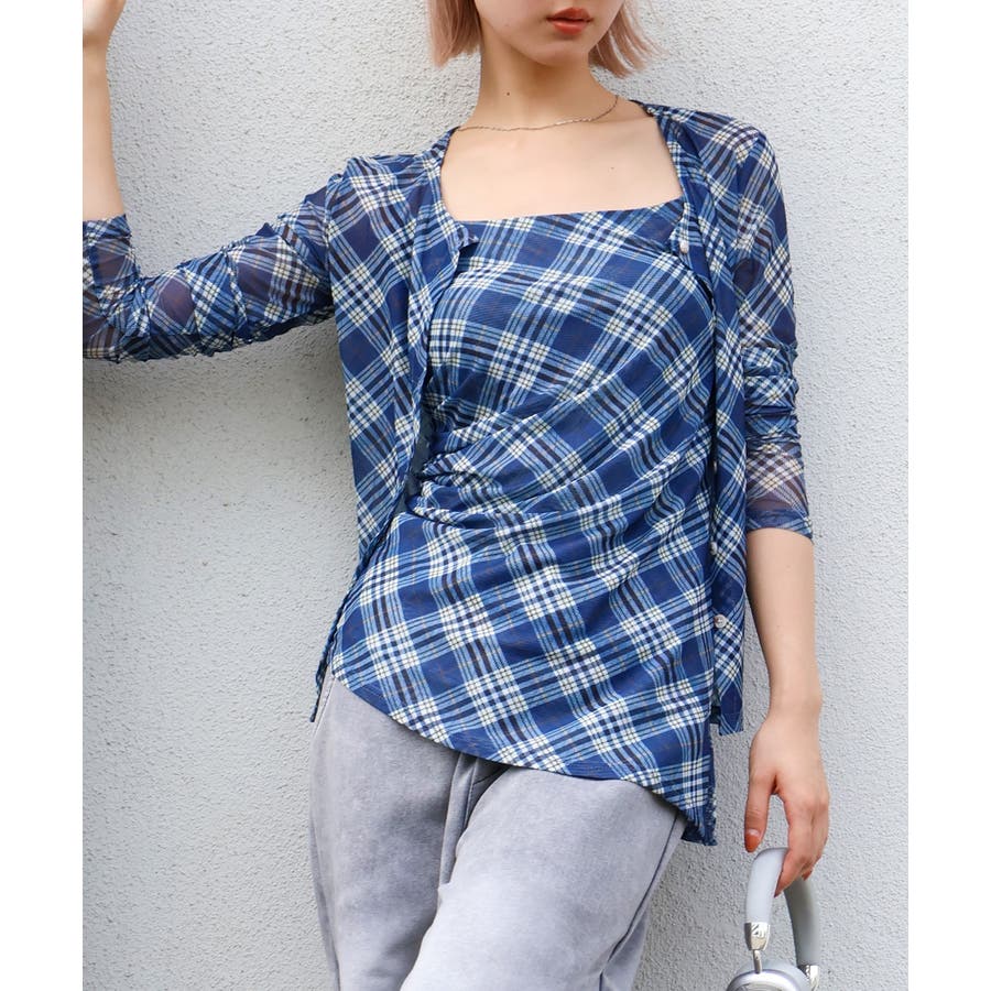 【SpRay 【2点セット】キャミソールセットシアーチェックカーディガン】