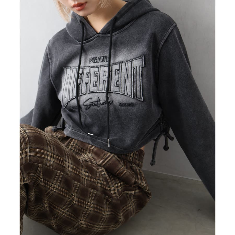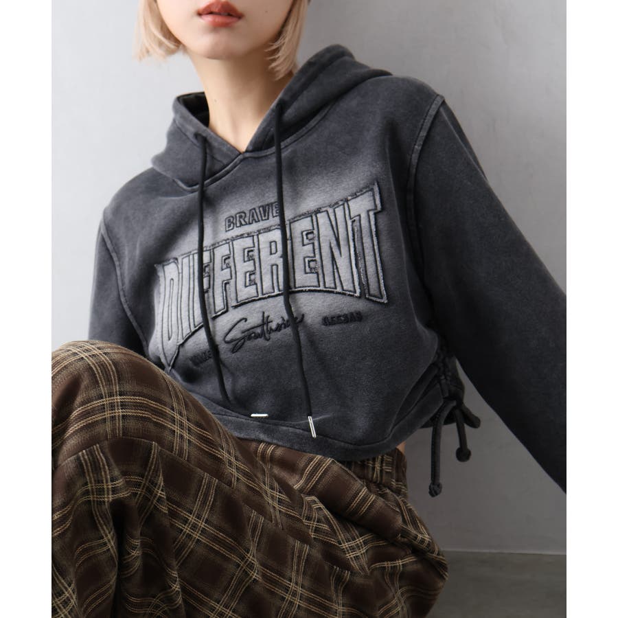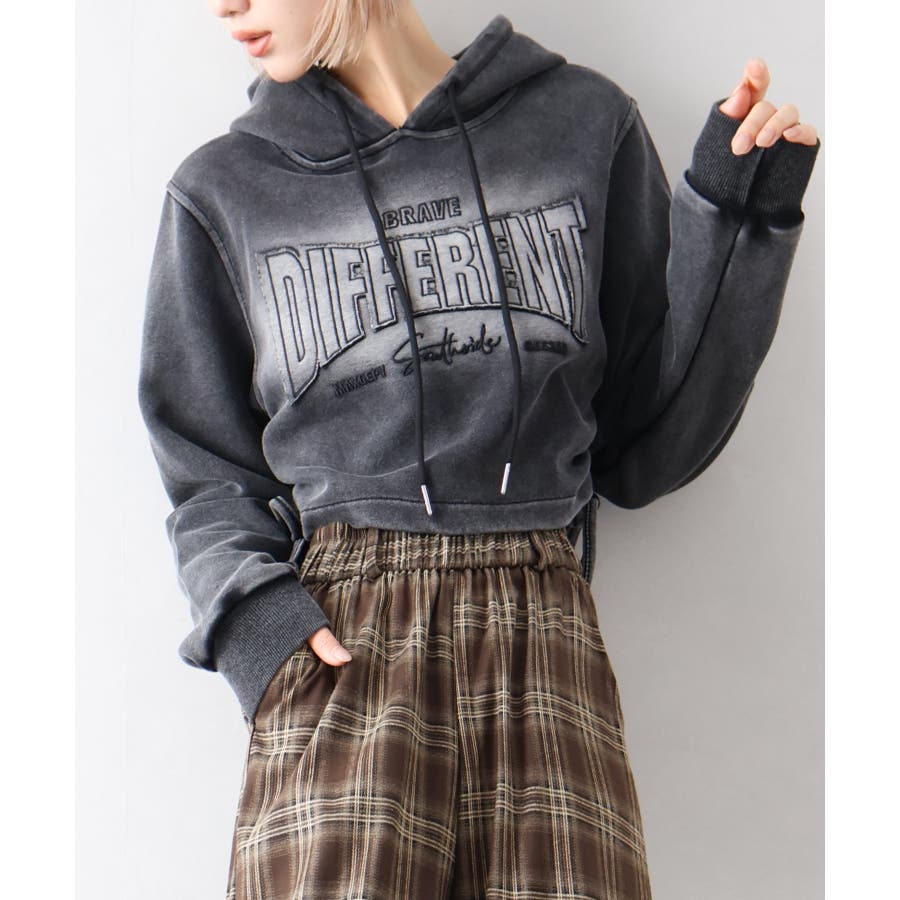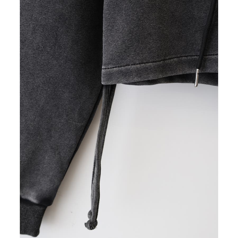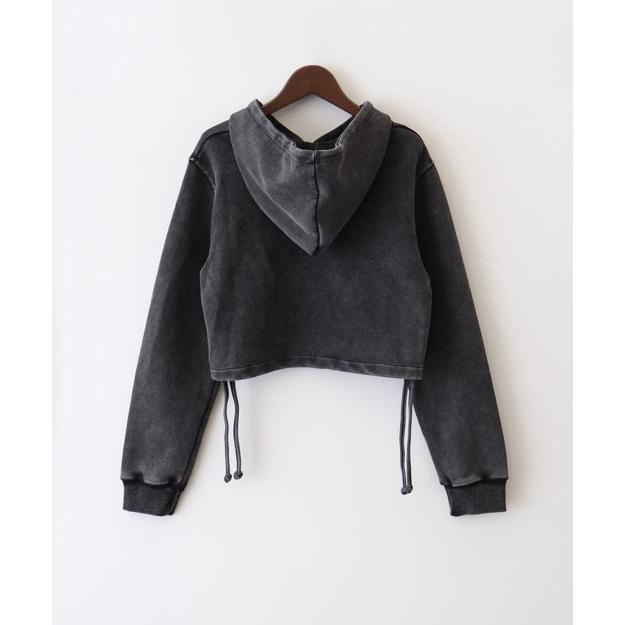 カジュアルなパーカーも、短め丈と立体的なフードがすっきりとした印象に導きます。ワイドパンツやボリュームスカートと合わせても、バランス良く決まります。