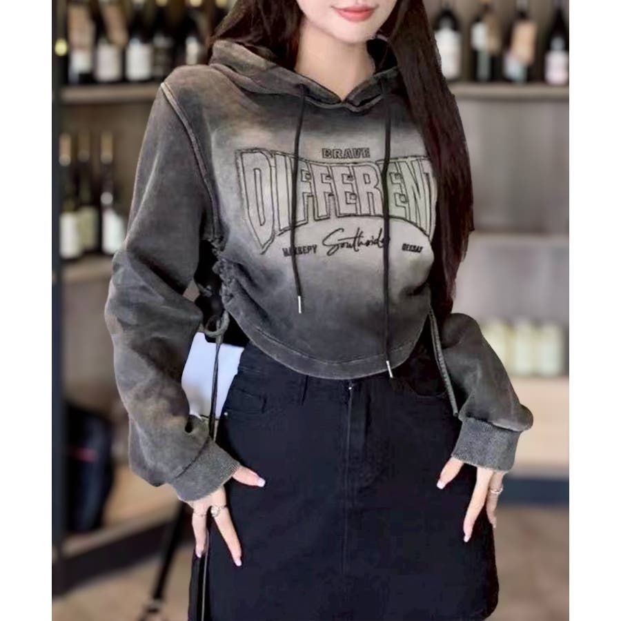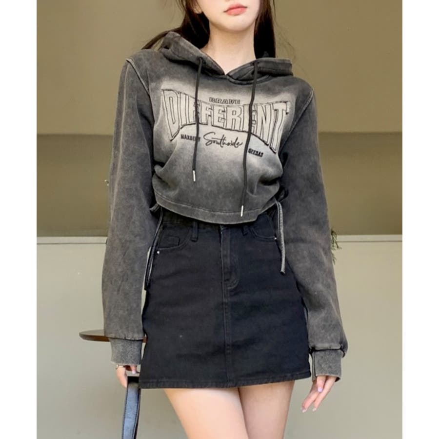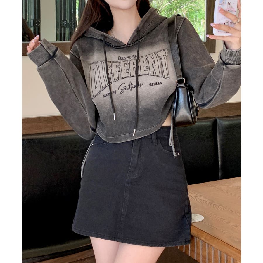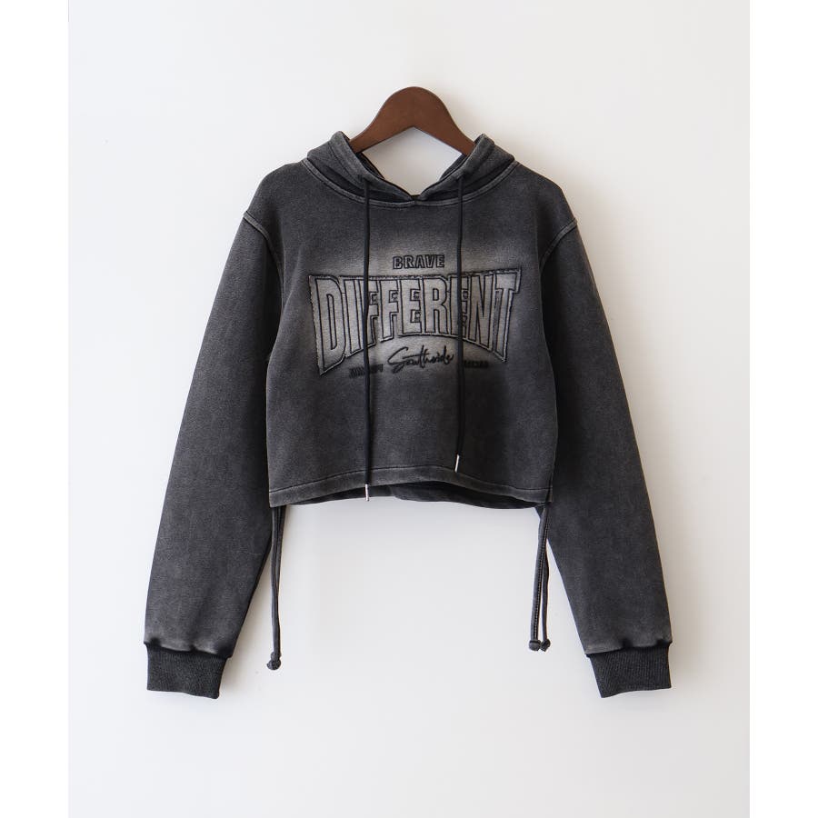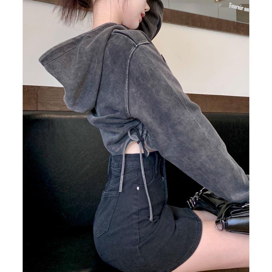 カジュアルなパーカーも、短め丈と立体的なフードがすっきりとした印象に導きます。ワイドパンツやボリュームスカートと合わせても、バランス良く決まります。