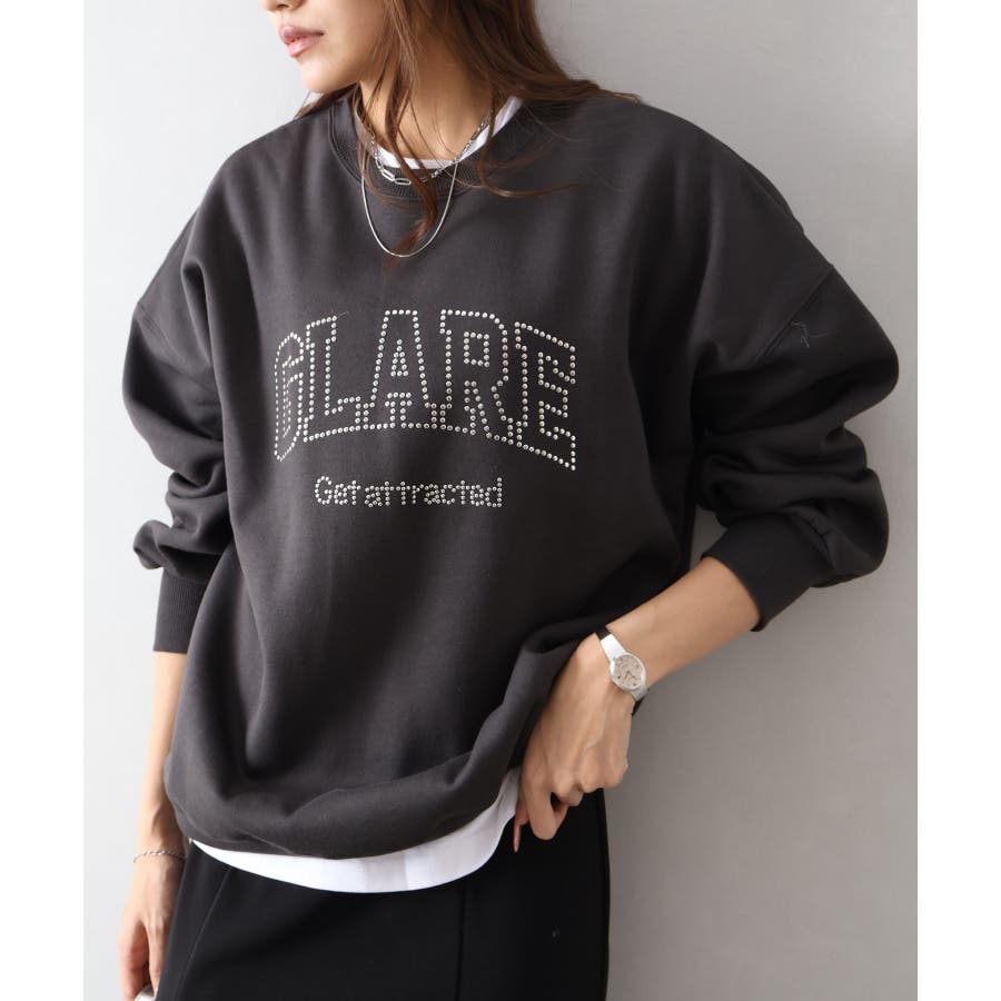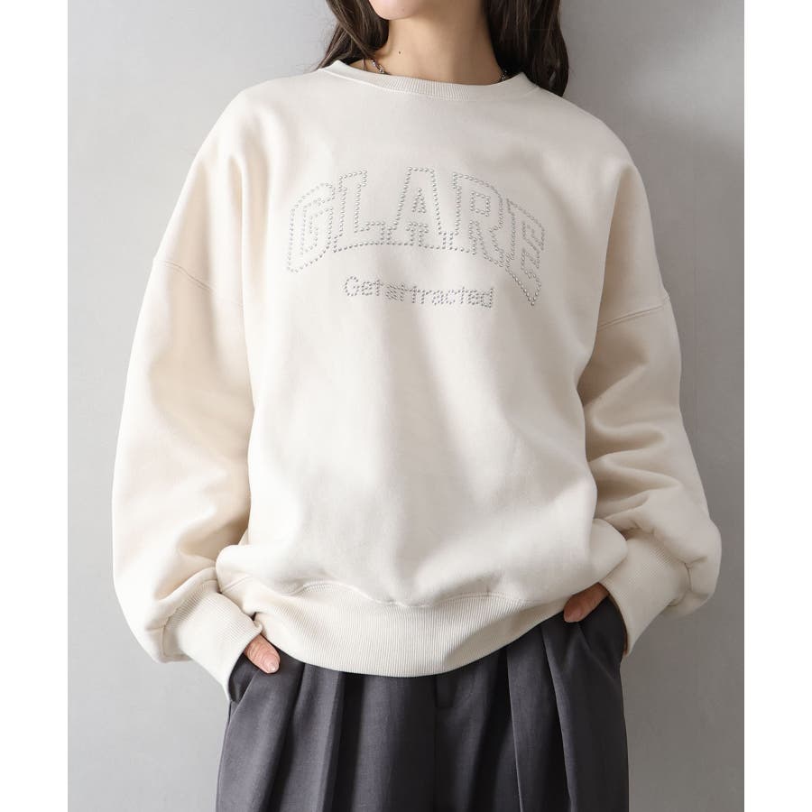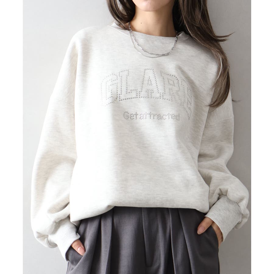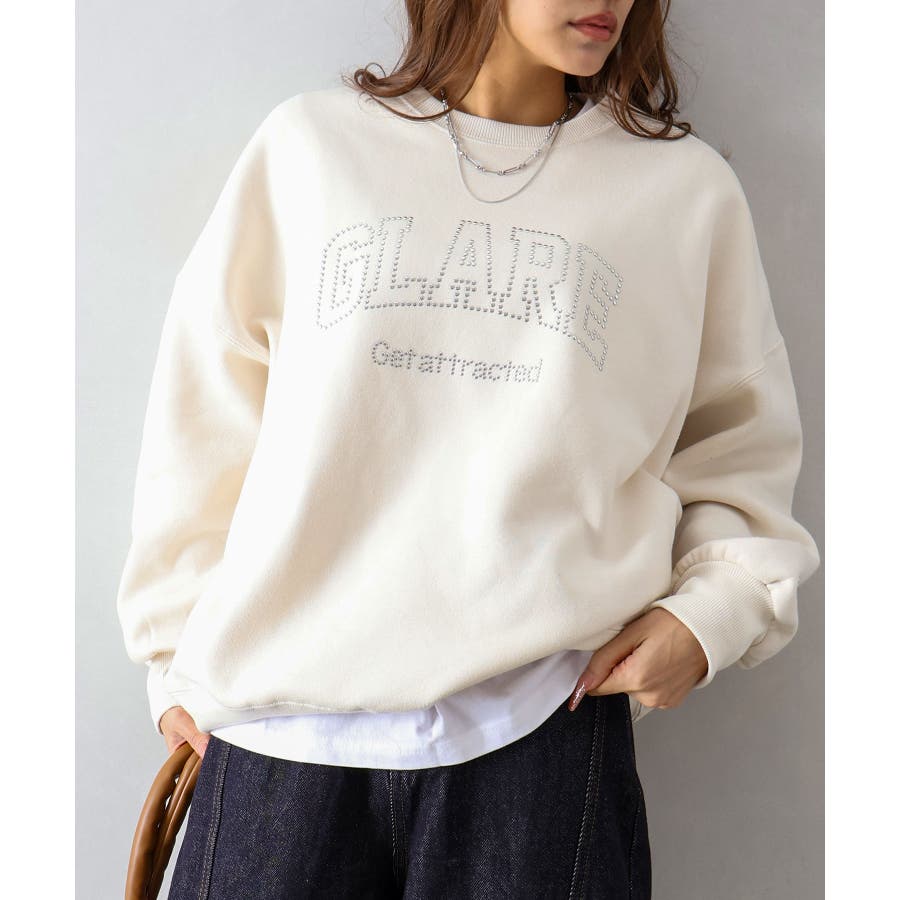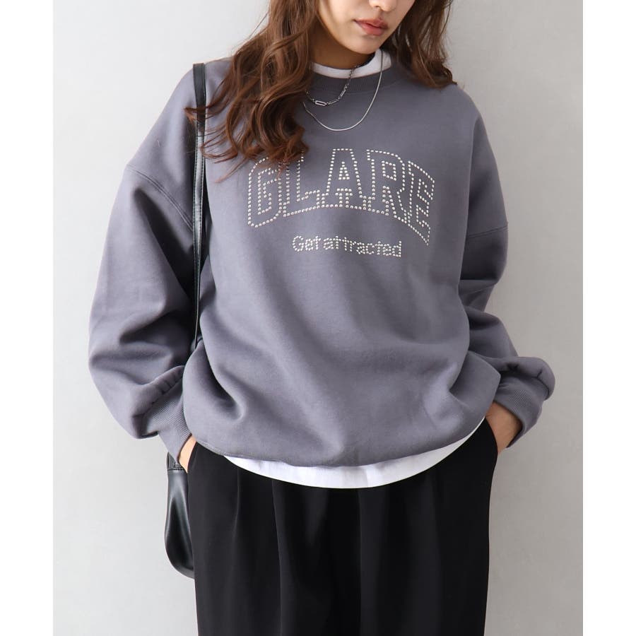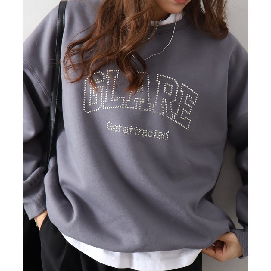 フロントのスタッズロゴがアクセントになった裏起毛スウェット。