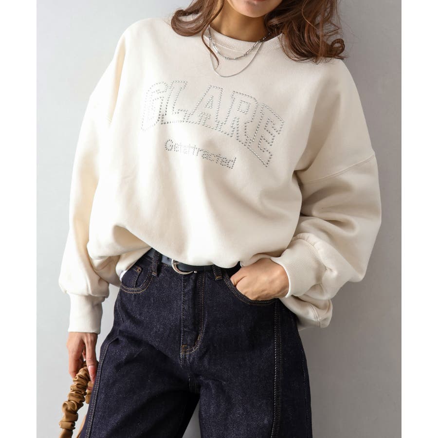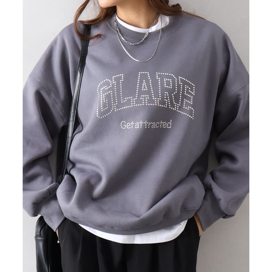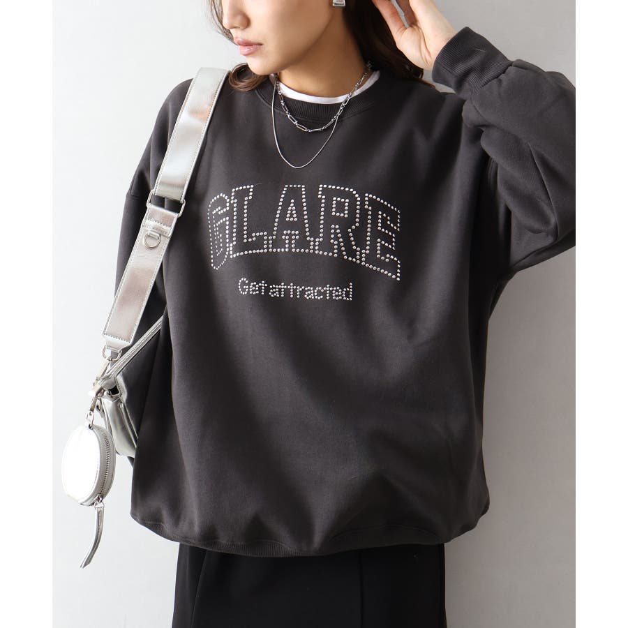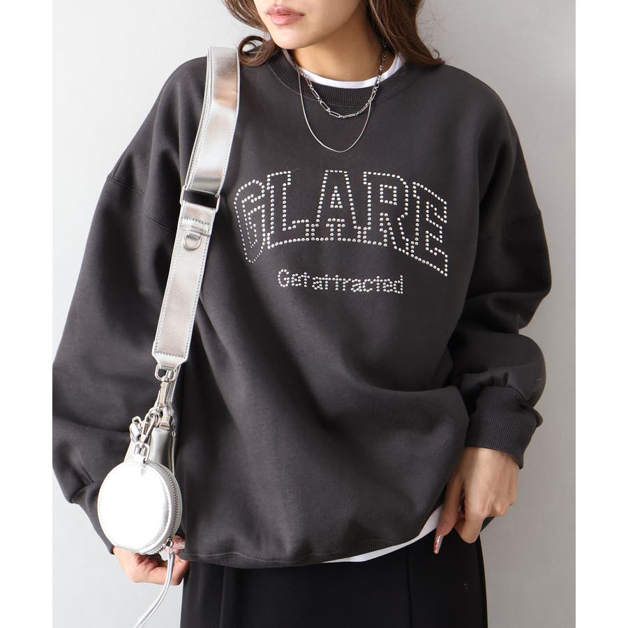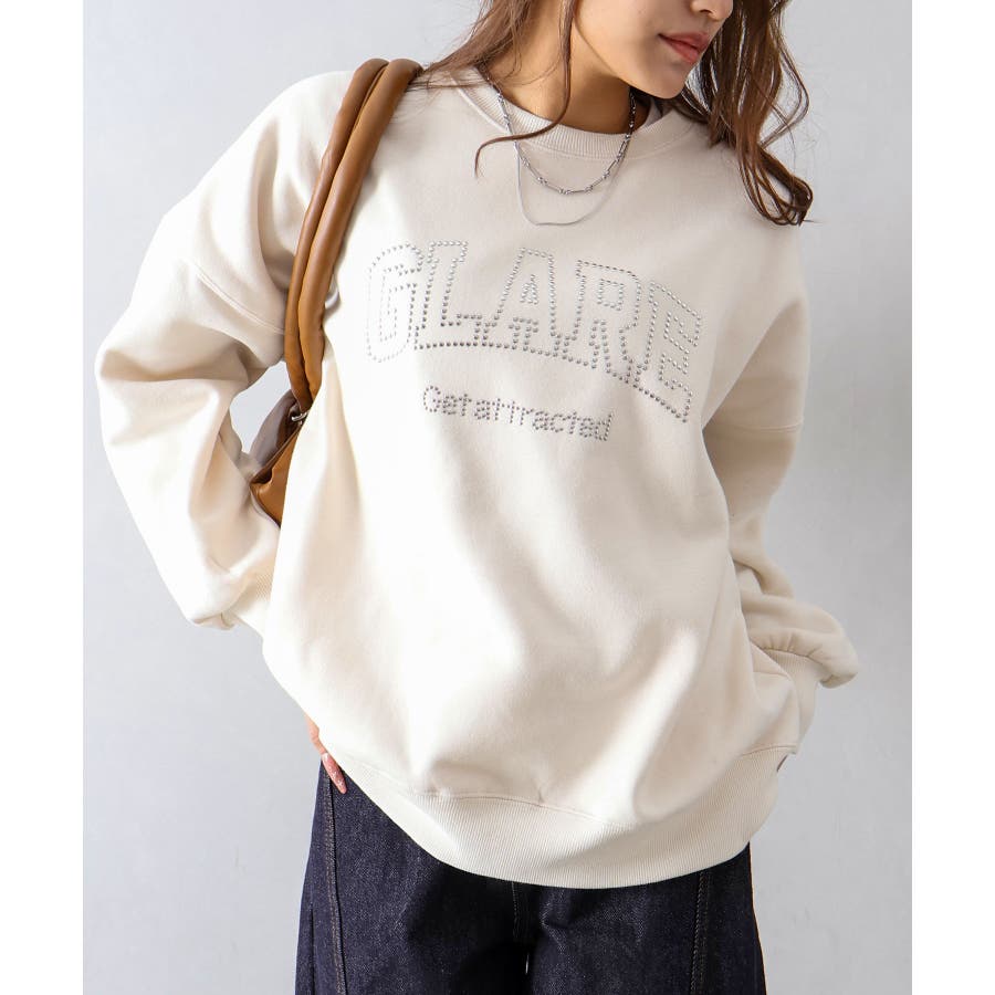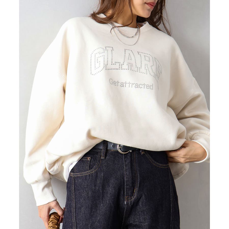 フロントのスタッズロゴがアクセントになった裏起毛スウェット。