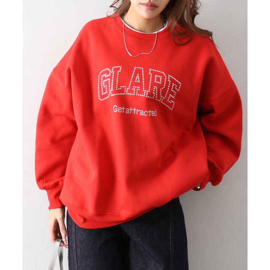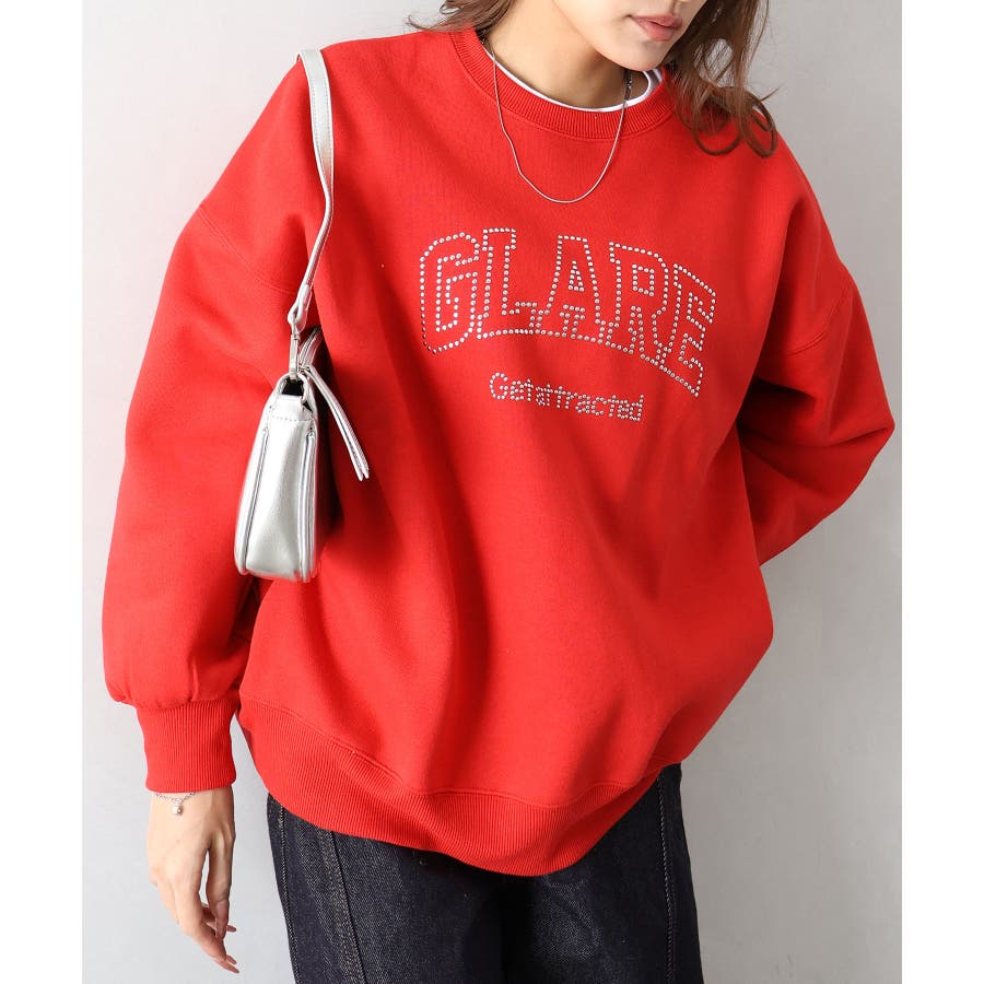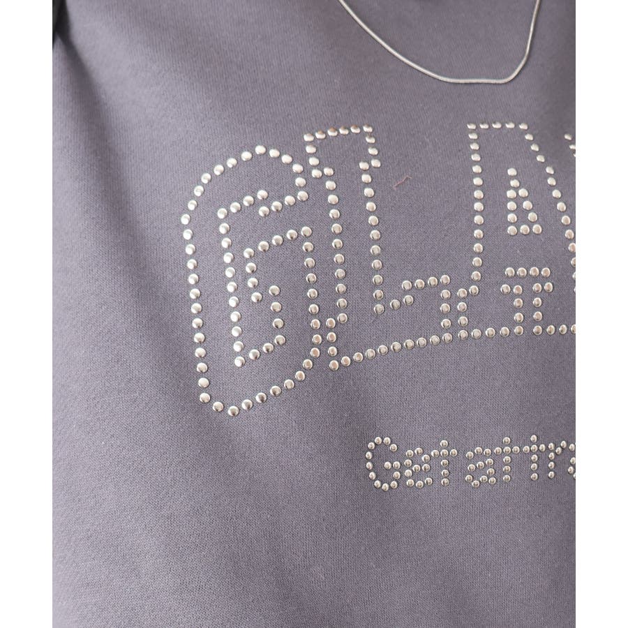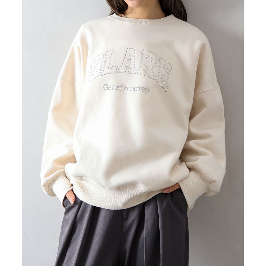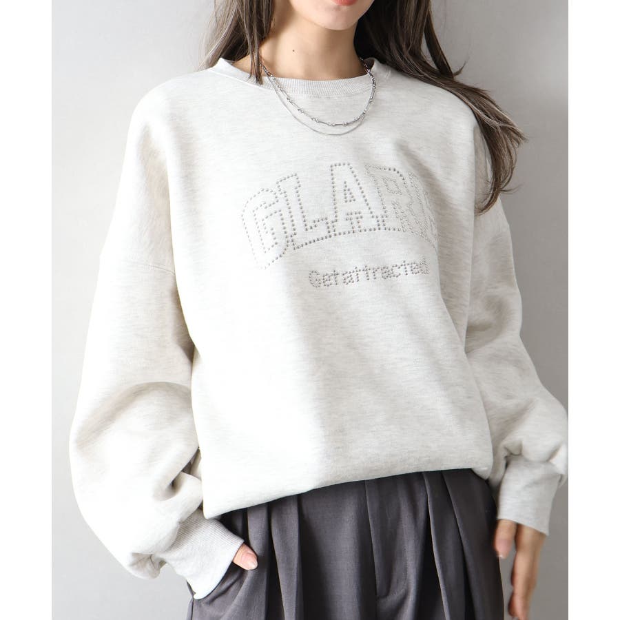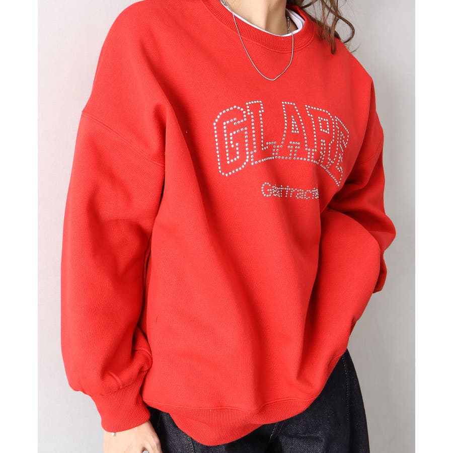 フロントのスタッズロゴがアクセントになった裏起毛スウェット。