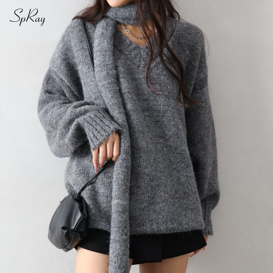 #マフラー付きニット #ビッグシルエット#オーバーサイズニット#ざっくりニット#フーディーニット#フード付きニット#もこもこニット #ふわふわニット#高見えニット#2WAYニット #spray#スプレイ